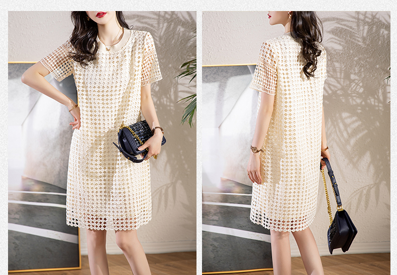 MY3595# 夏季新款复古波点时尚镂空短袖圆领连衣裙女裝貨源服裝批發