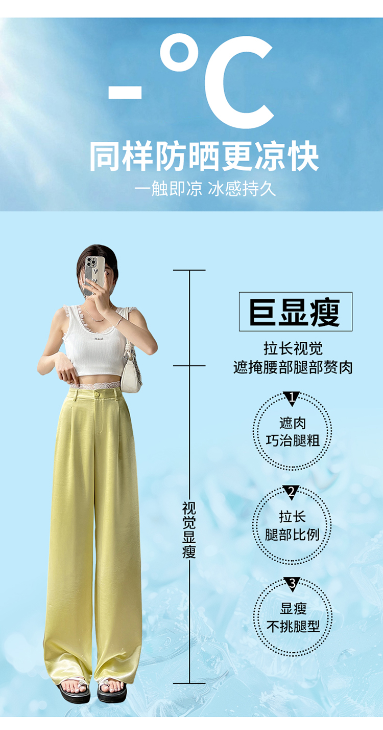 MY4674# 夏季新款薄款缎面醋酸冰丝阔腿裤高腰防晒拖地裤女女裝貨源服裝批發