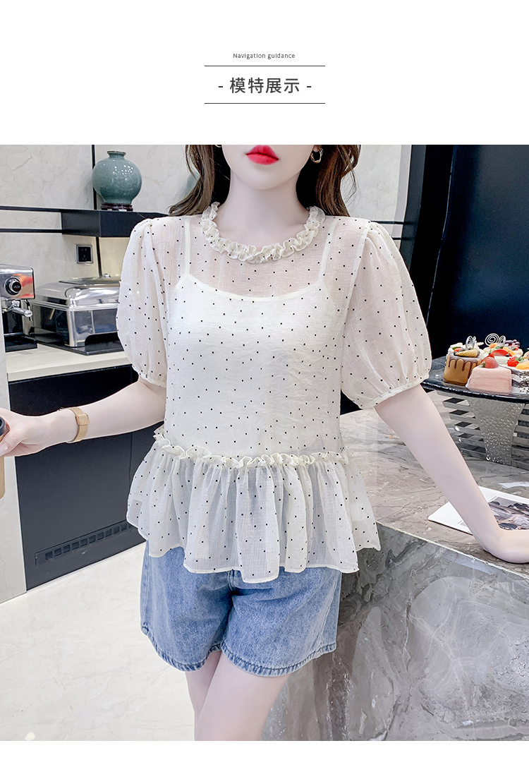 MY4707# 夏季新款时尚气质百搭木耳边波点雪纺衬衣洋气甜美荷叶边上衣女裝貨源服裝批發