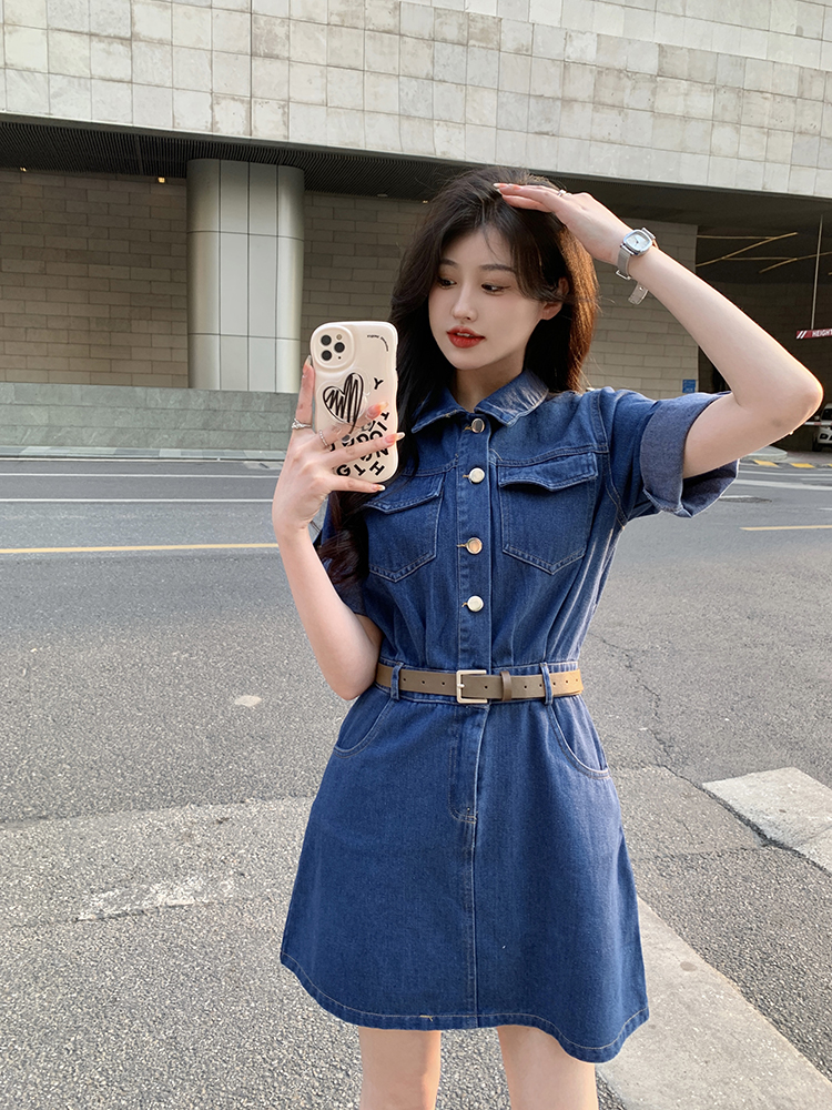 MY5007# 大码女装夏季新款胖MM牛仔短袖连衣裙胖MM收腰显瘦裙子女女裝貨源服裝批發