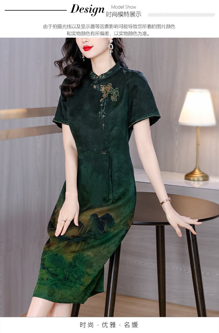 MY5016# 香云纱新中式连衣裙妈妈夏装真丝桑蚕丝旗袍日常可穿女裝貨源服裝批發