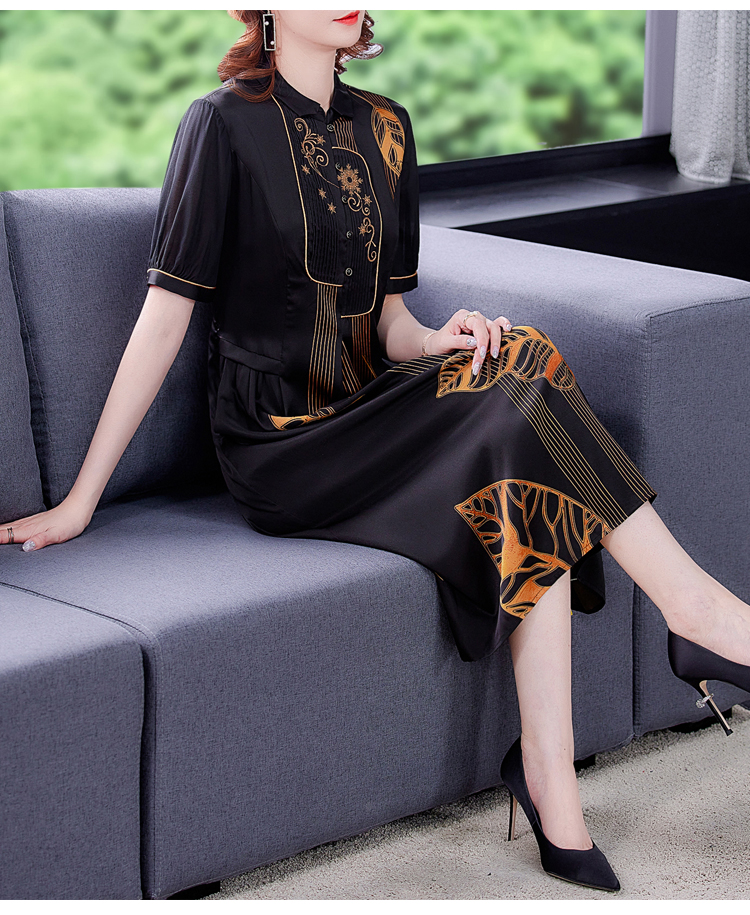 MY5027# 新款女装真丝连衣裙高端时尚印花显瘦妈妈装女裝貨源服裝批發