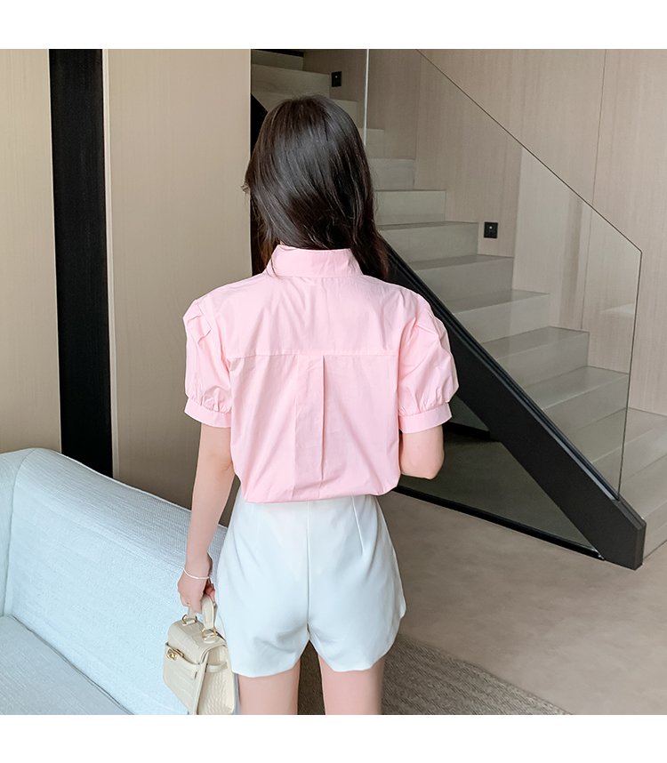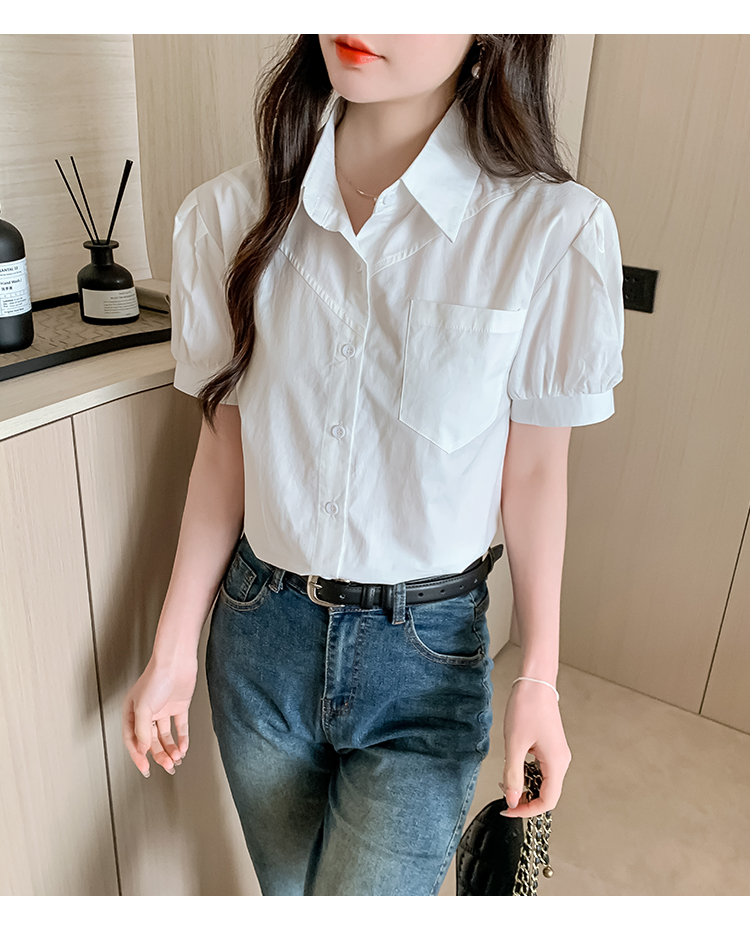 MY5230# 夏季新款休闲通勤气质显瘦衬衣设计感宽松短袖衬衫女女裝貨源服裝批發
