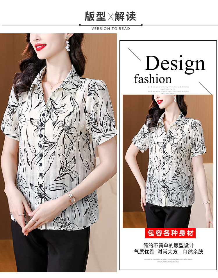 MY5269# 短袖雪纺衬衫女新款洋气宽松显瘦遮肚子印花百搭时尚衬衣女裝貨源服裝批發
