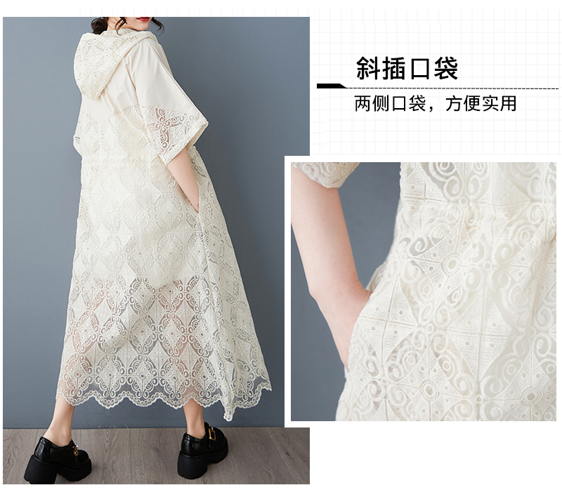 MY5578# 新款宽松时尚镂空钩花拼接连帽百搭中长款气质连衣裙女裝貨源服裝批發