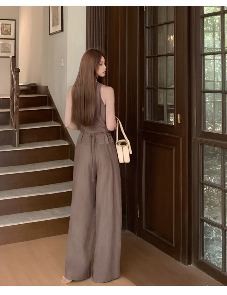 MY6272# 法式气质V领收腰显瘦女夏季御姐通勤高级感纯色阔腿裤套装女裝貨源服裝批發