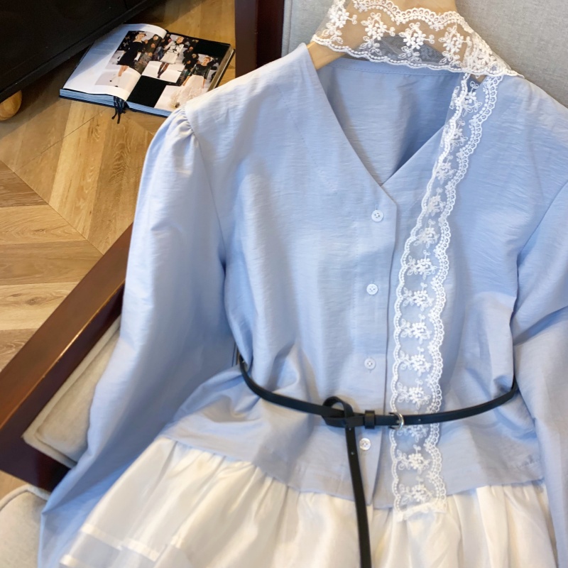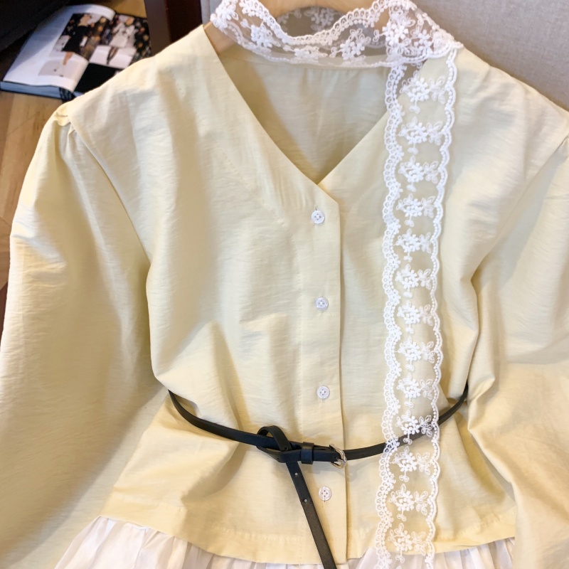 MY6288# 拾叁法式v领单排扣配腰带飘带小衫甜美减龄气质上衣女女裝貨源服裝批發