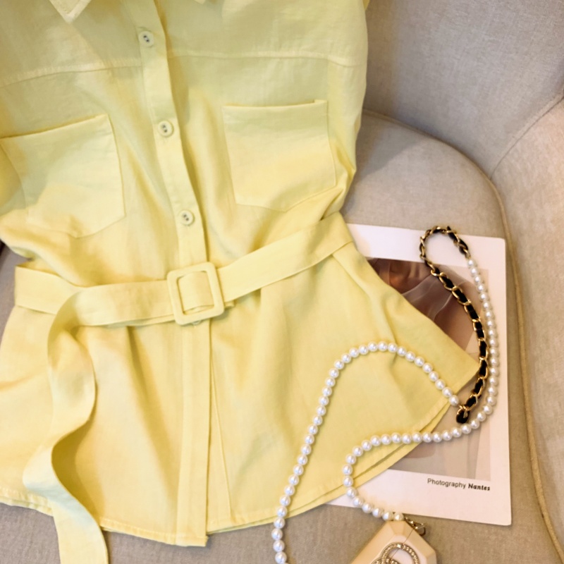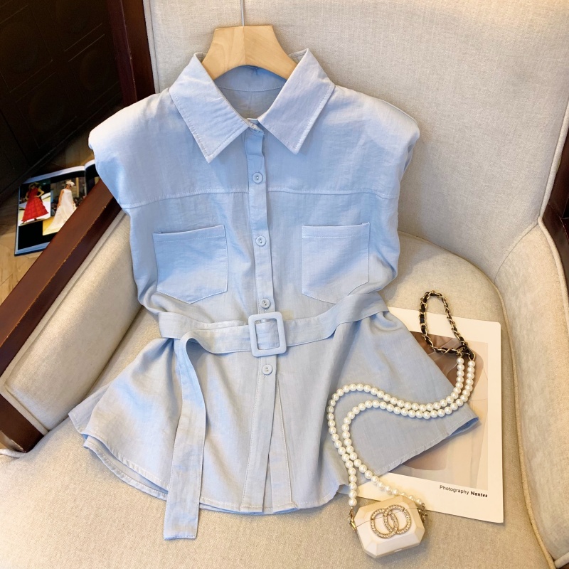 MY6289# 新款韩版气质配腰带无袖衬衣简约百搭小衫女裝貨源服裝批發