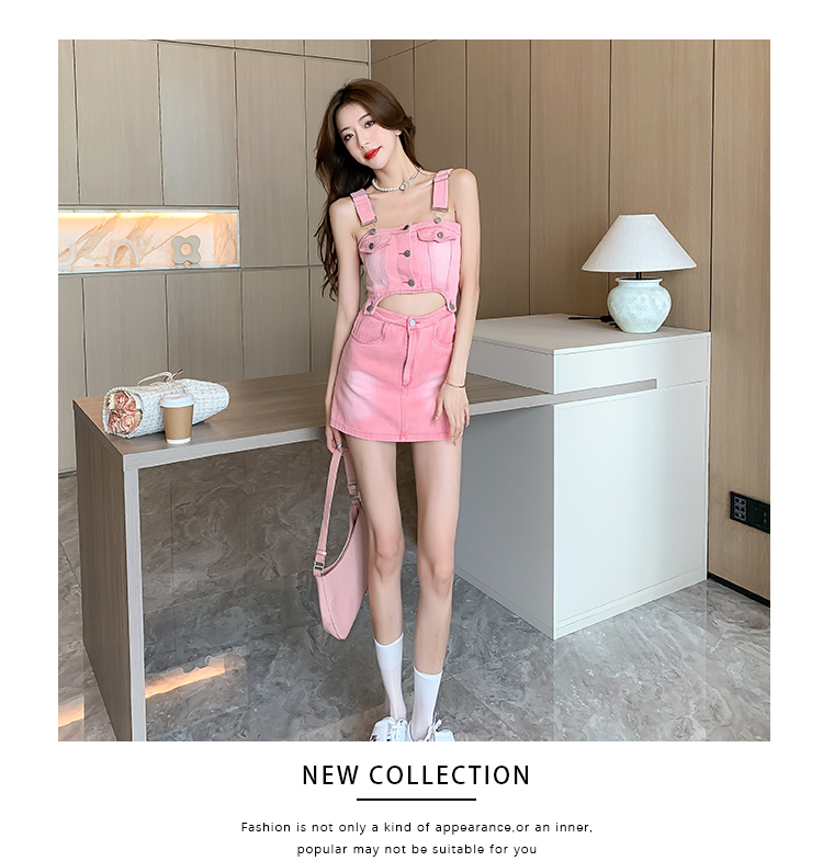 MY6300# 夏季时尚新款印花背带牛仔上衣短裙套装两件套女裝貨源服裝批發