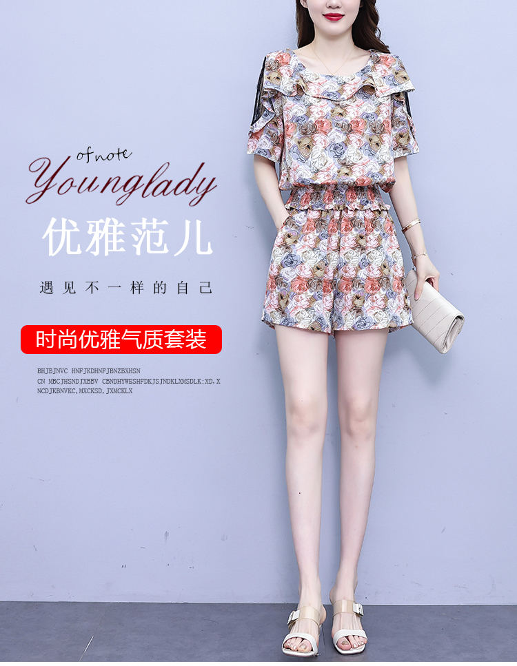 MY6581# 大码装夏新款女神范休闲减龄上衣宽松遮肚子显瘦短裤套装女裝貨源服裝批發