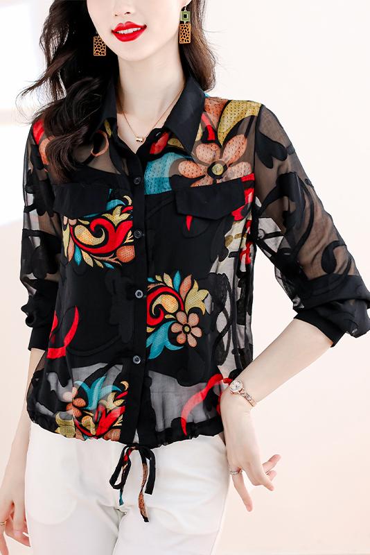 MY6966# 夏季新款蕾丝雪纺时尚防嗮气质休闲长袖衬衫洋气显瘦百搭上衣女裝貨源服裝批發