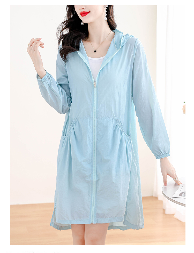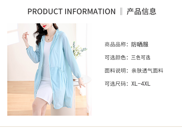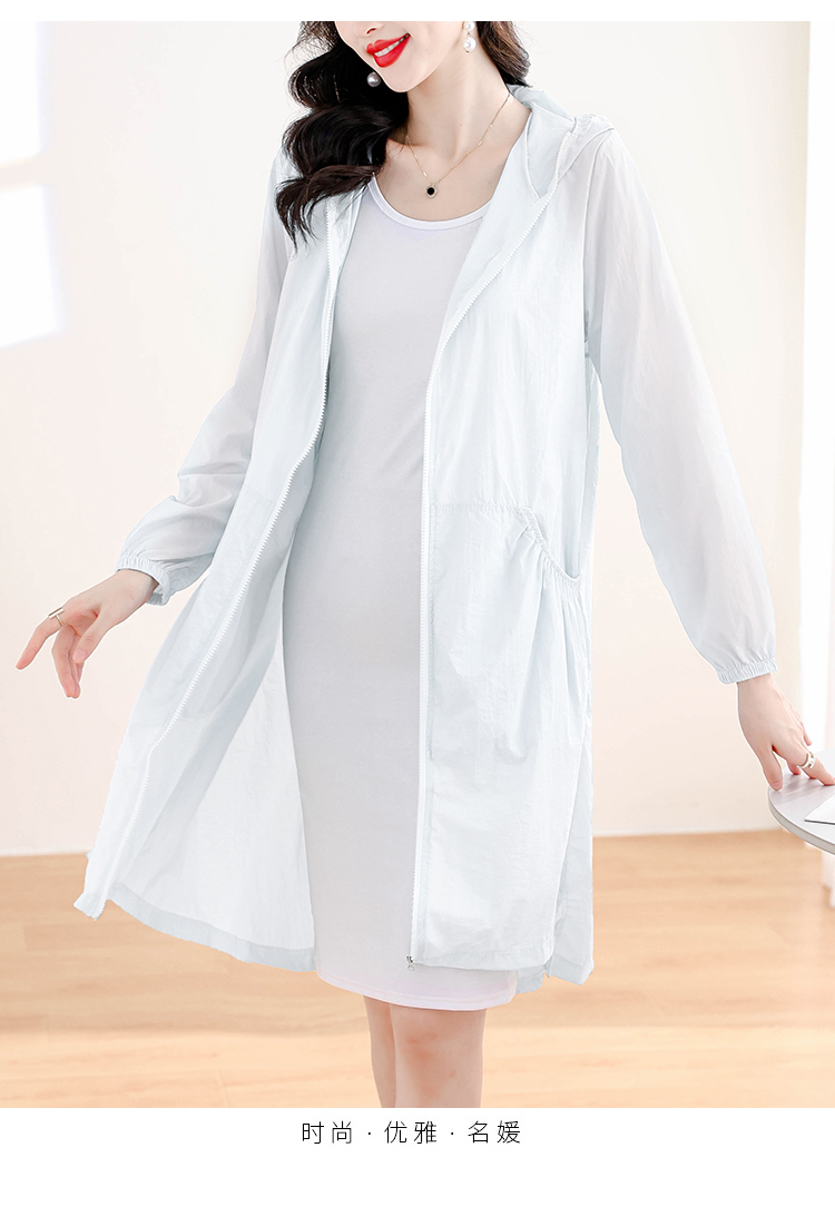 MY6967# 夏季新品简约中长款连帽透气轻薄防紫外线冰丝防晒服女裝貨源服裝批發