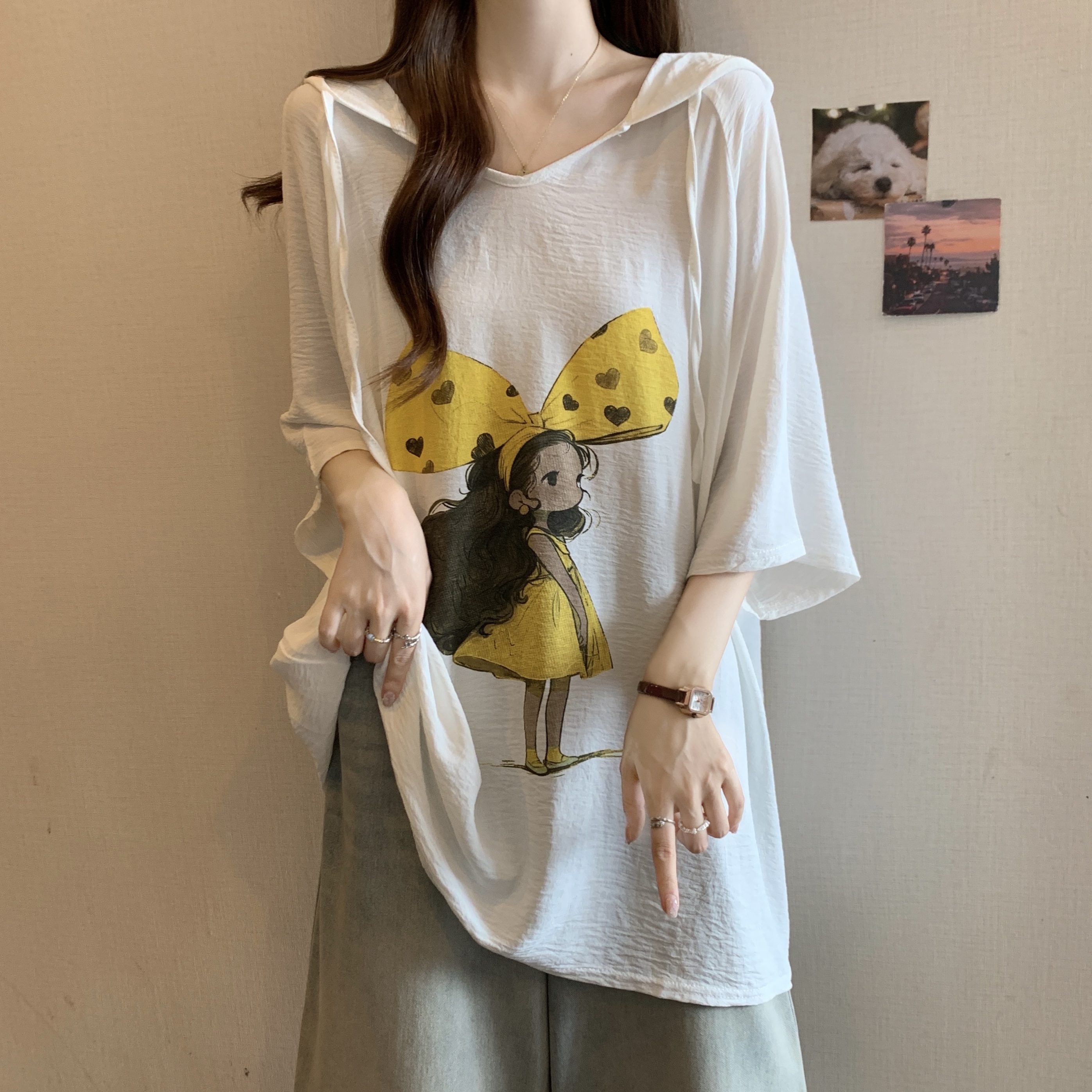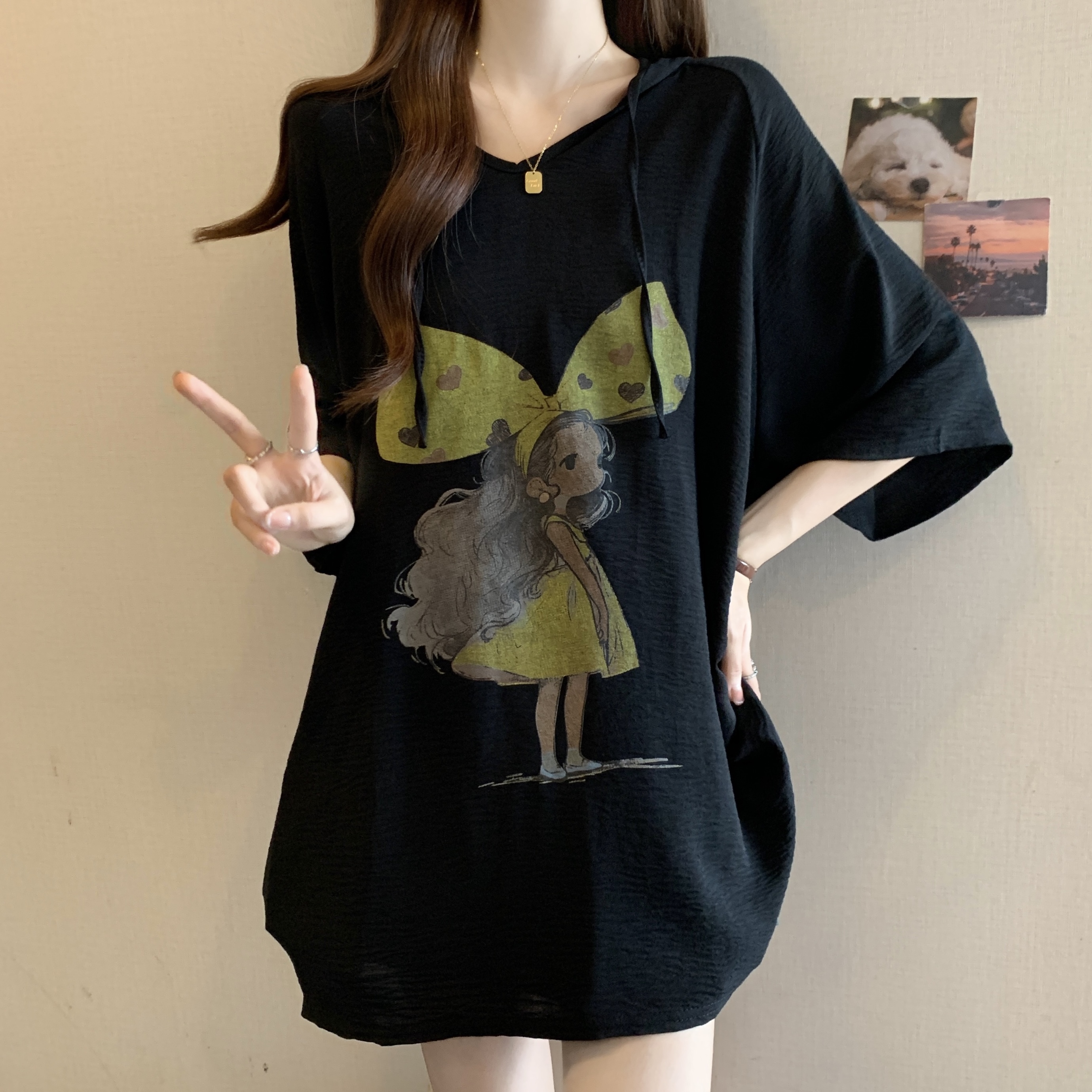 MY7002# 大码夏季新款连帽套头卫衣宽松大版美女图显瘦T恤上衣女女裝貨源服裝批發