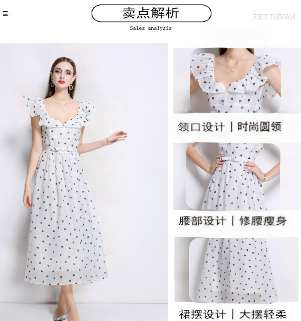 MY7071# 新款法式气质波点短袖连衣裙女夏季新款高级感别致绝美长裙子女裝貨源服裝批發