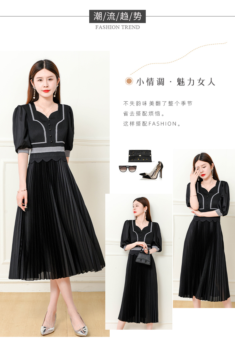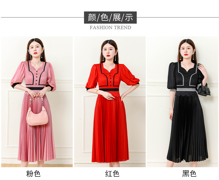 MY7079# 三宅褶皱新款夏季女气质洋气显瘦高级感纯色短袖圆领连衣裙女裝貨源服裝批發