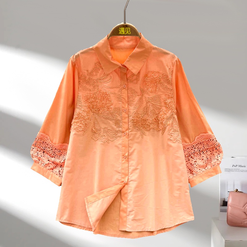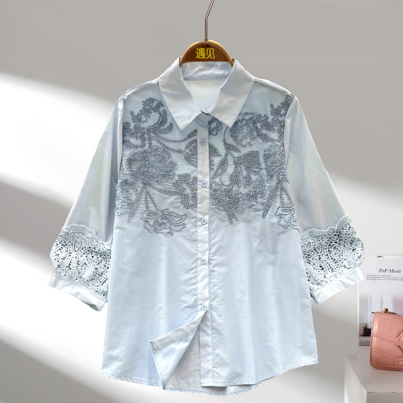 MY7112# 春日衬衫新款高级感镂空钩花刺绣蕾丝拼接灯笼袖显瘦别致衬衣女裝貨源服裝批發
