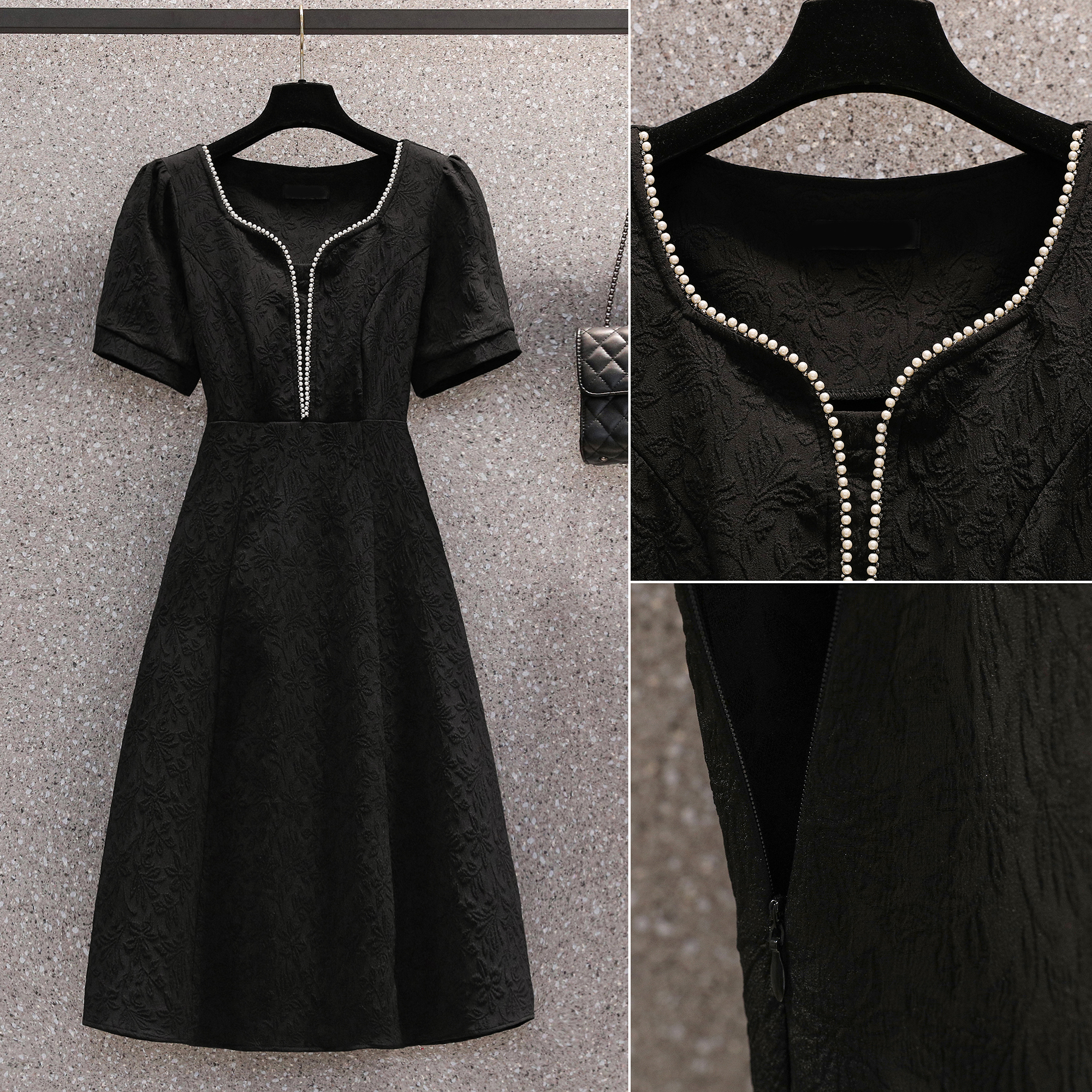 MY7175# 大码女装夏季新款短袖连衣裙胖妹妹气质方领提花时尚裙子女裝貨源服裝批發