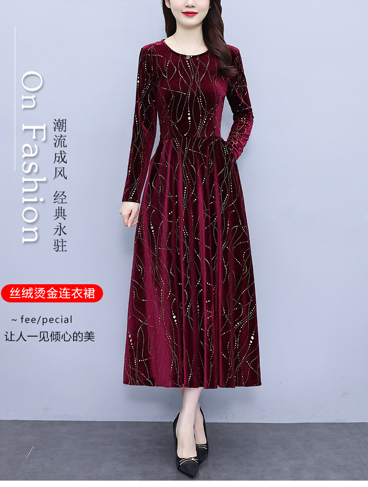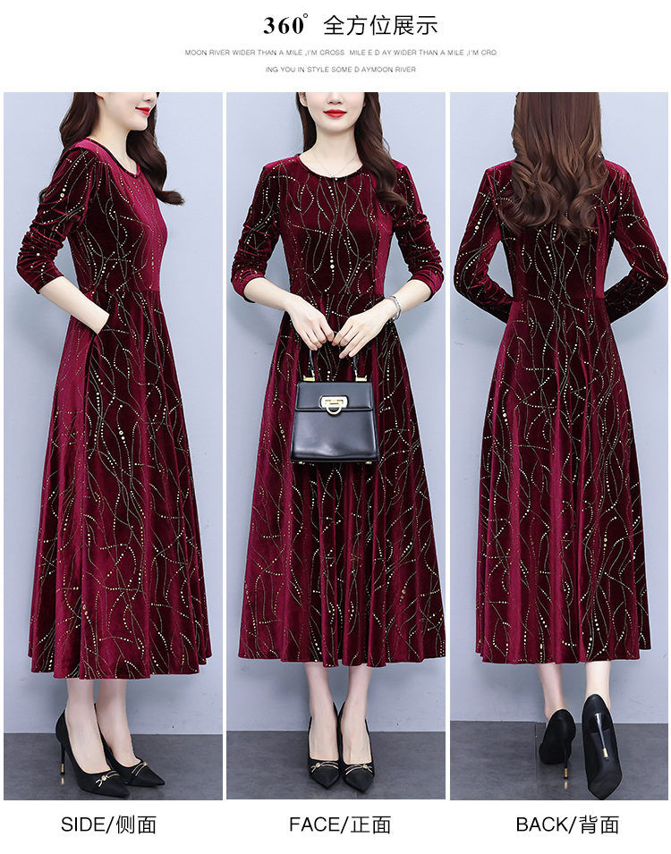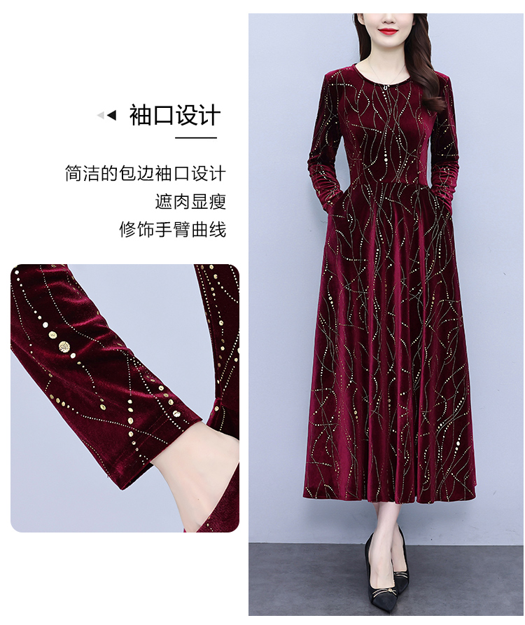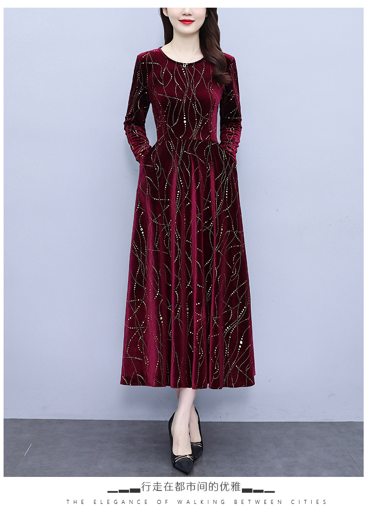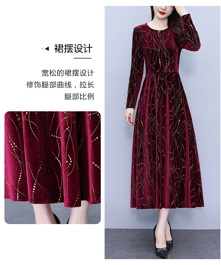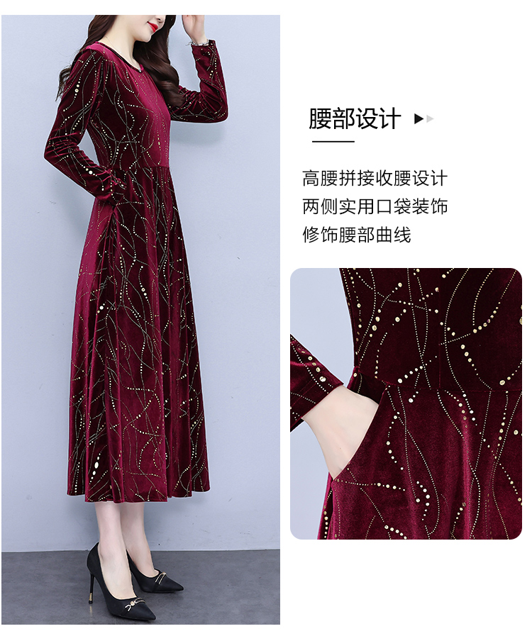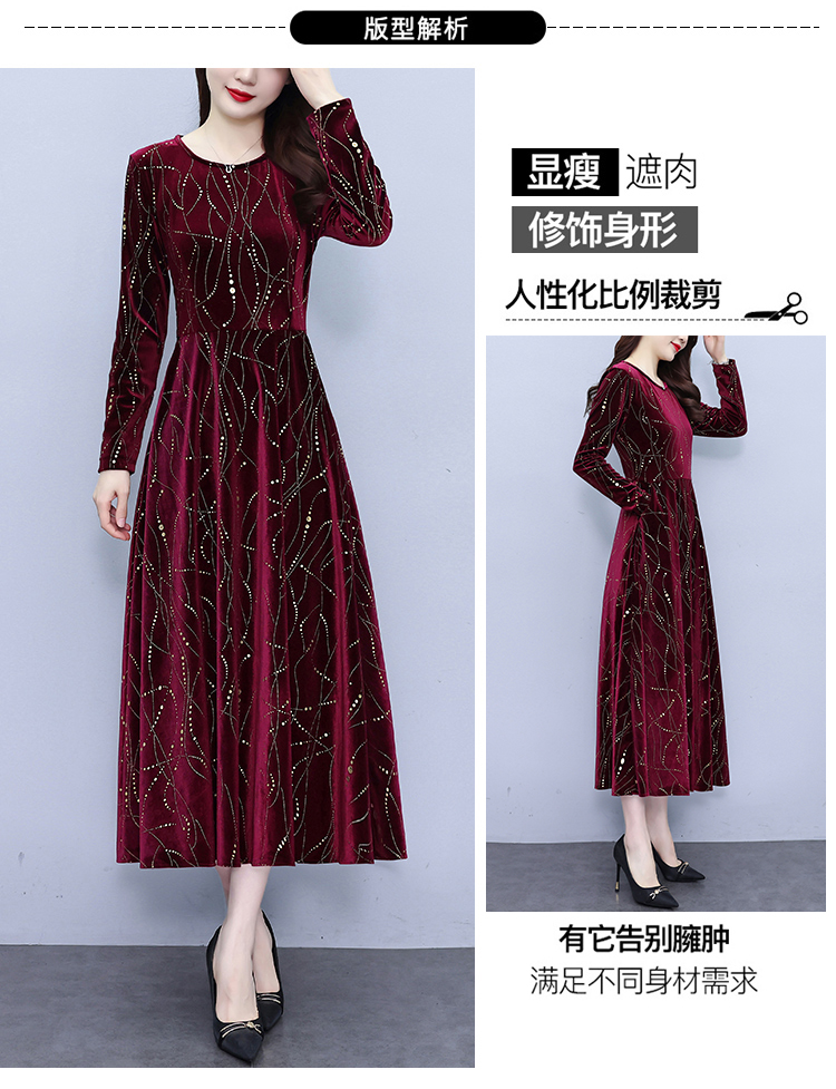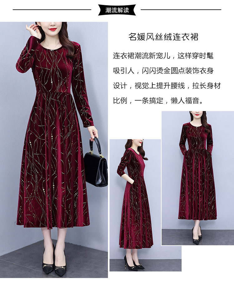MY13305# 长袖连衣裙高档金丝绒贵妇人新款气质大码收腰显瘦长裙子女裝貨源服裝批發