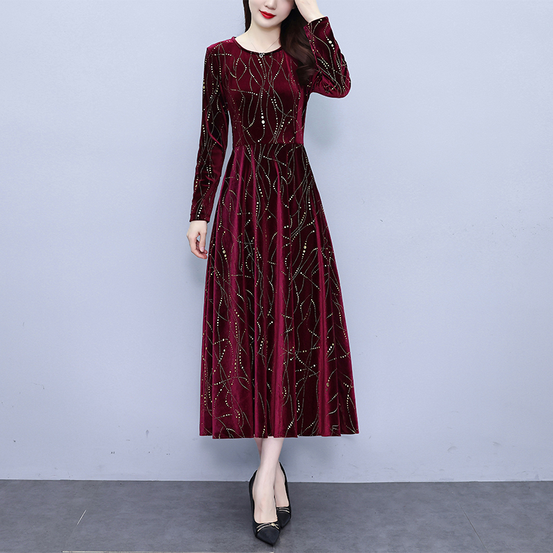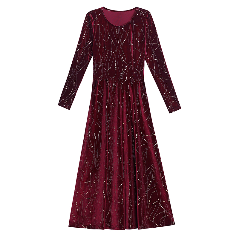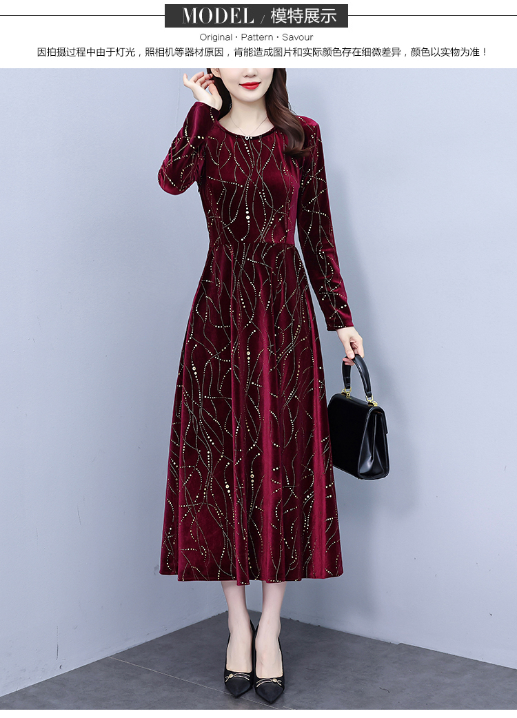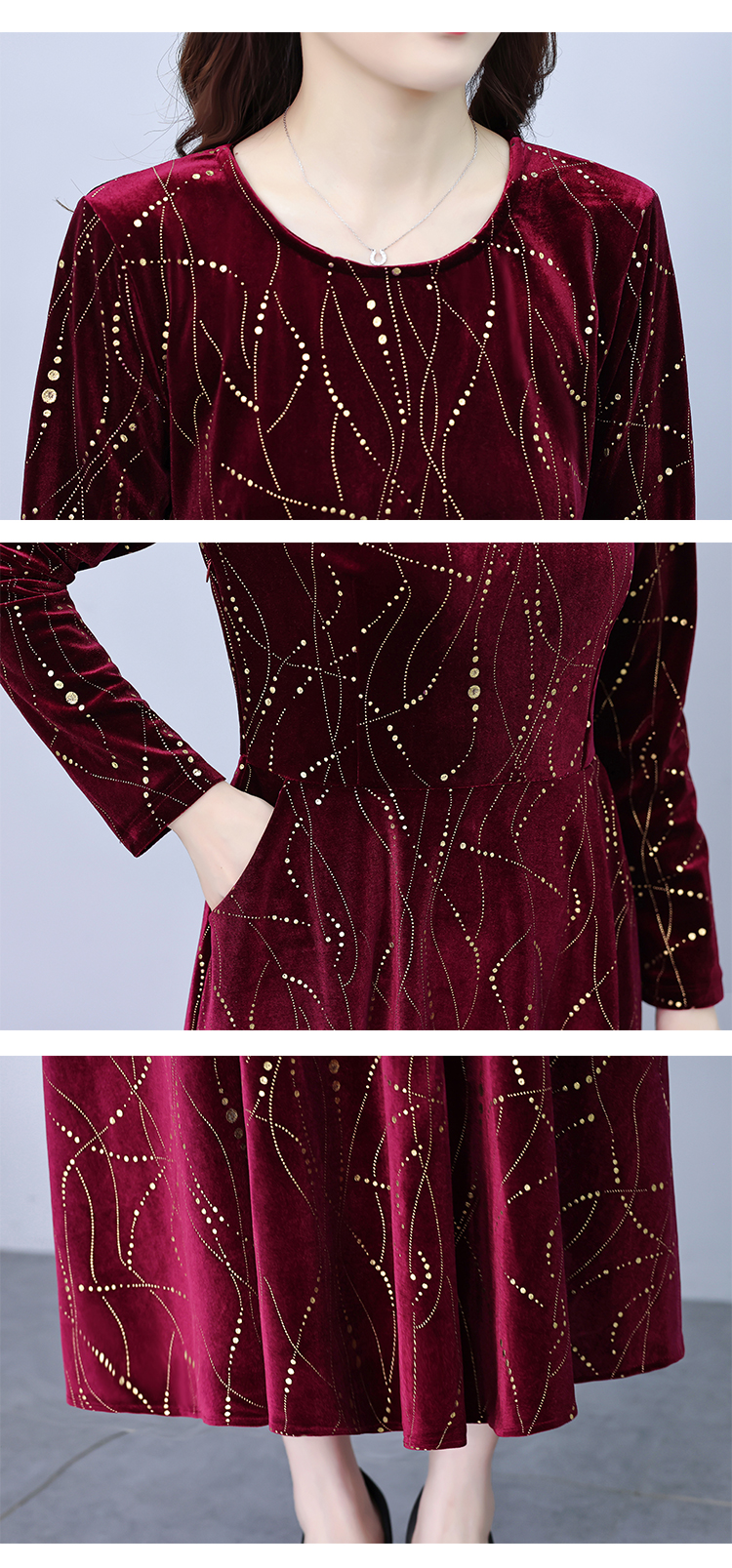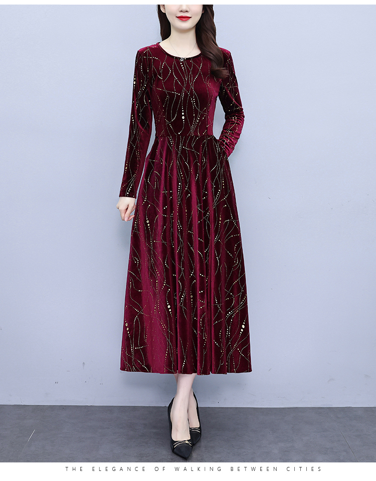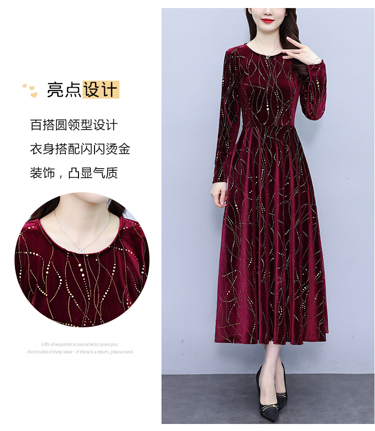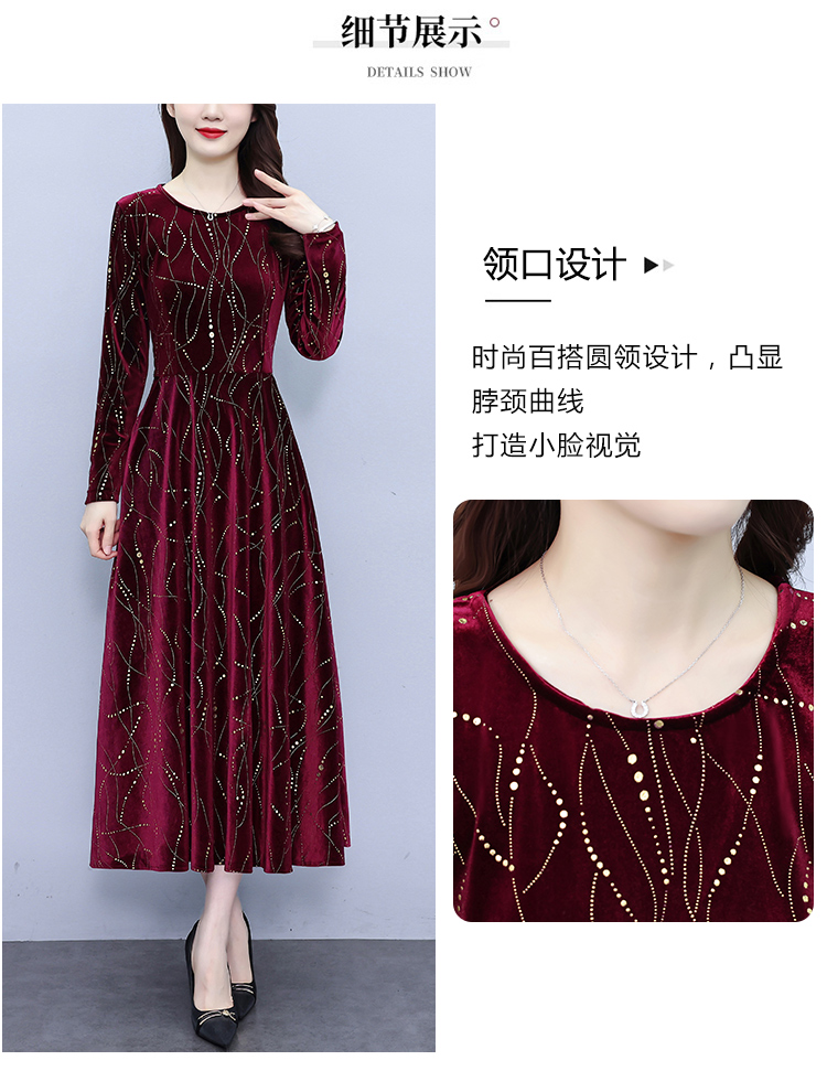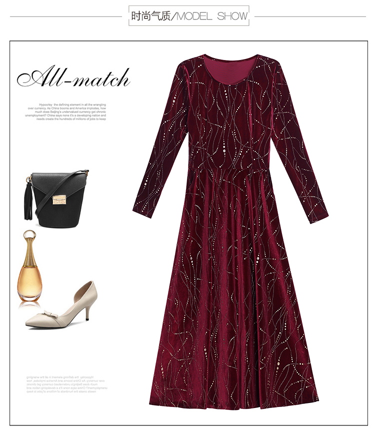 MY13305# 长袖连衣裙高档金丝绒贵妇人新款气质大码收腰显瘦长裙子女裝貨源服裝批發