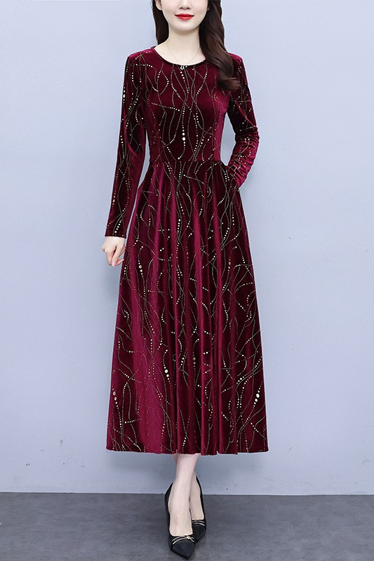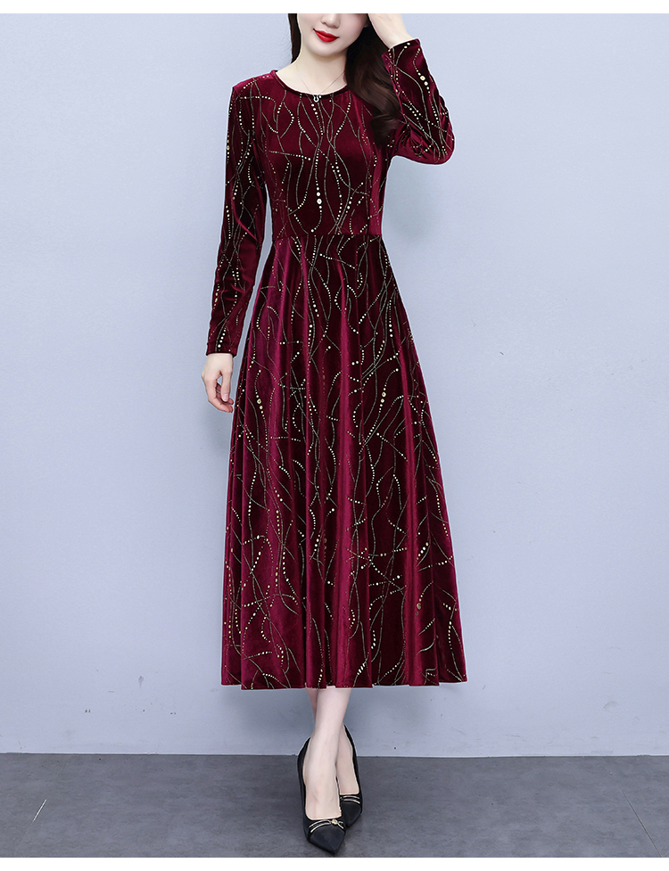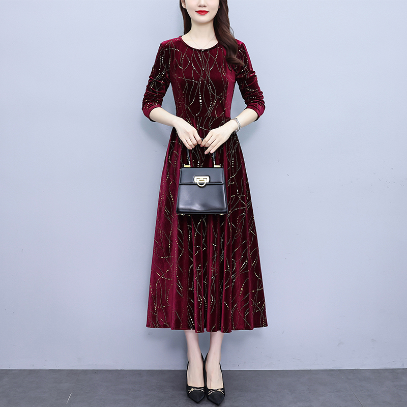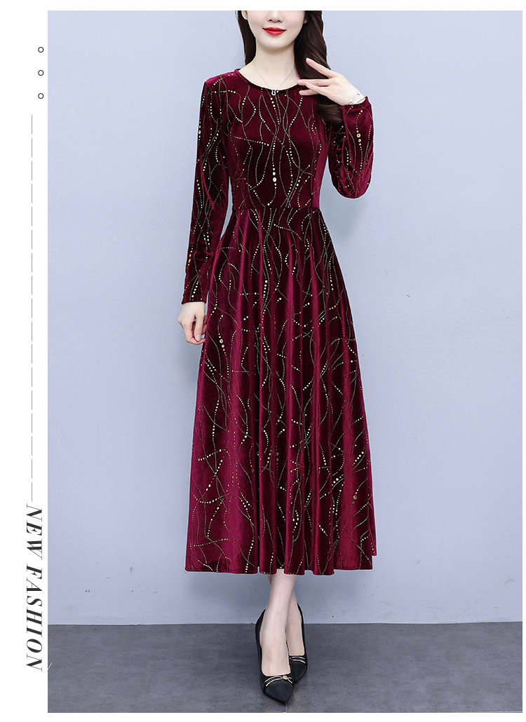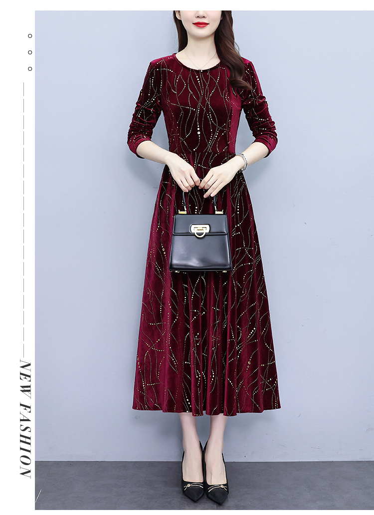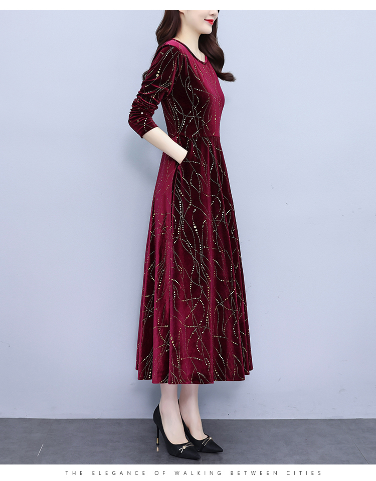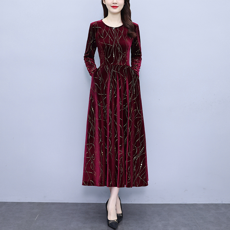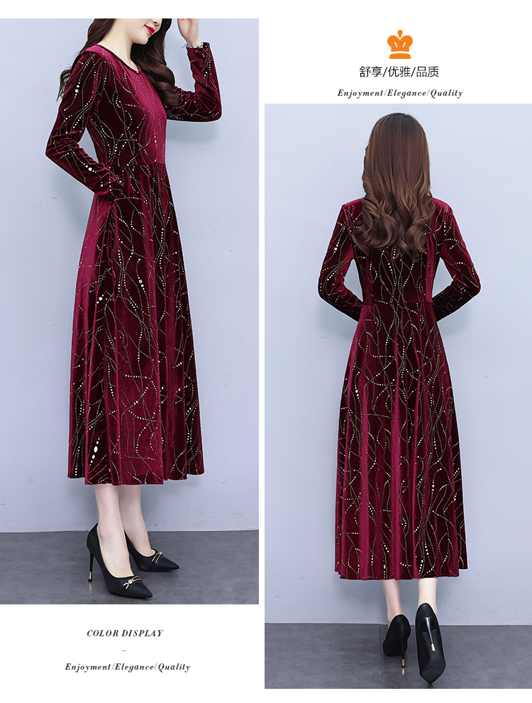 MY13305# 长袖连衣裙高档金丝绒贵妇人新款气质大码收腰显瘦长裙子女裝貨源服裝批發