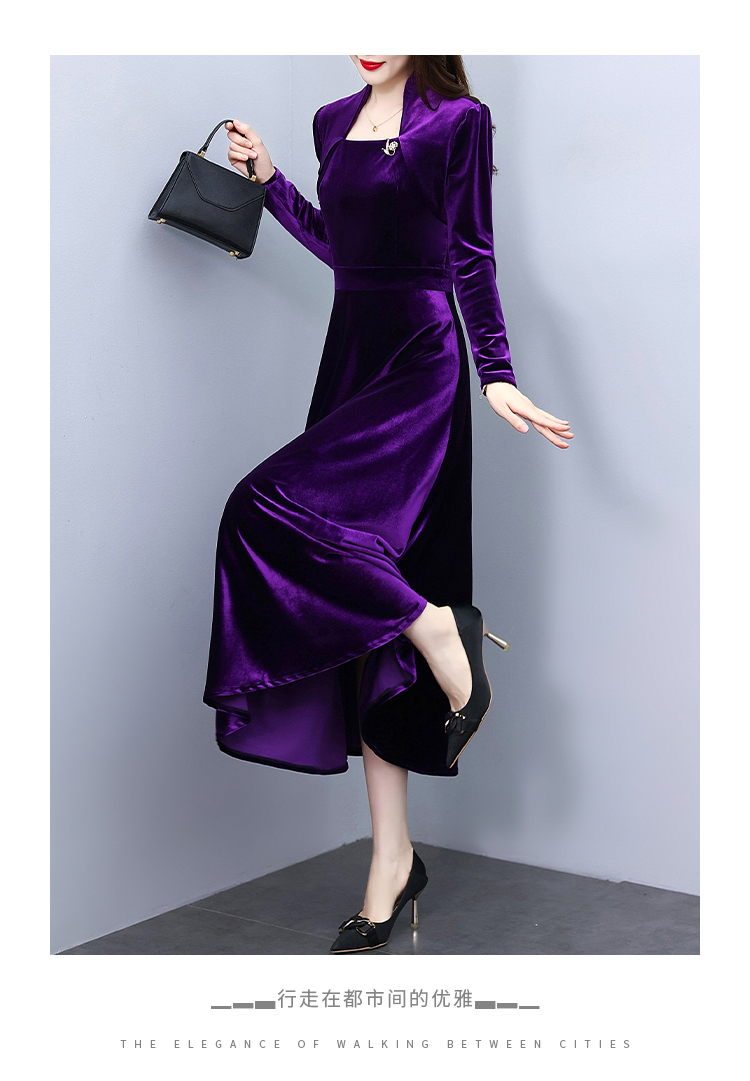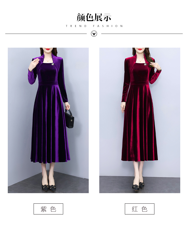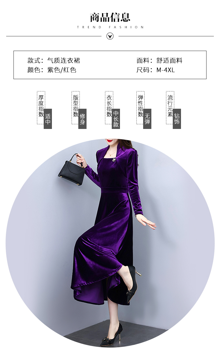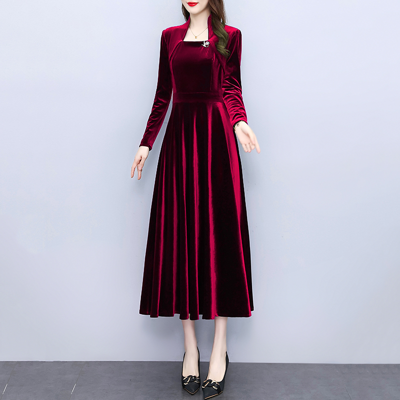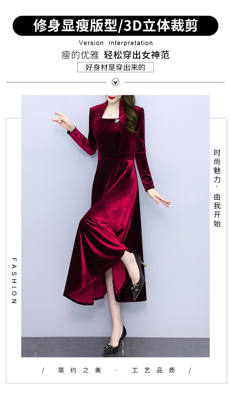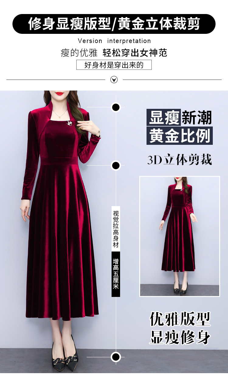 MY13312# 高端名媛酒红色长裙春喜婆婆礼服显瘦长袖丝绒连衣裙女女裝貨源服裝批發