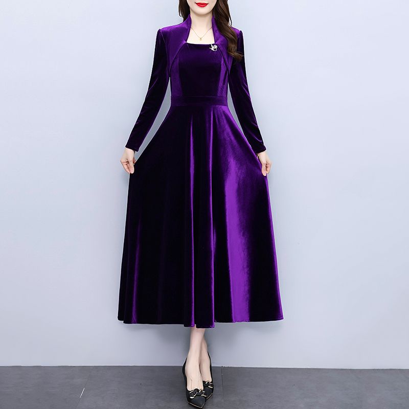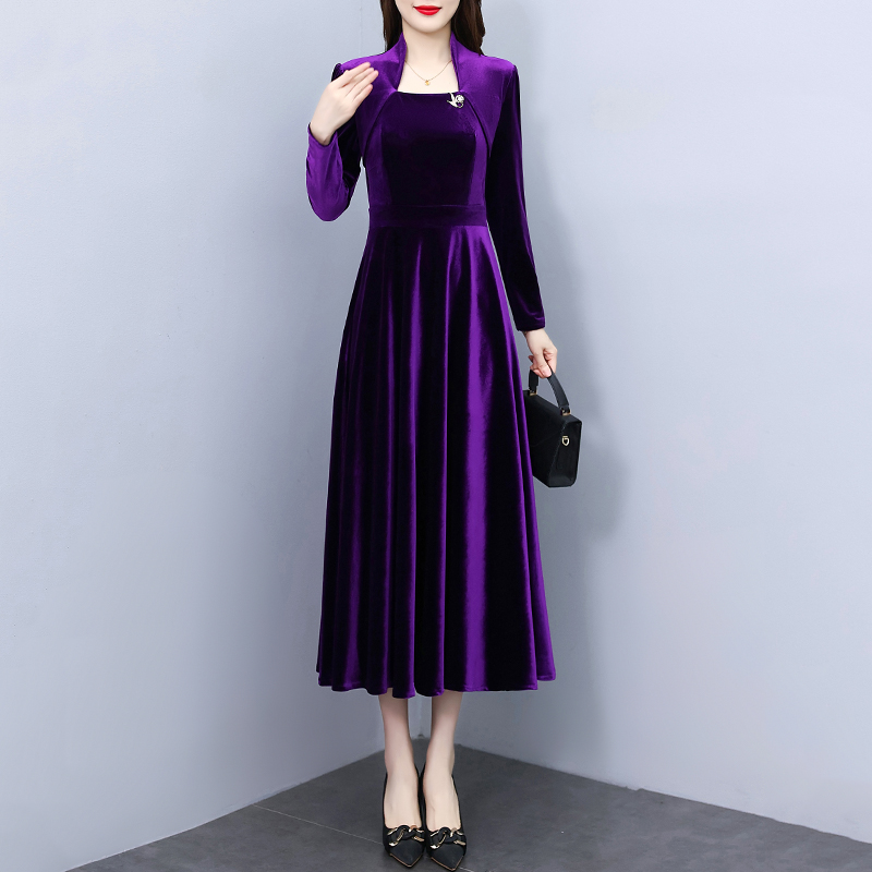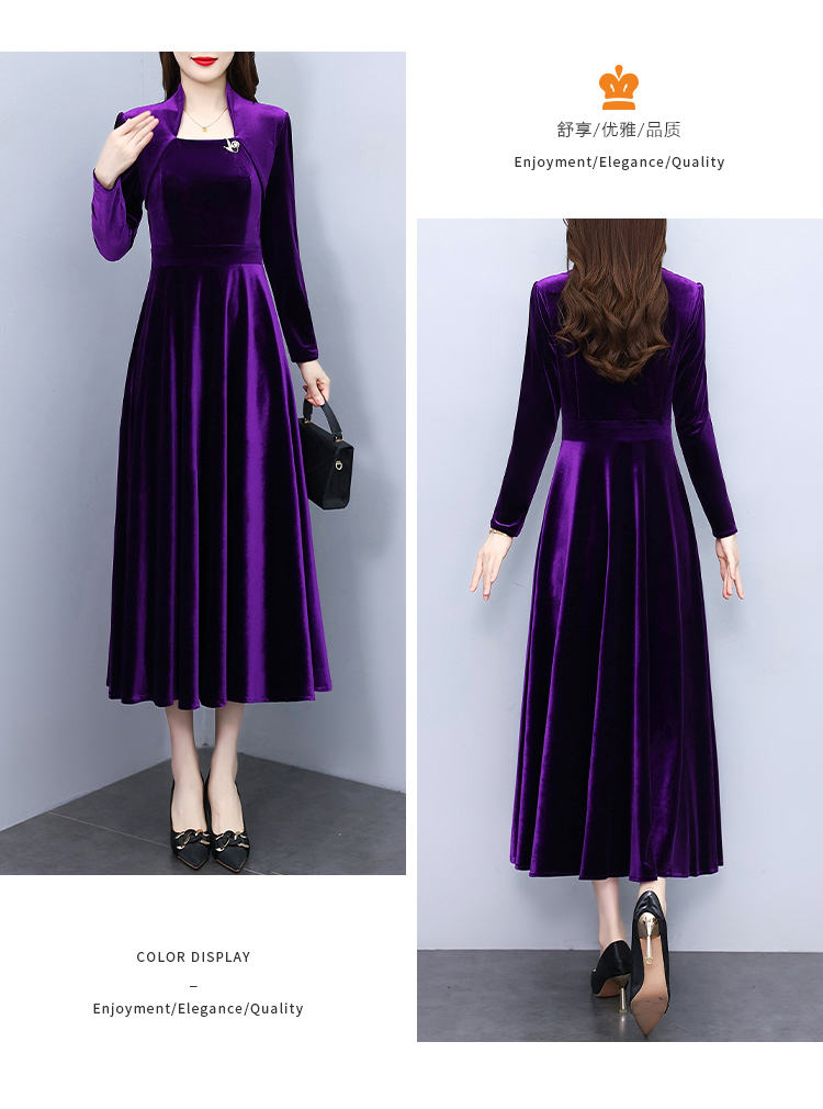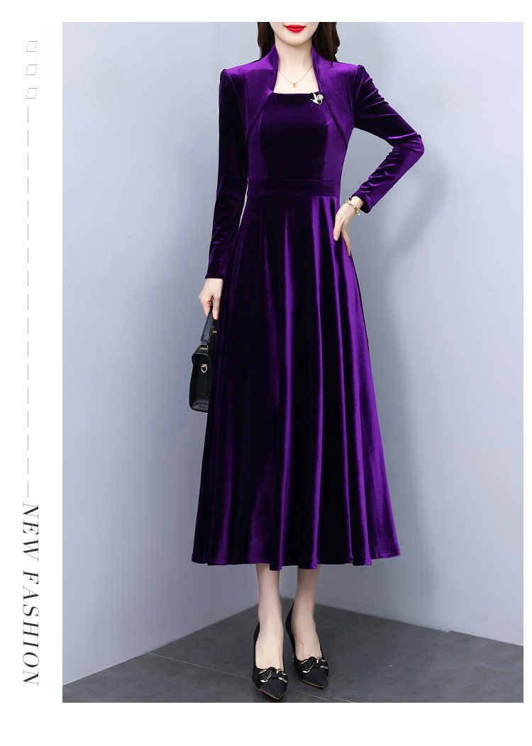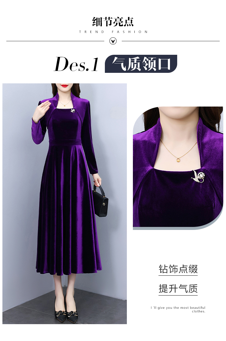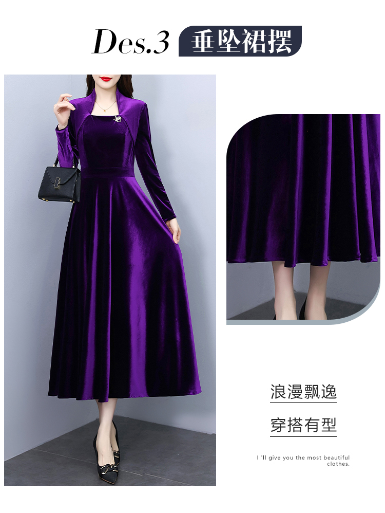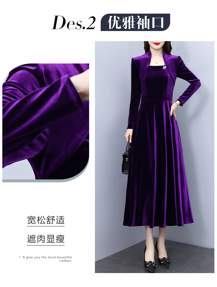 MY13312# 高端名媛酒红色长裙春喜婆婆礼服显瘦长袖丝绒连衣裙女女裝貨源服裝批發