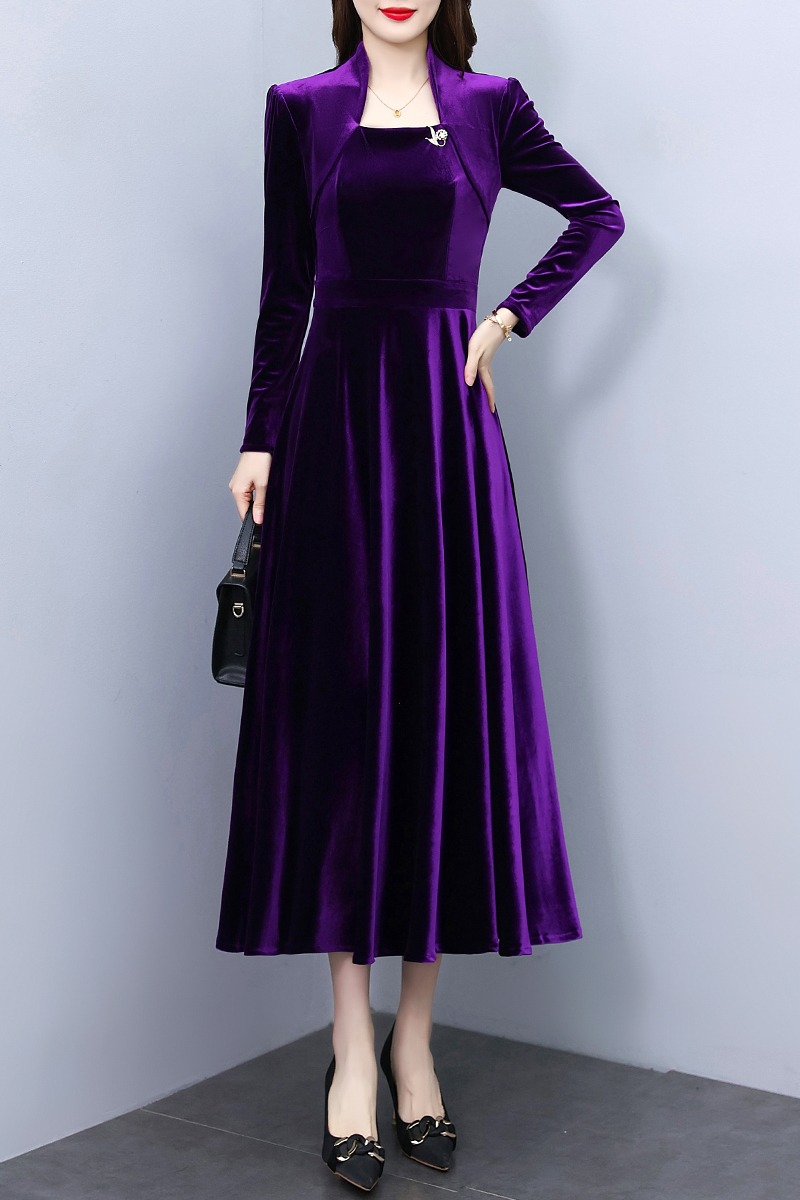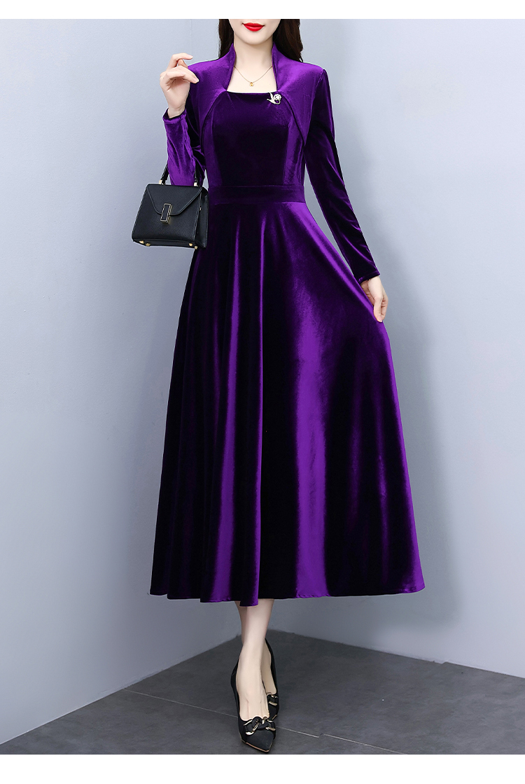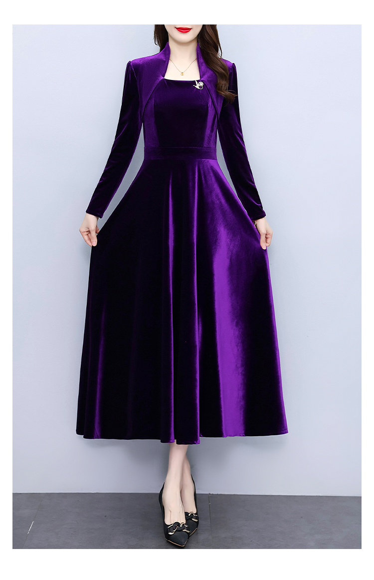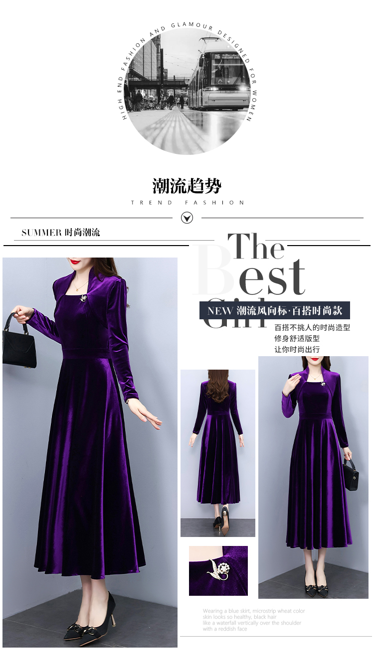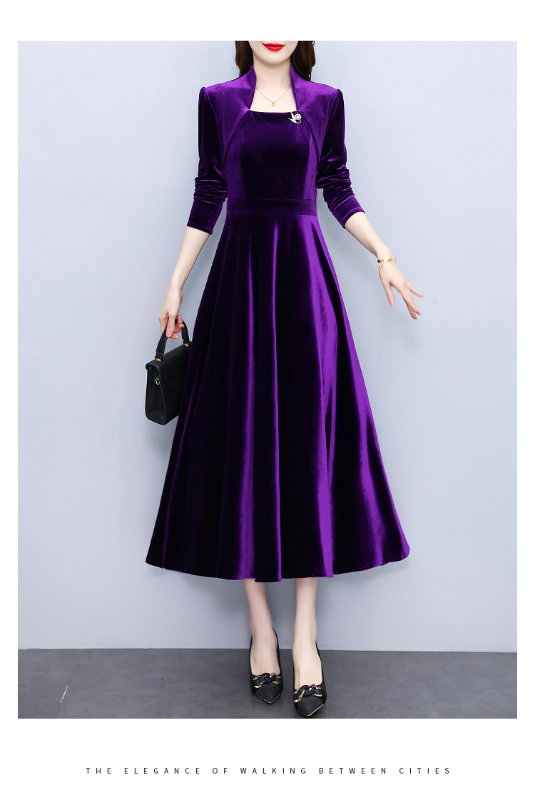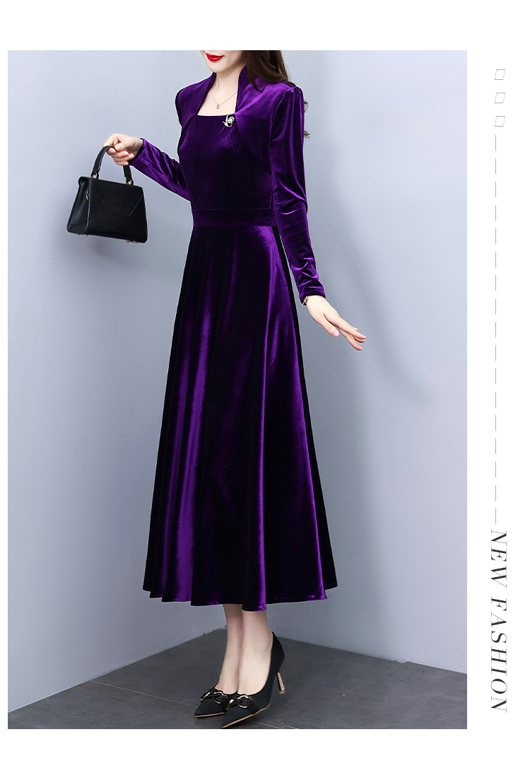 MY13312# 高端名媛酒红色长裙春喜婆婆礼服显瘦长袖丝绒连衣裙女女裝貨源服裝批發