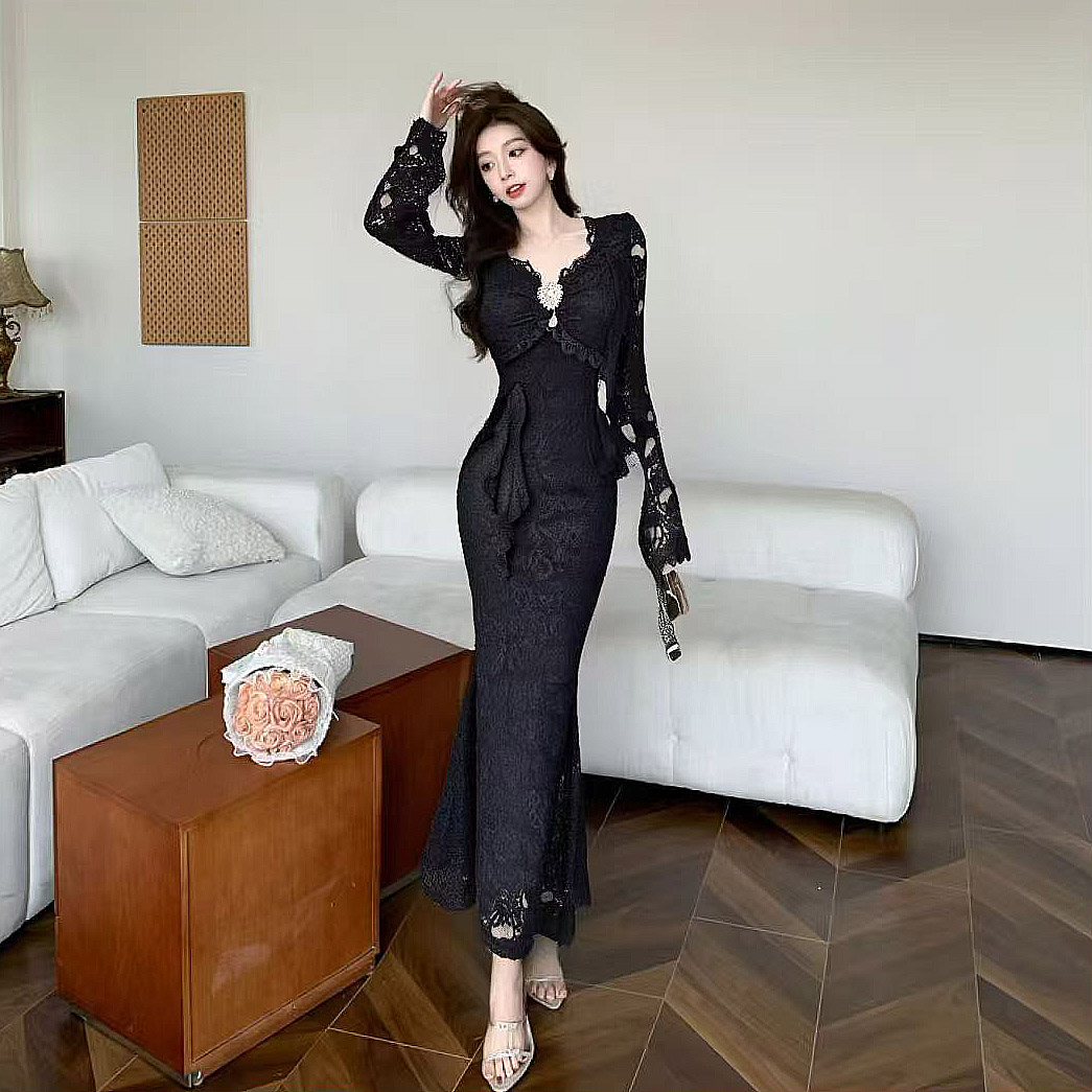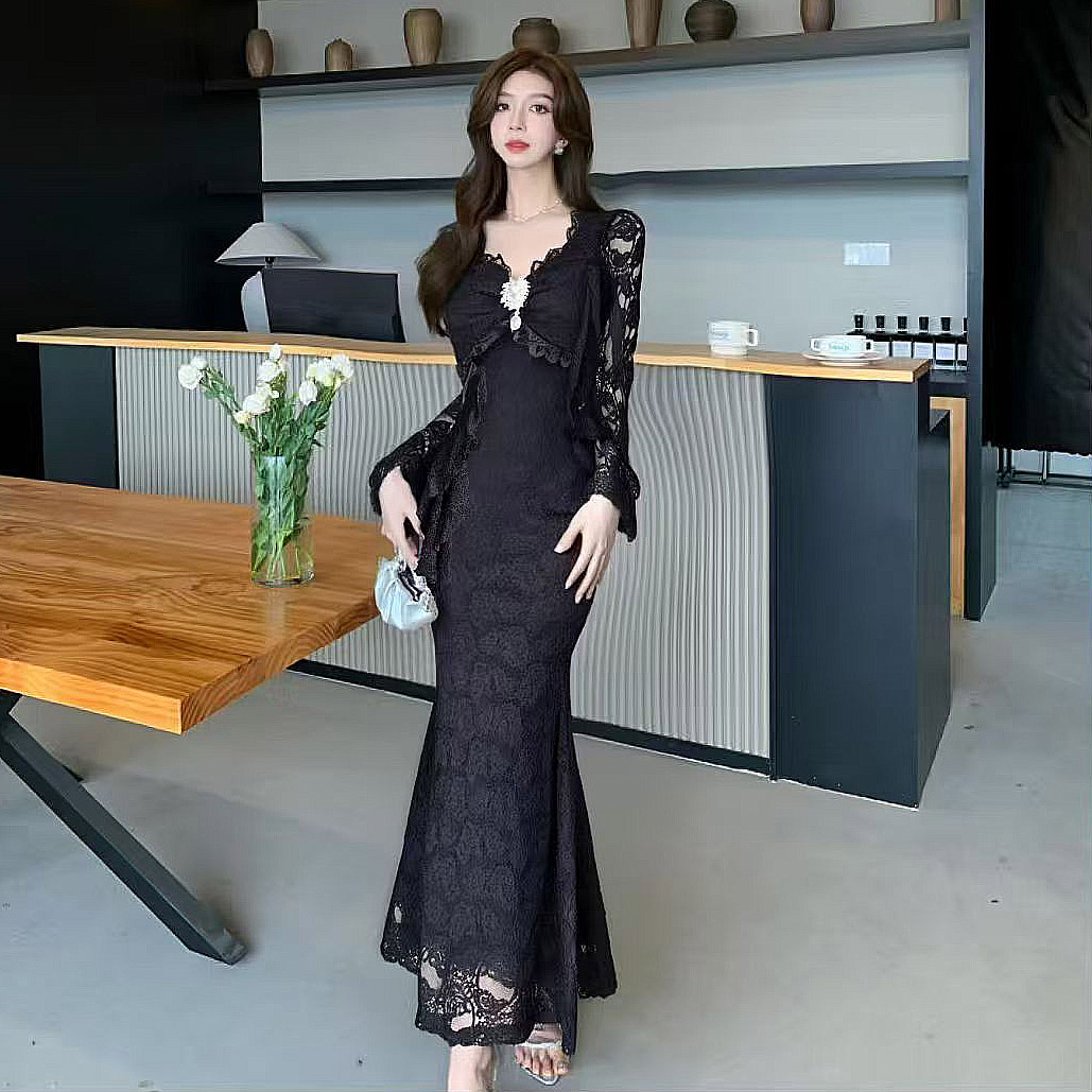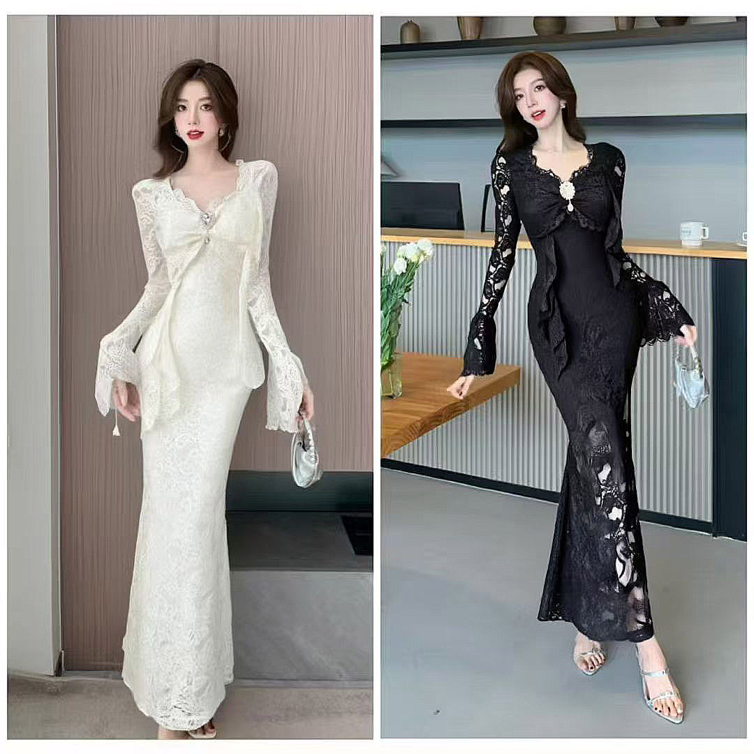 MY13579# 新款修身显瘦包臀鱼尾裙年会长裙蕾丝连衣裙女裝貨源服裝批發