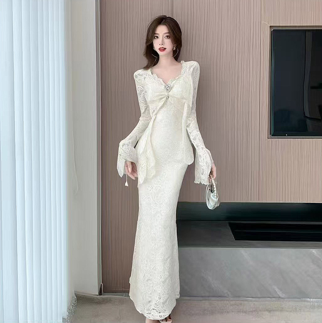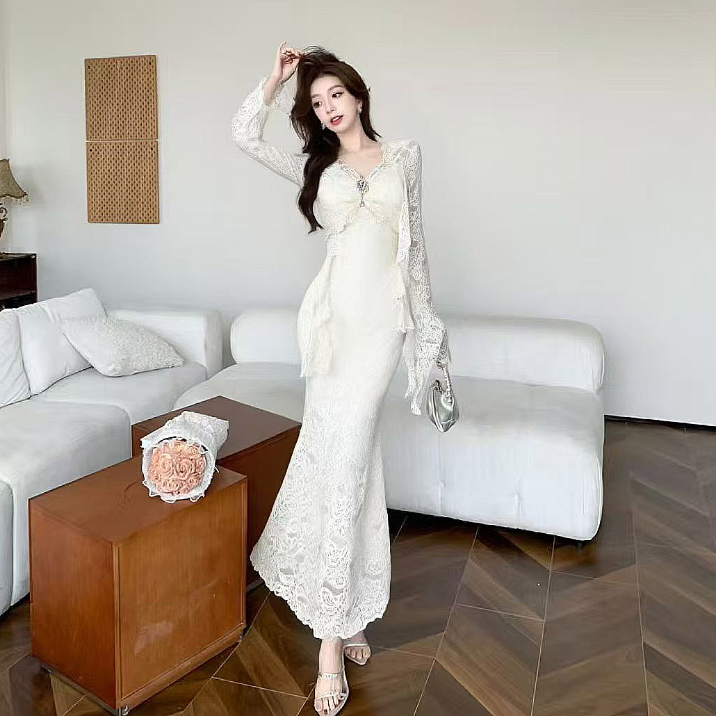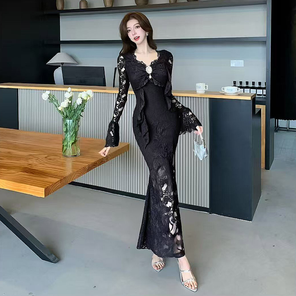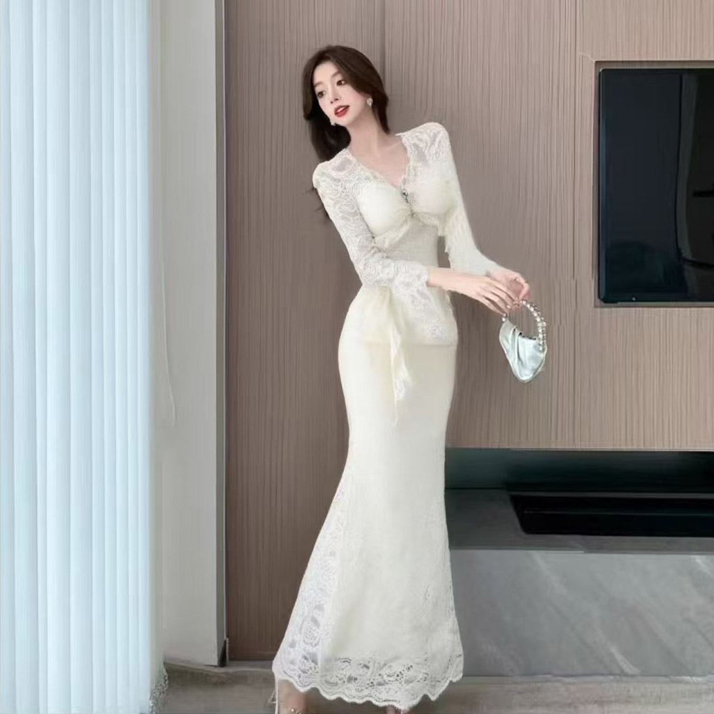 MY13579# 新款修身显瘦包臀鱼尾裙年会长裙蕾丝连衣裙女裝貨源服裝批發