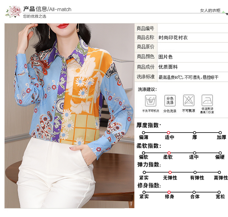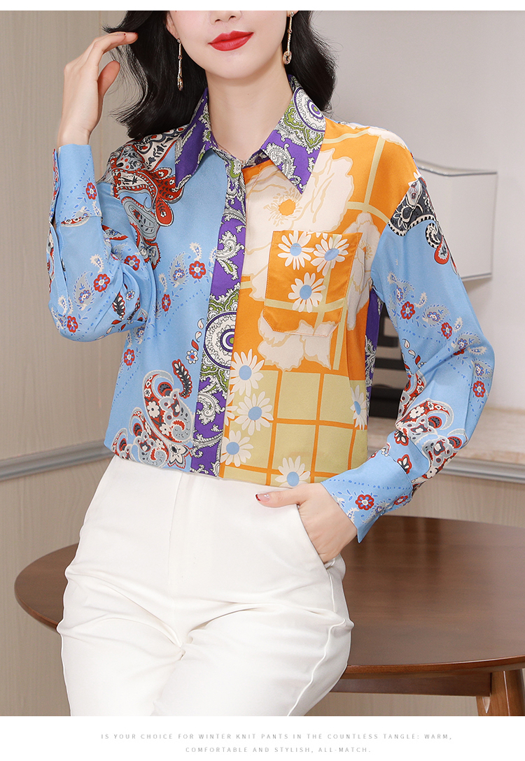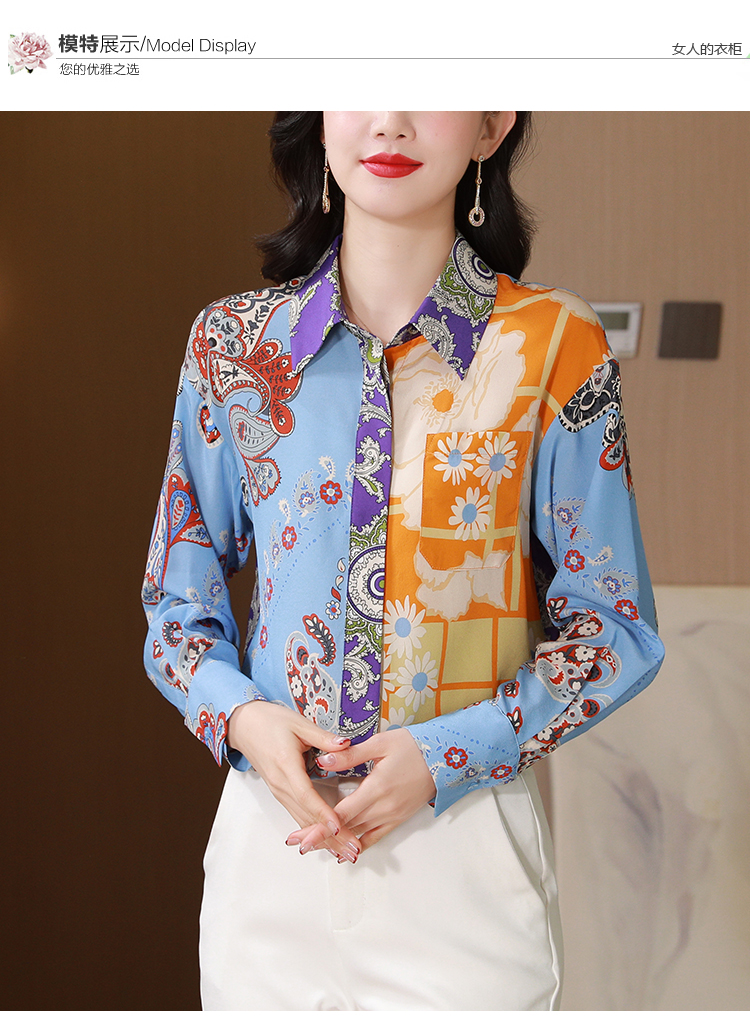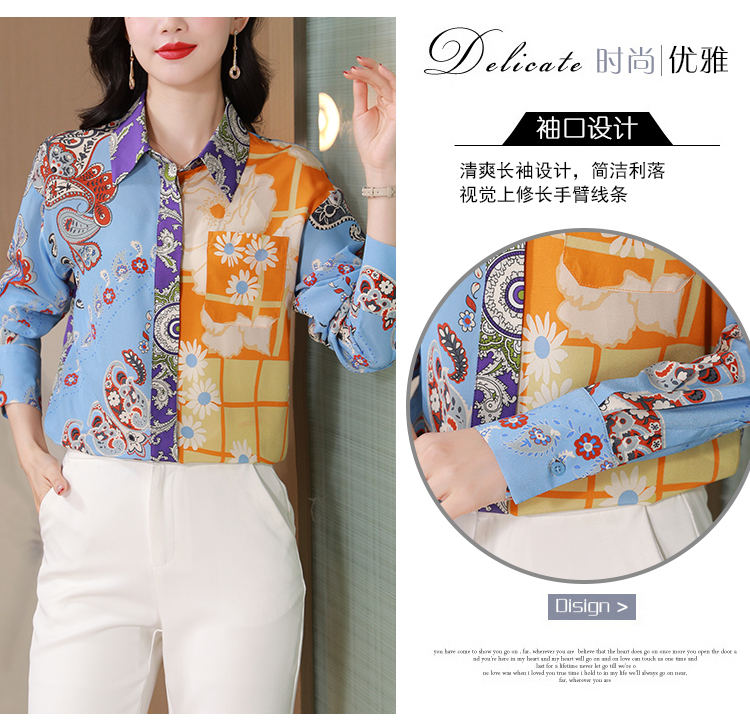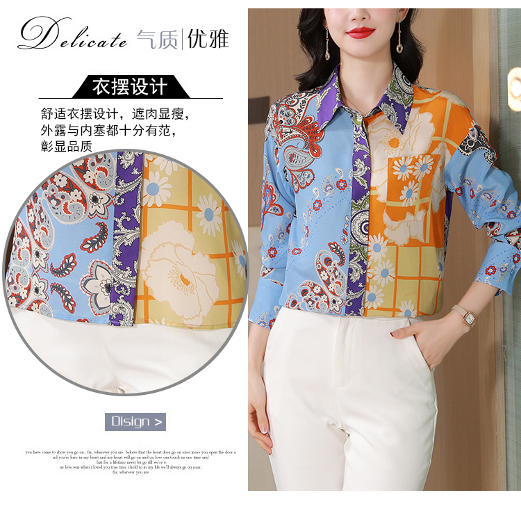 MY13775# 女裝貨源真丝女士轻奢洋气拼色印花衬衫爆款桑蚕丝法式上衣设计感衬衣女裝貨源服裝批發服裝批發