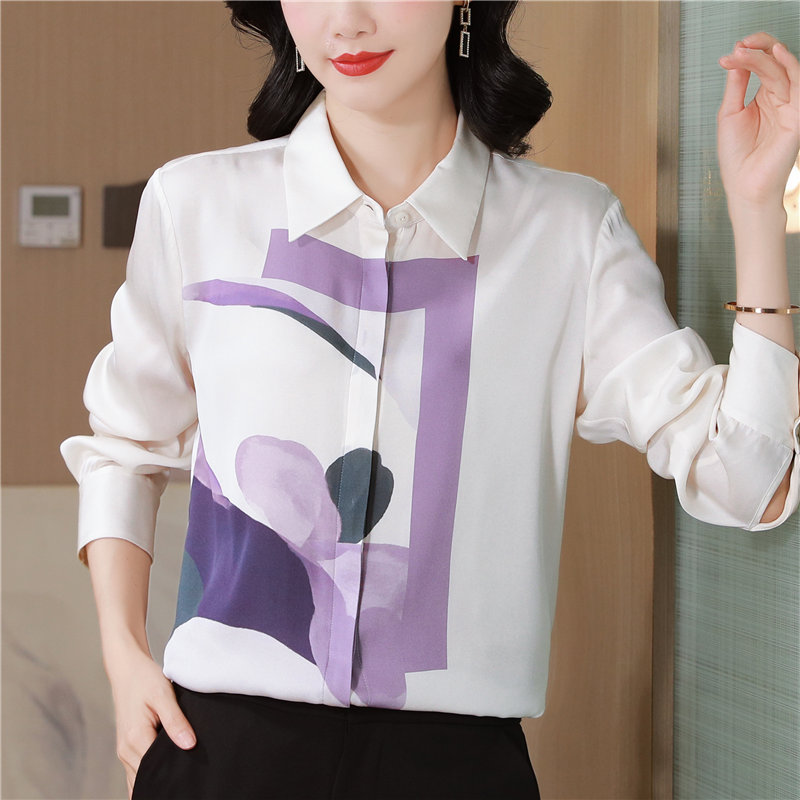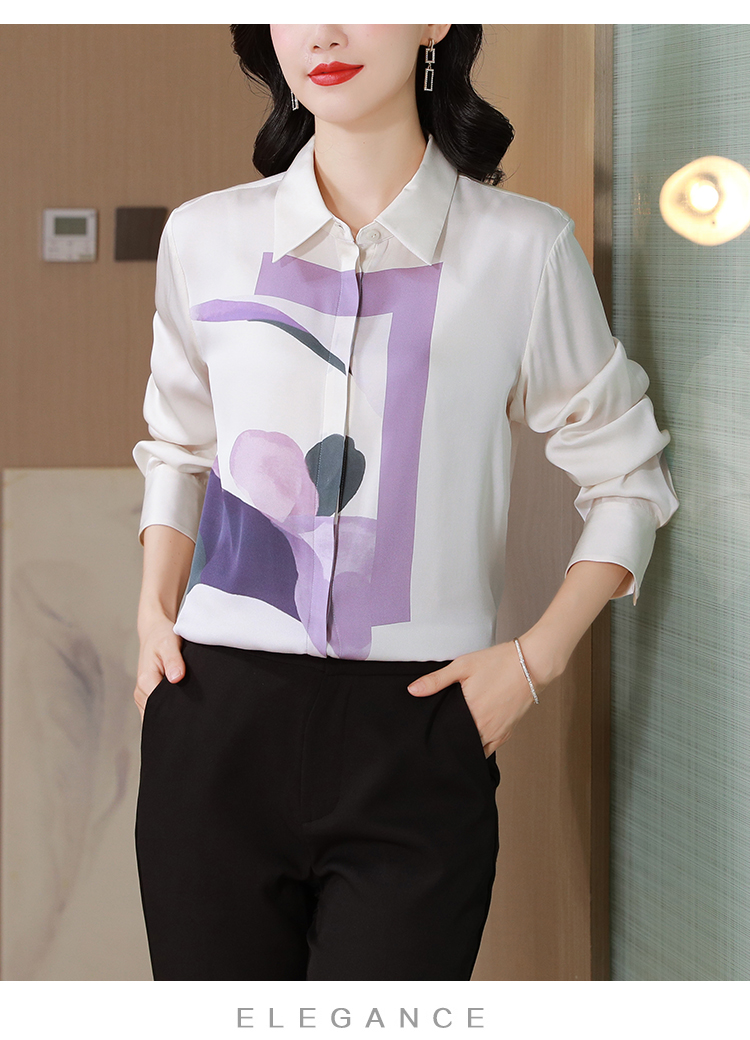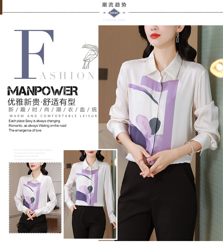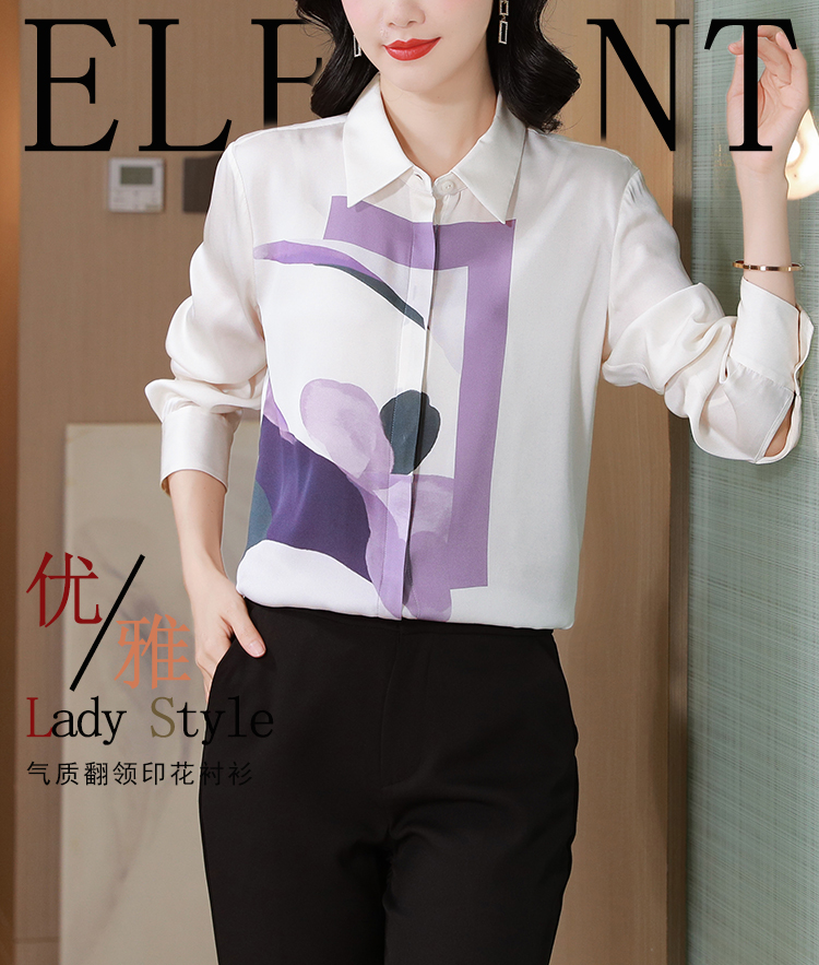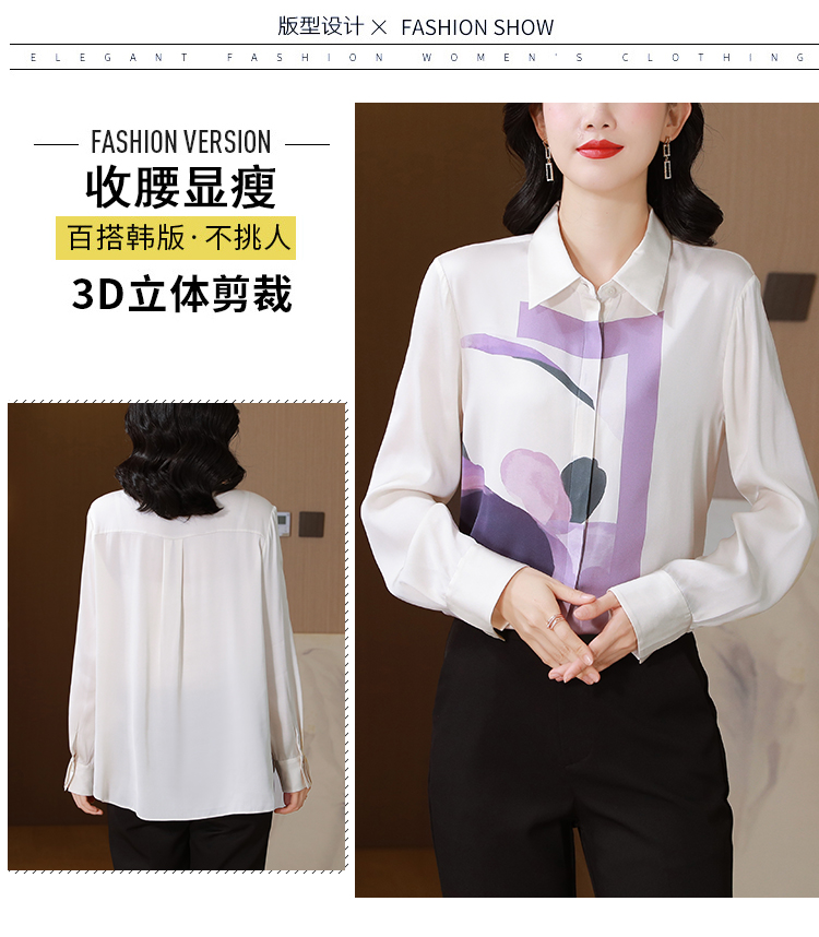 MY13779# 女裝貨源大簰定位印花重磅真丝衬衫长袖新款翻领气质桑蚕丝上衣女裝貨源服裝批發服裝批發