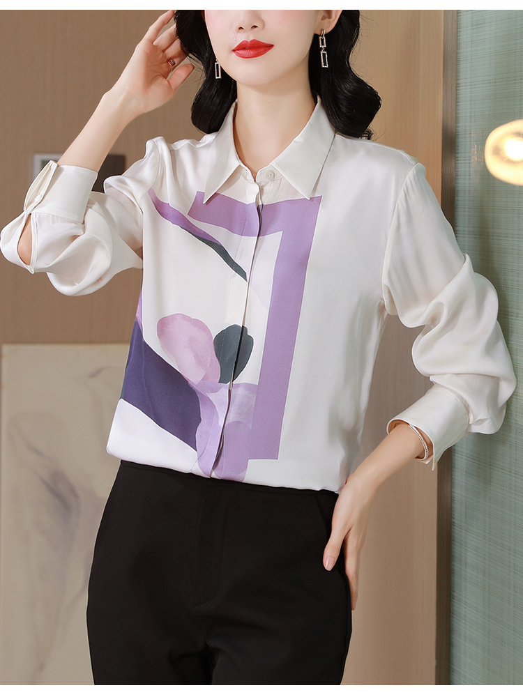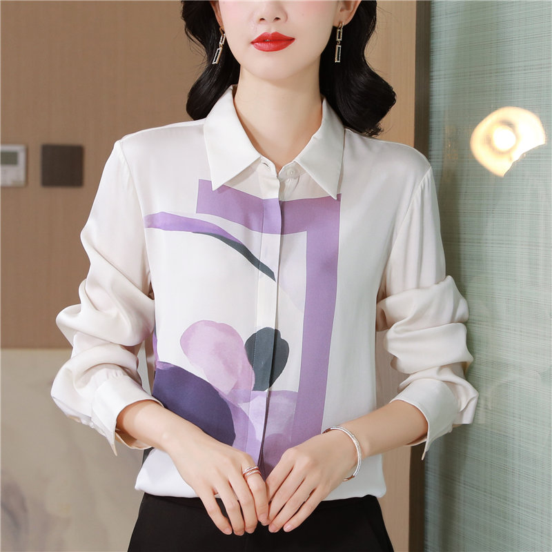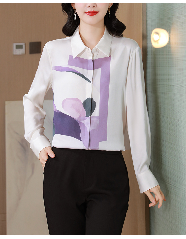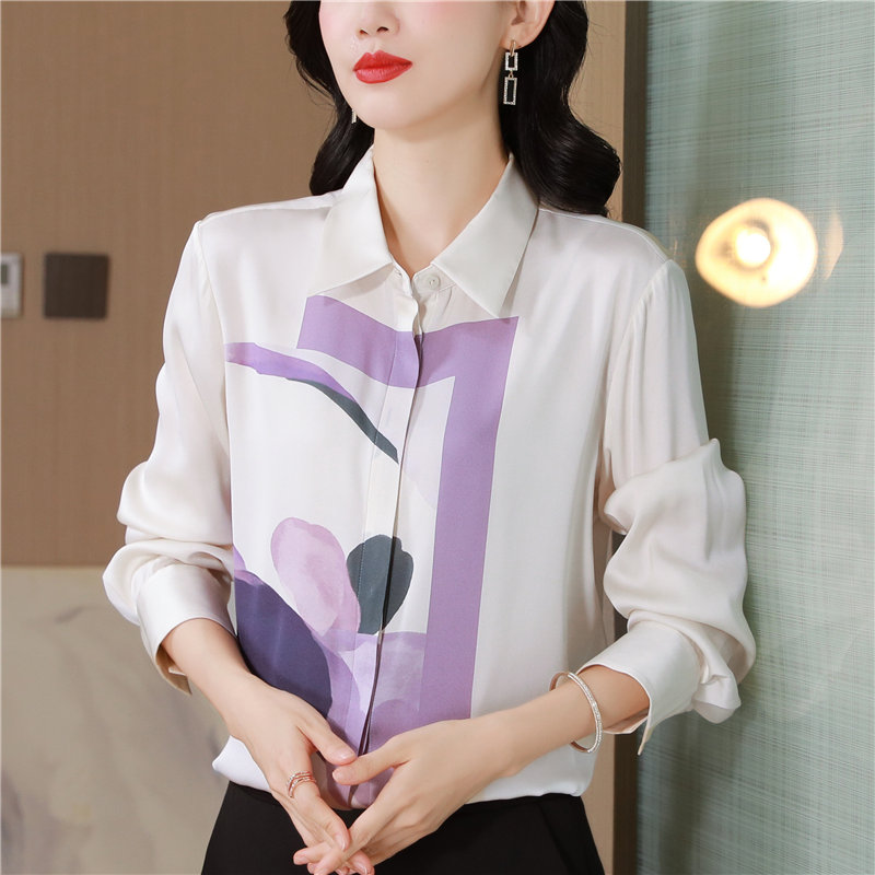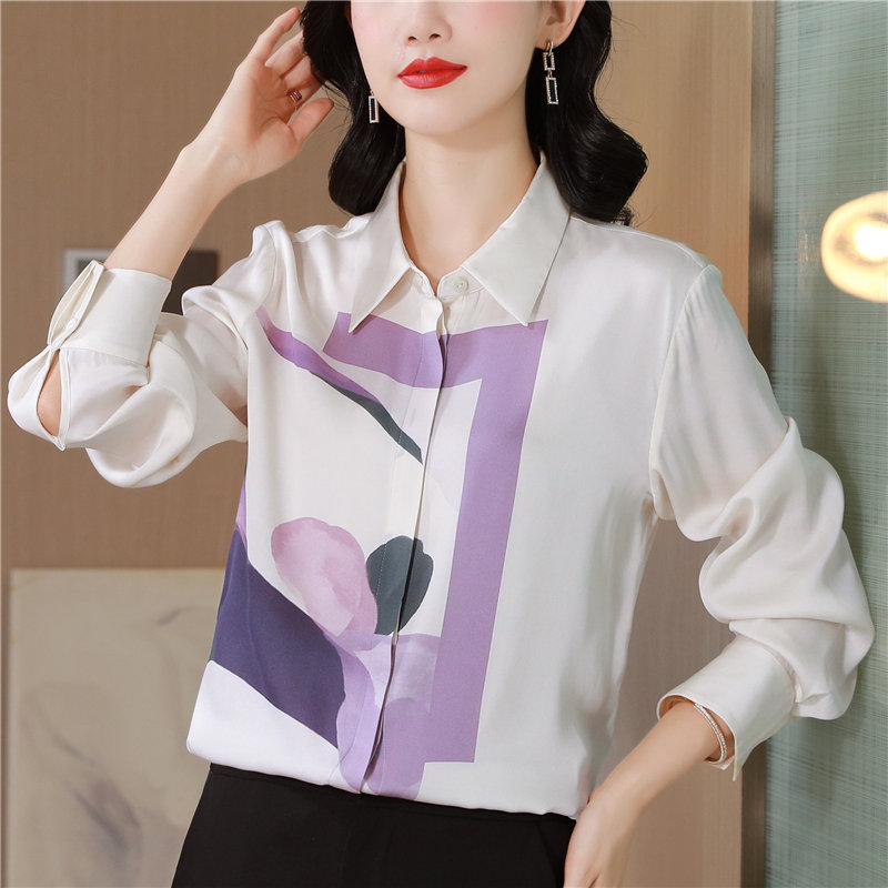 MY13779# 女裝貨源大簰定位印花重磅真丝衬衫长袖新款翻领气质桑蚕丝上衣女裝貨源服裝批發服裝批發