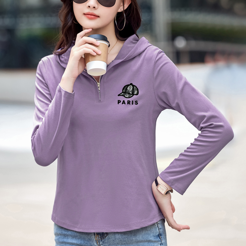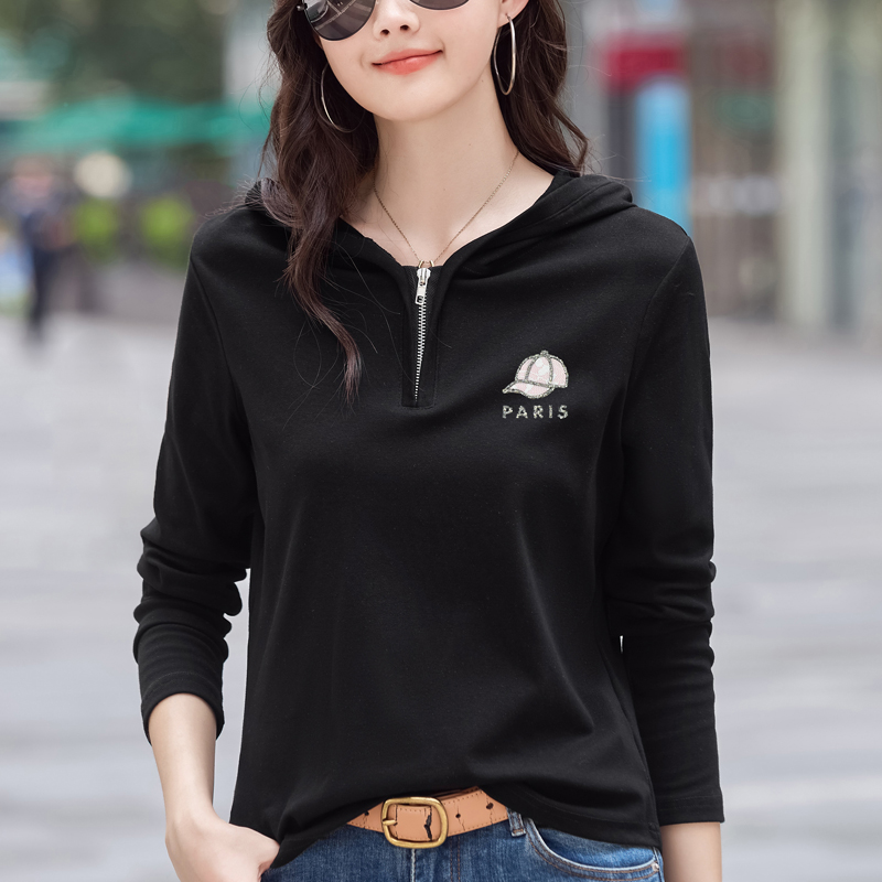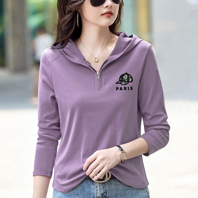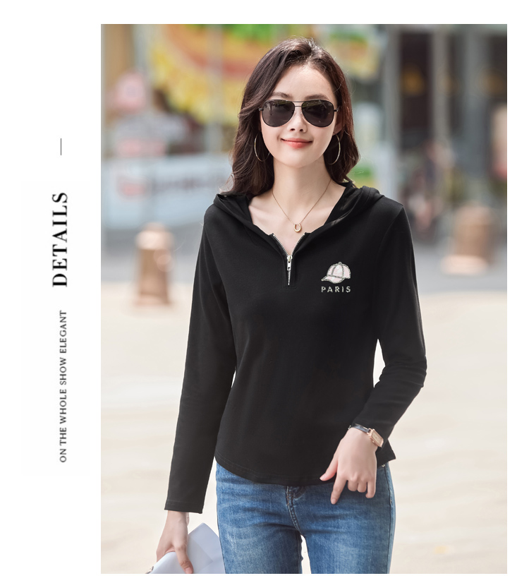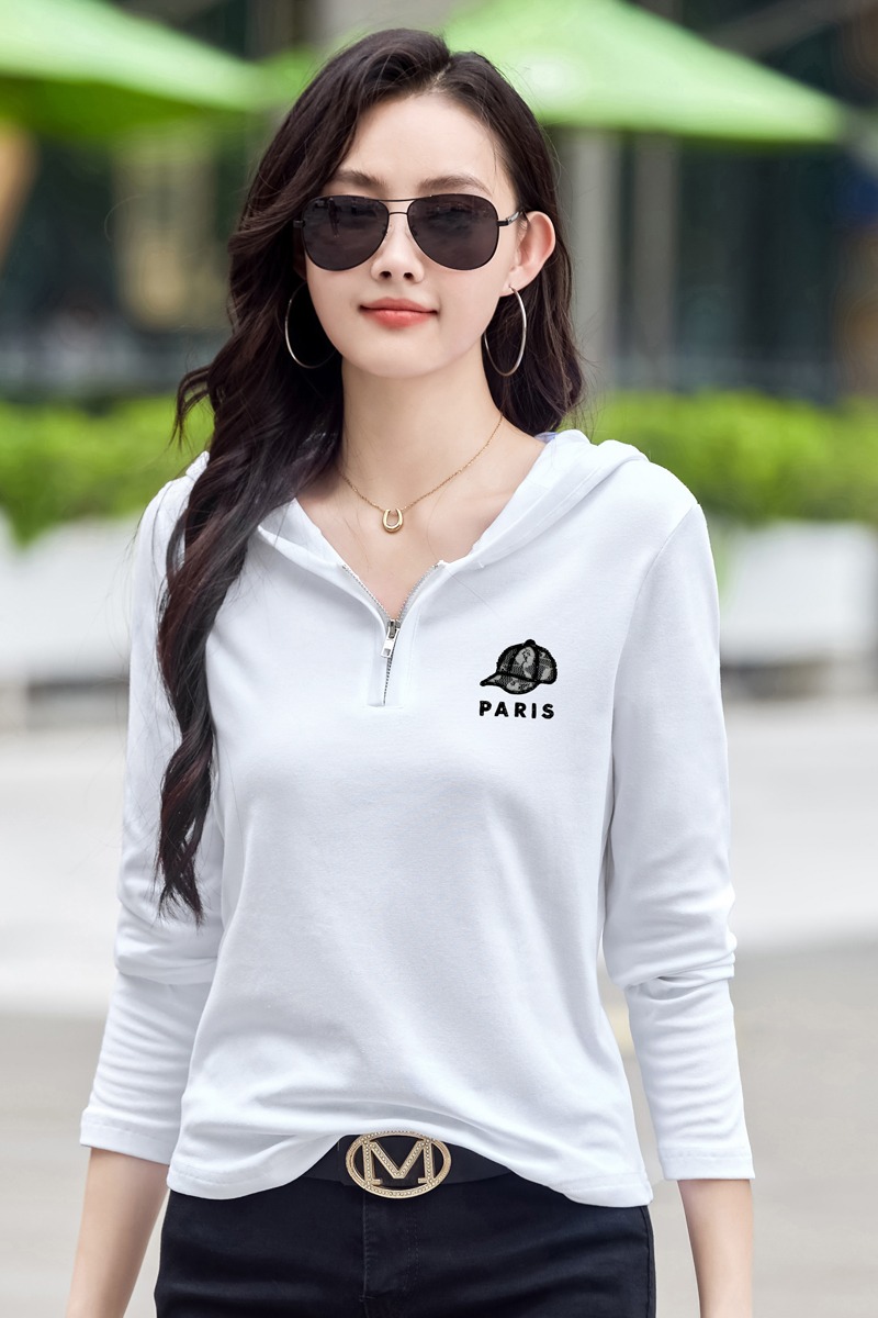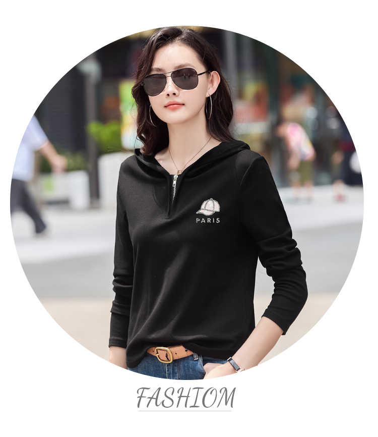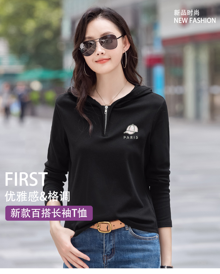 MY13785# 女裝貨源外穿长袖t恤女休闲简约百搭宽松大码女装打底衫连帽上衣女裝貨源服裝批發服裝批發