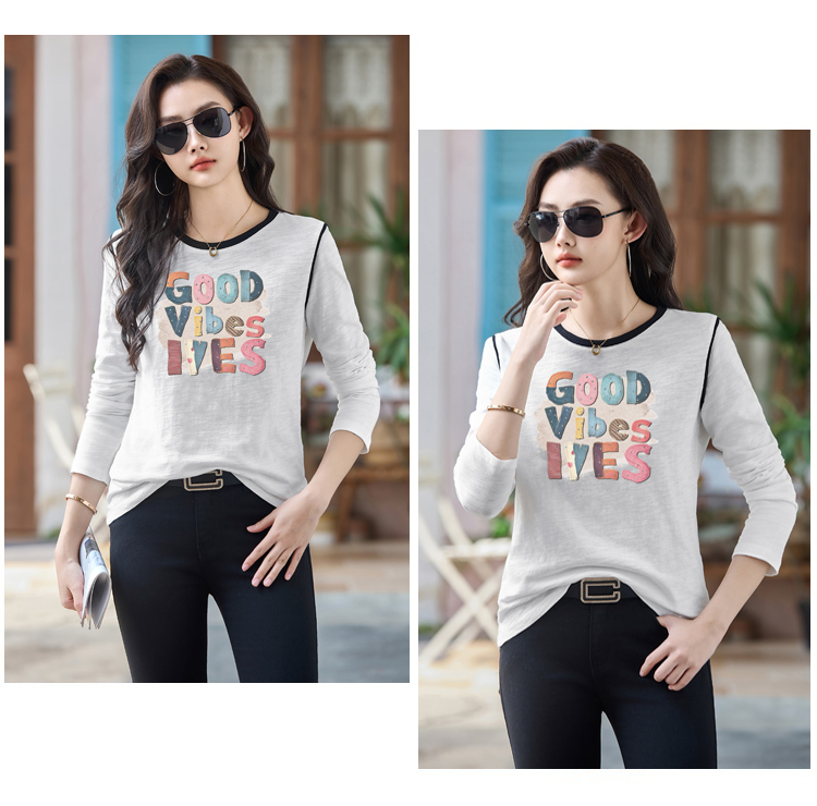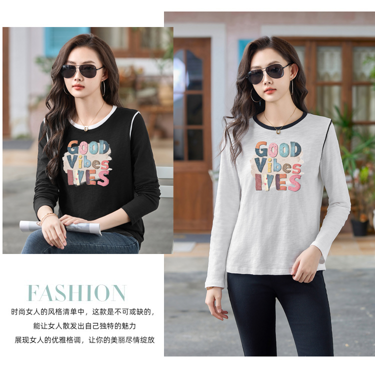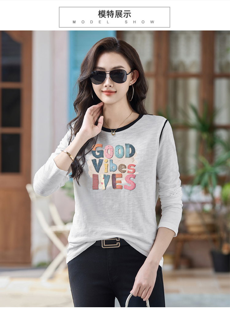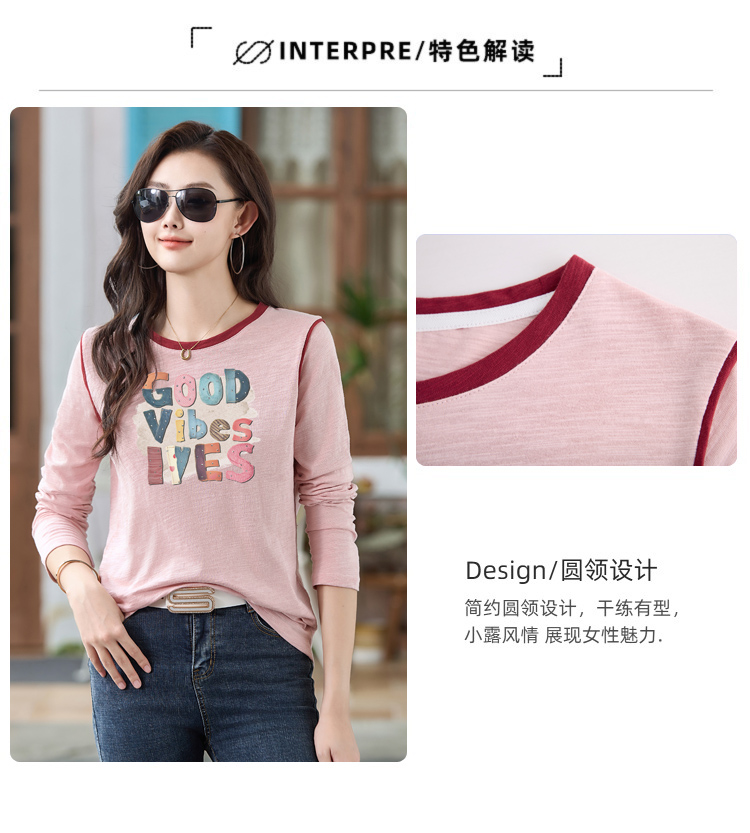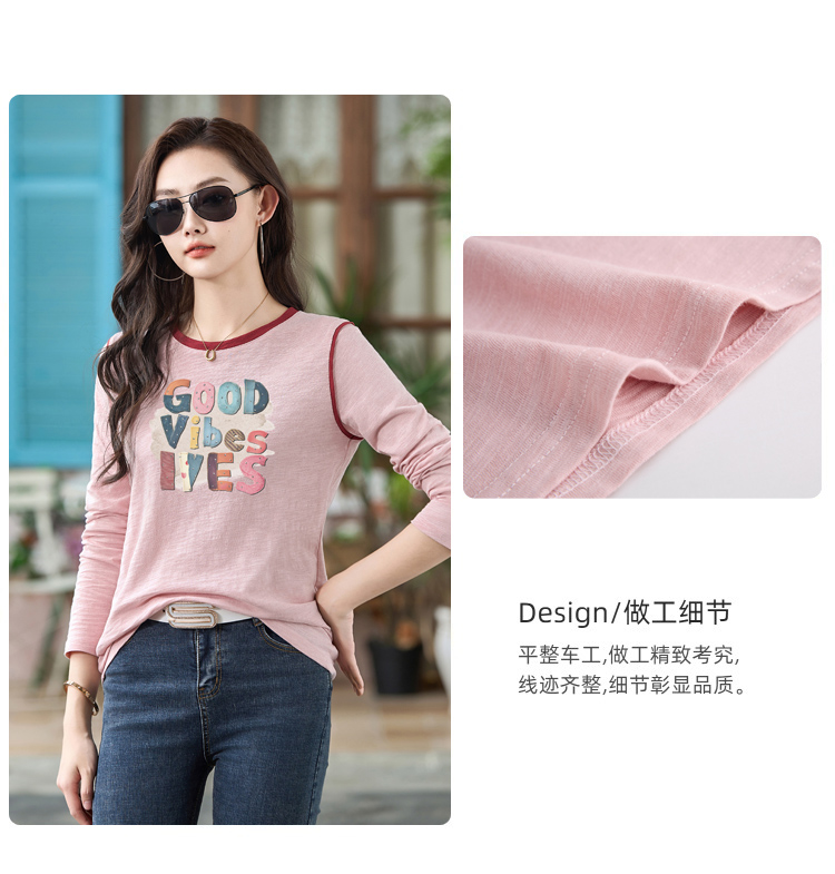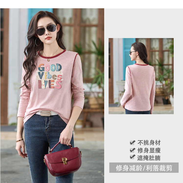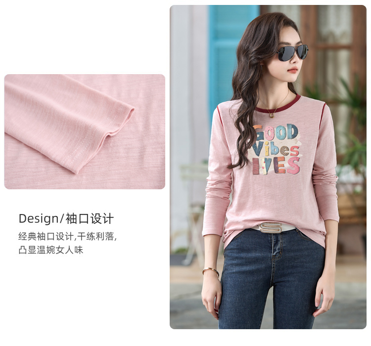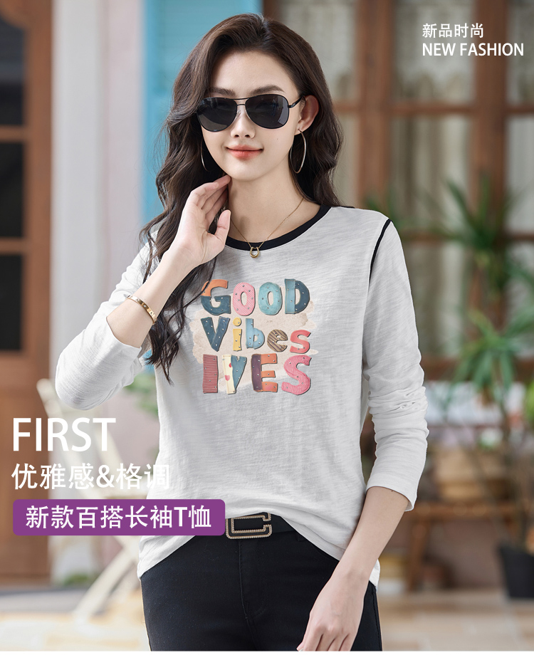 MY13794# 女裝貨源纯棉长袖t恤女装宽松新款竹节棉早秋百搭休闲上衣小...