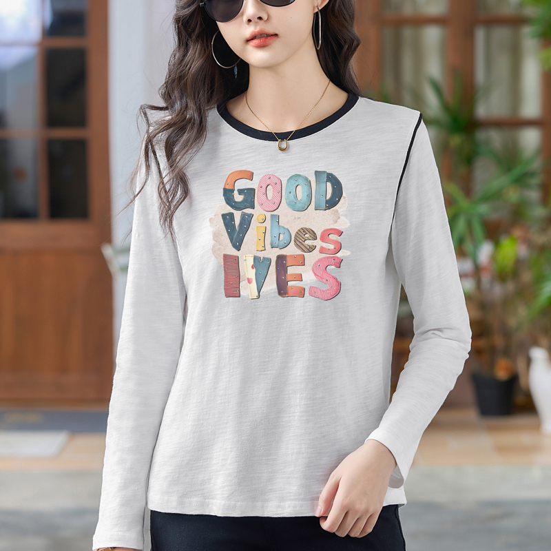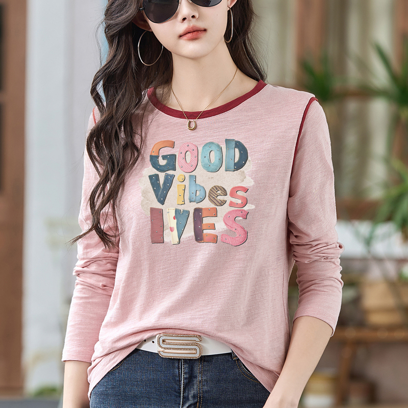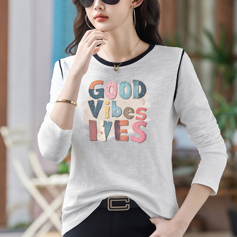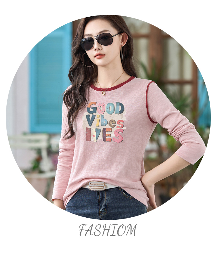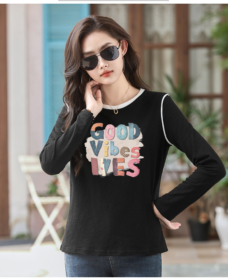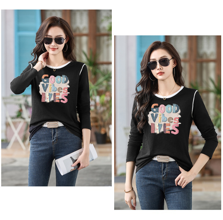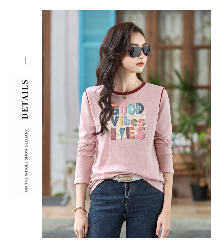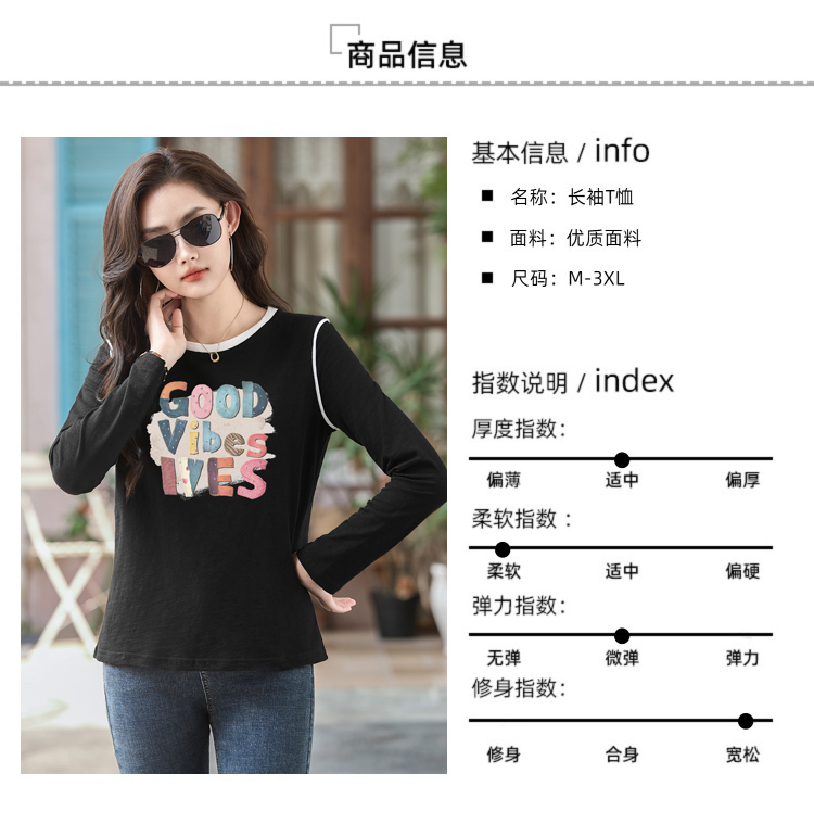 MY13794# 女裝貨源纯棉长袖t恤女装宽松新款竹节棉早秋百搭休闲上衣小...