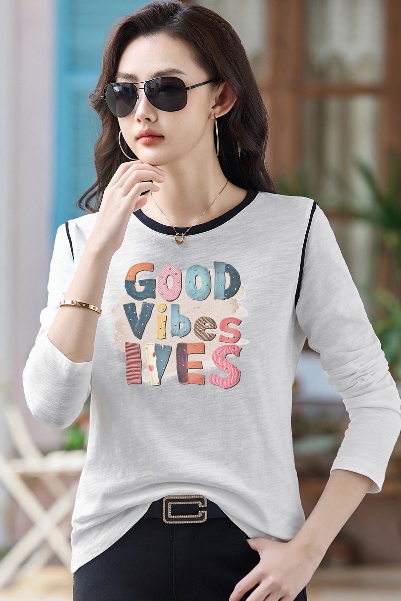 MY13792# 女裝貨源纯棉白色t恤女长袖上衣宽松大码内搭打底衫ins潮...