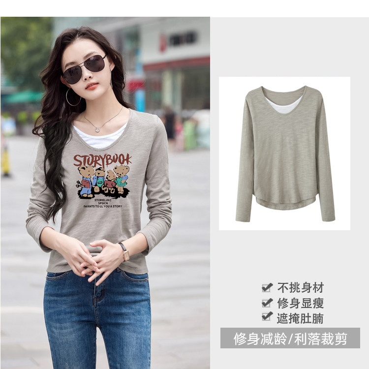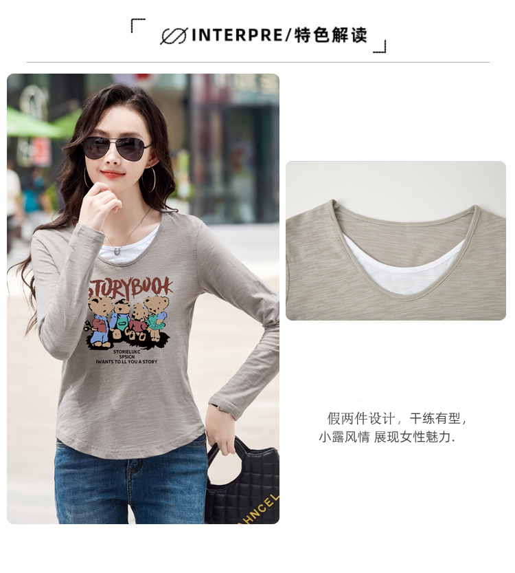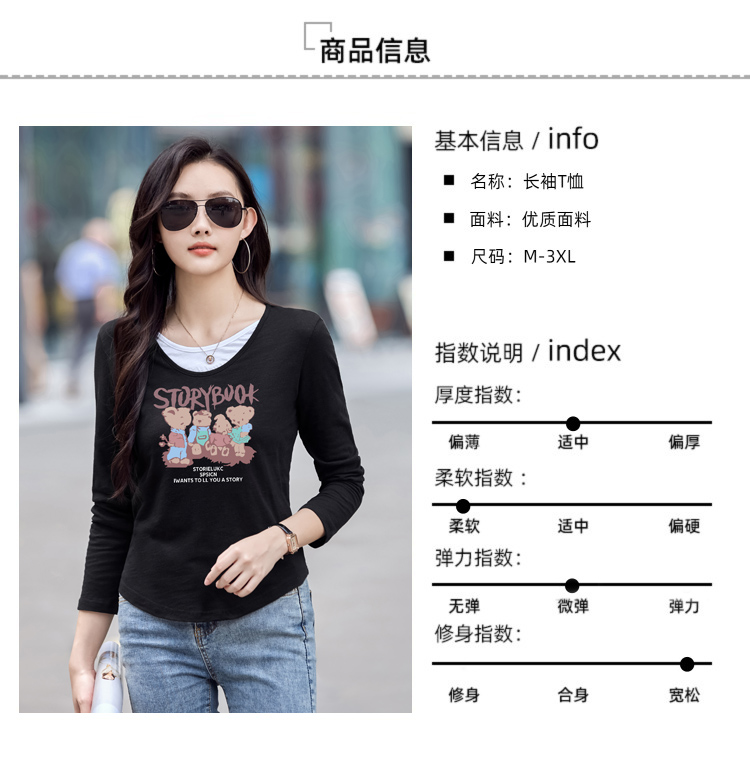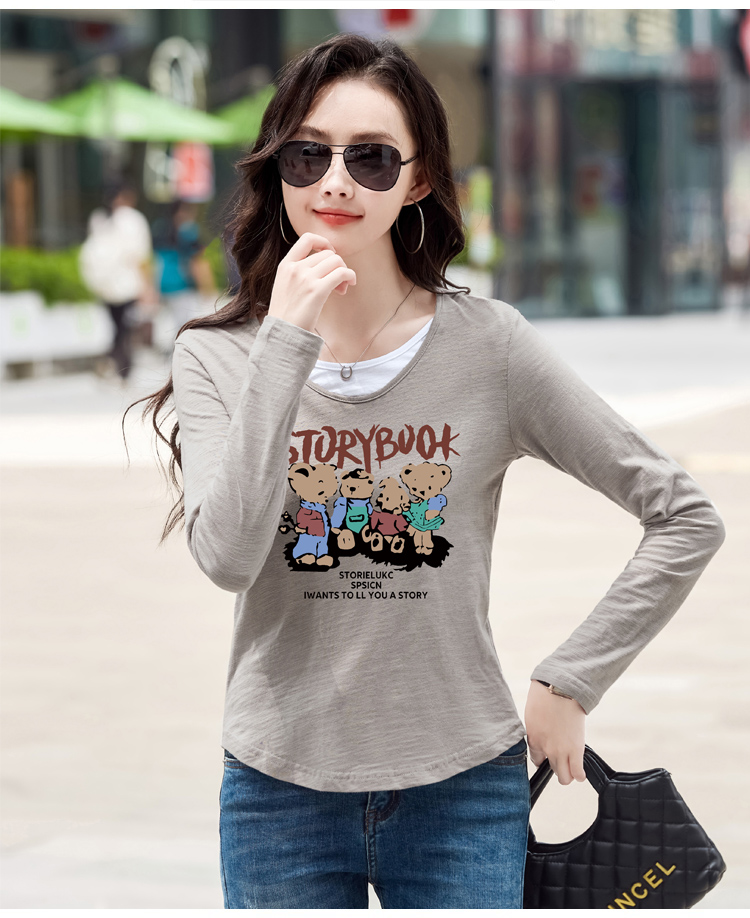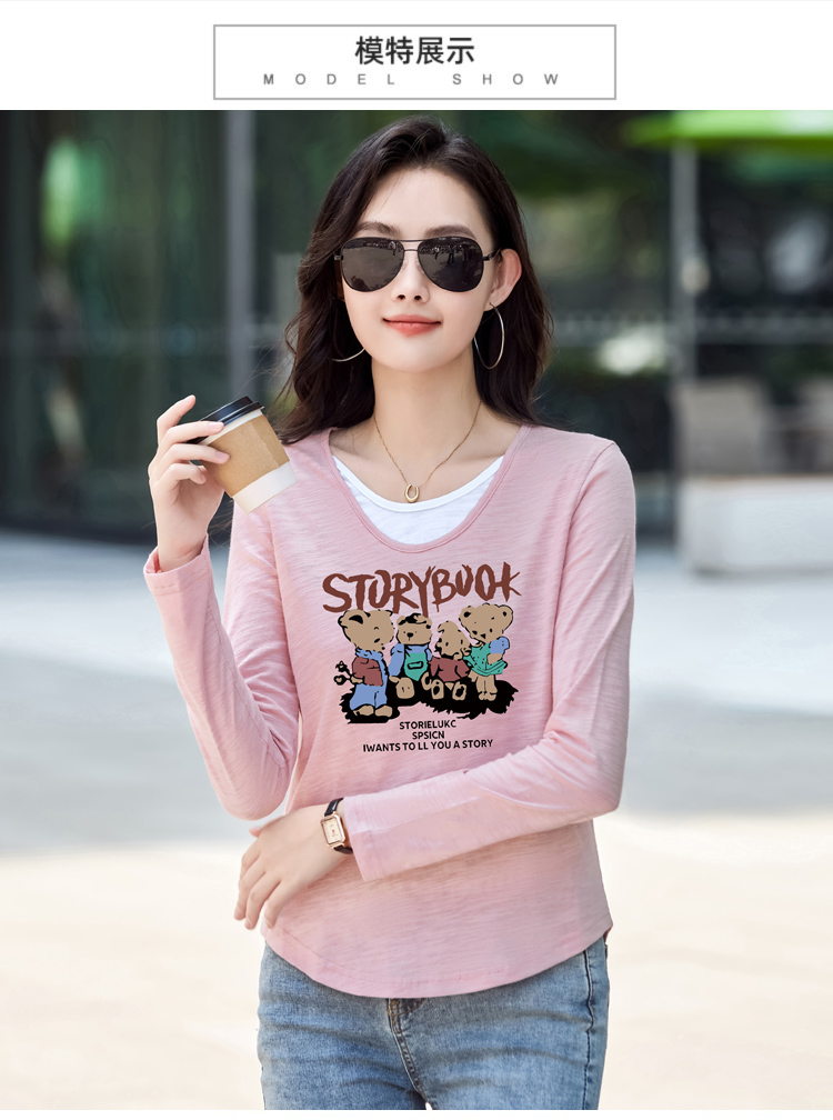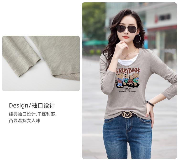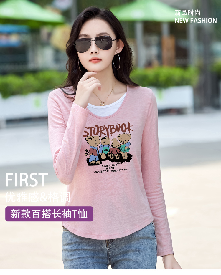 MY13794# 女裝貨源纯棉长袖t恤女装宽松新款竹节棉早秋百搭休闲上衣小...