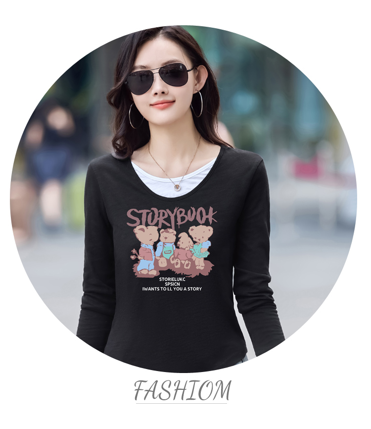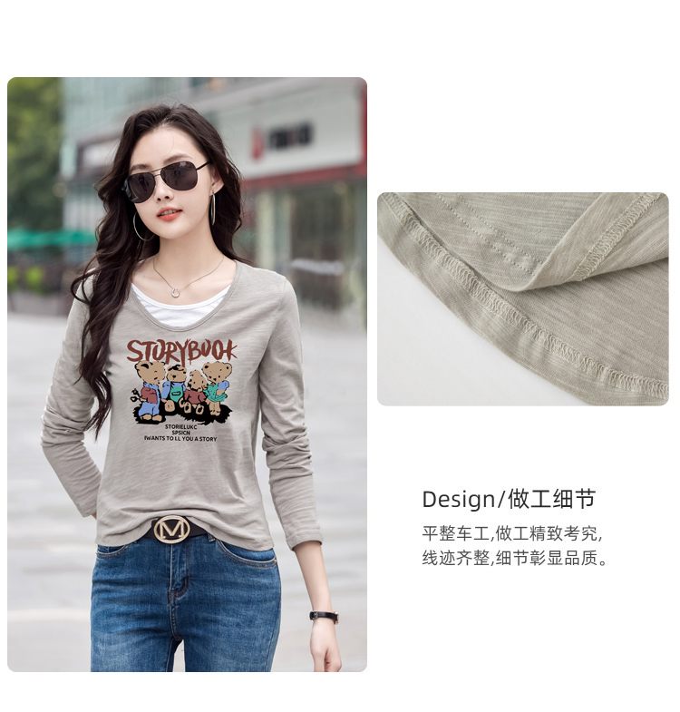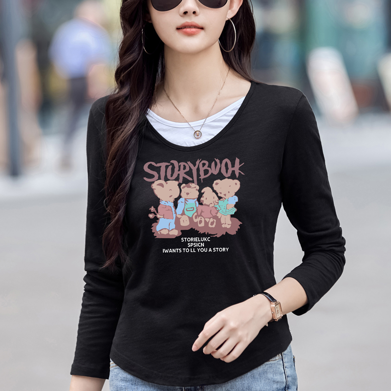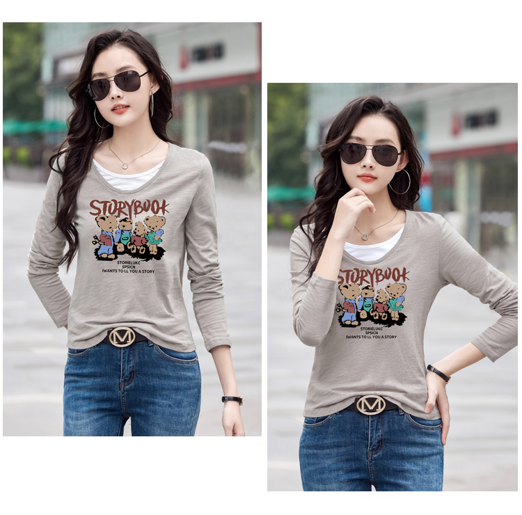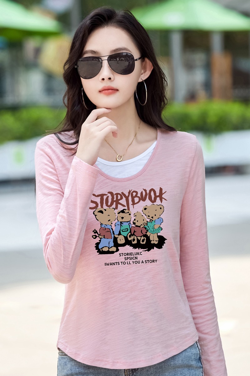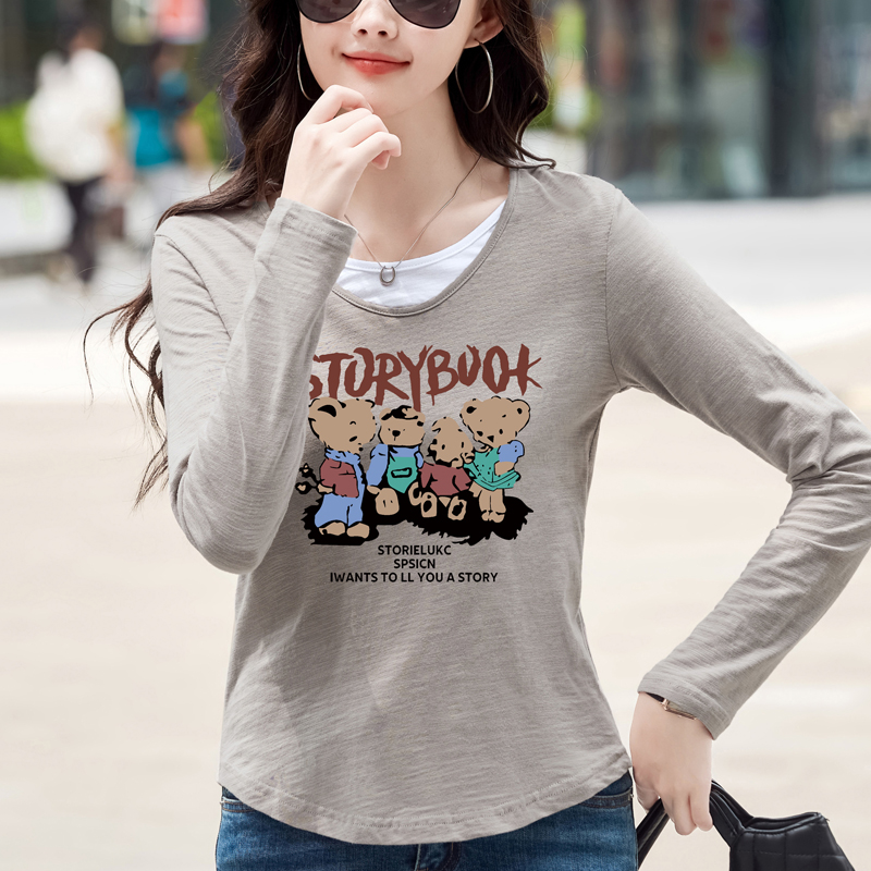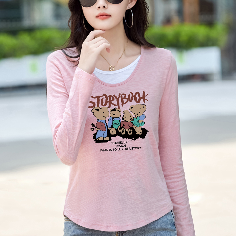 MY13794# 女裝貨源纯棉长袖t恤女装宽松新款竹节棉早秋百搭休闲上衣小...