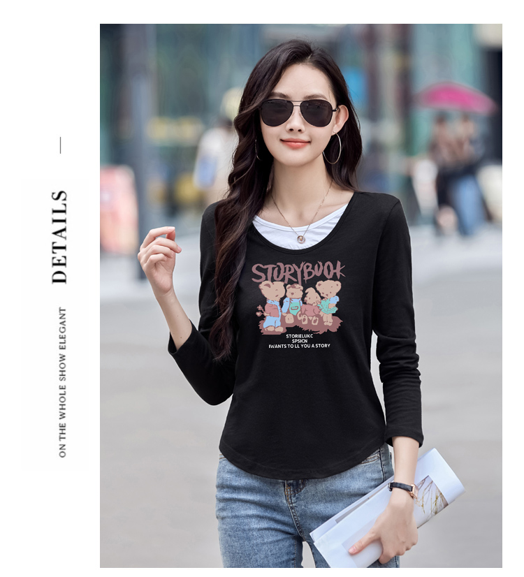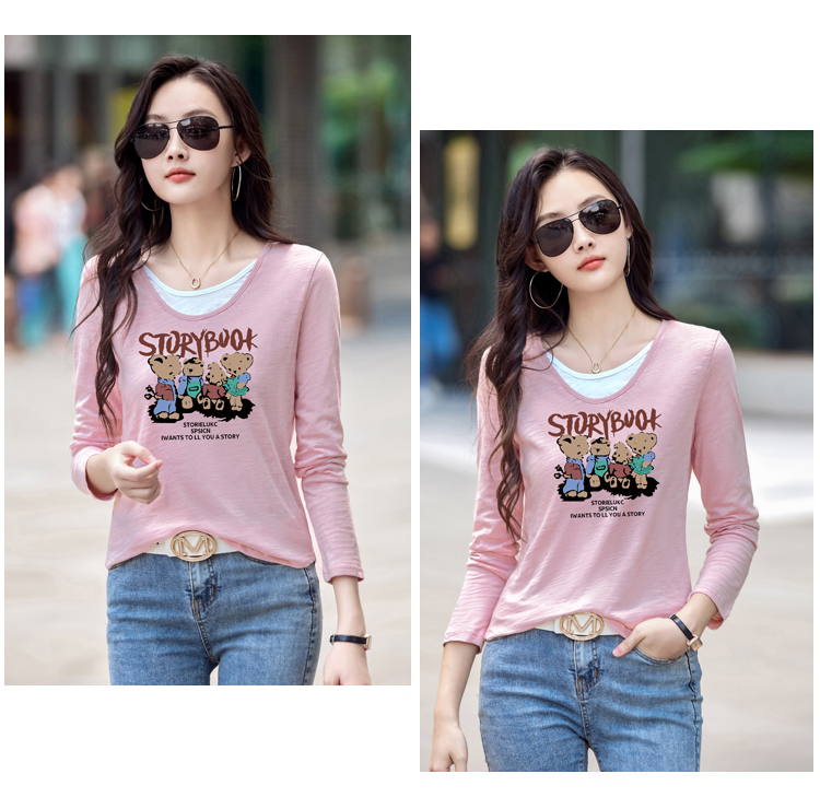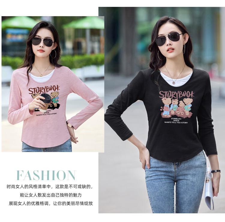 MY13789# 女裝貨源韩系松弛感新款撞色打底衫女慵懒假两件长袖内搭T恤上衣女裝貨源服裝批發服裝批發