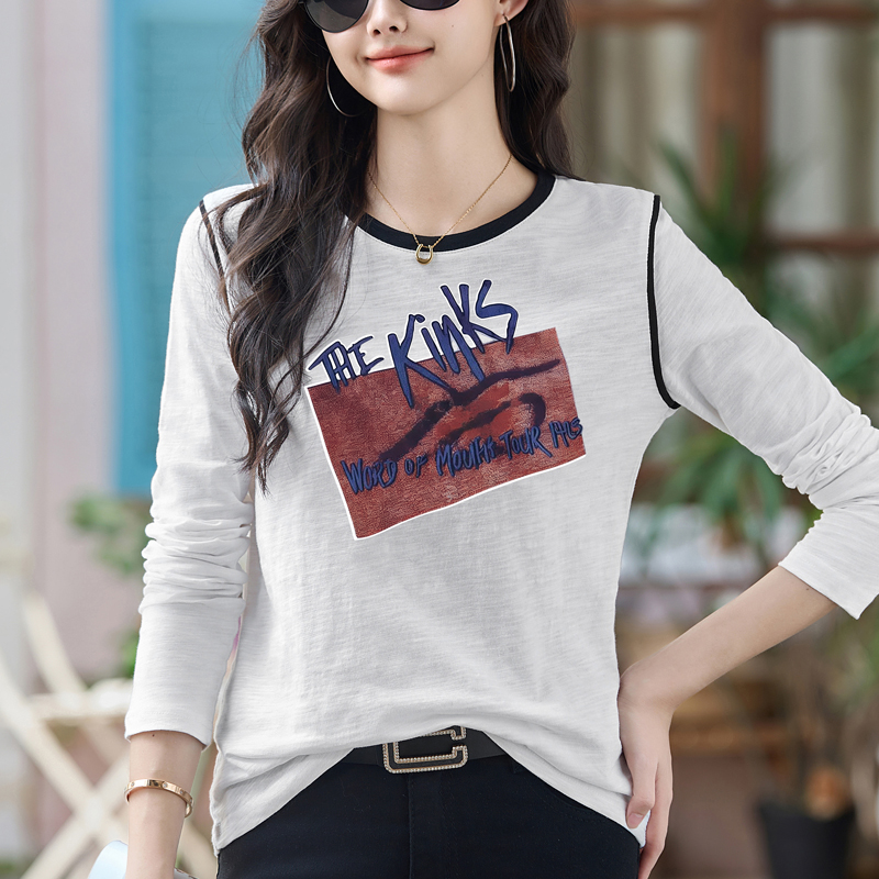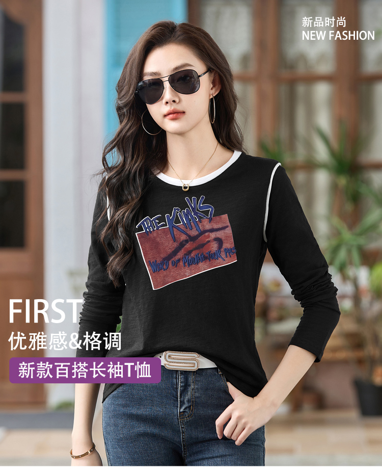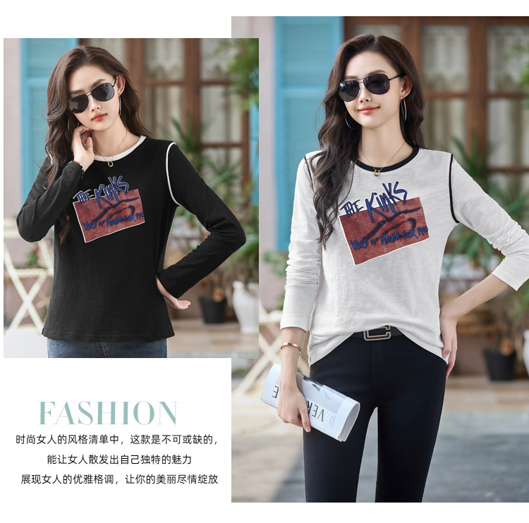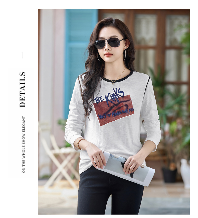 MY13792# 女裝貨源纯棉白色t恤女长袖上衣宽松大码内搭打底衫ins潮女裝貨源服裝批發服裝批發