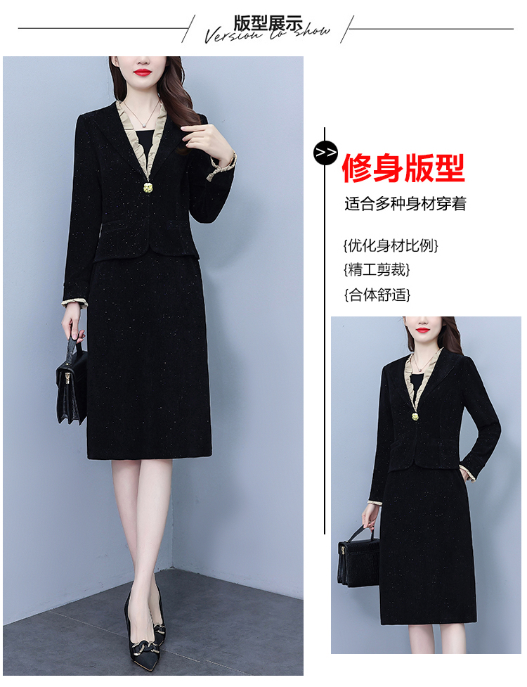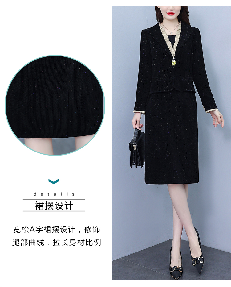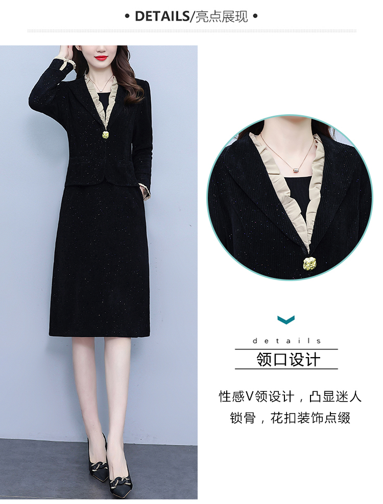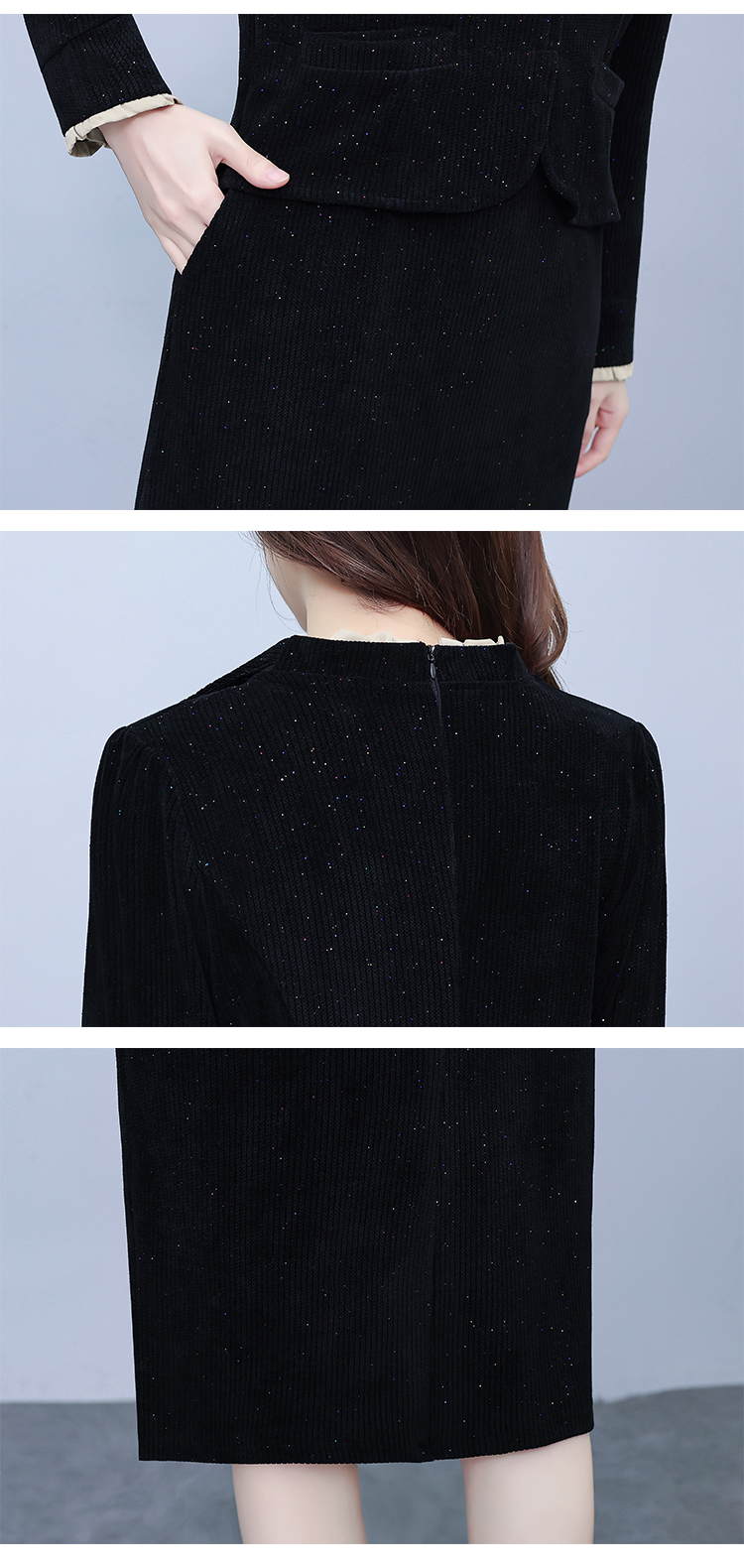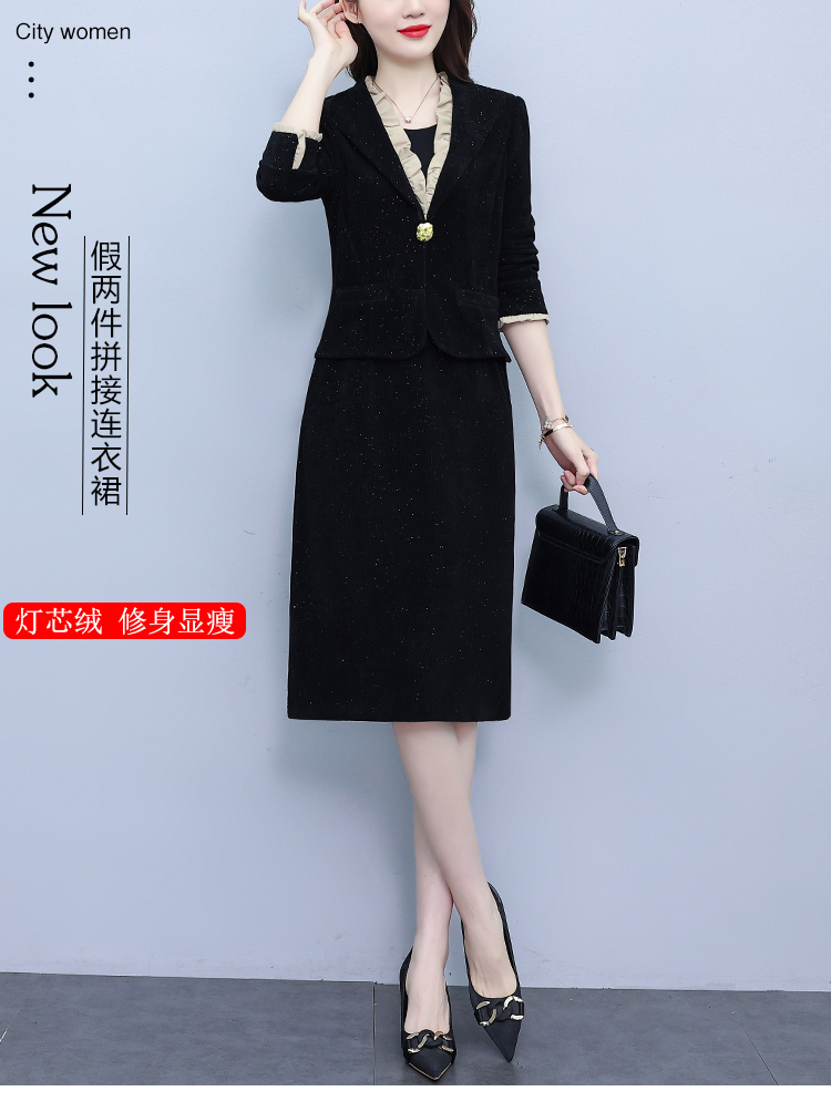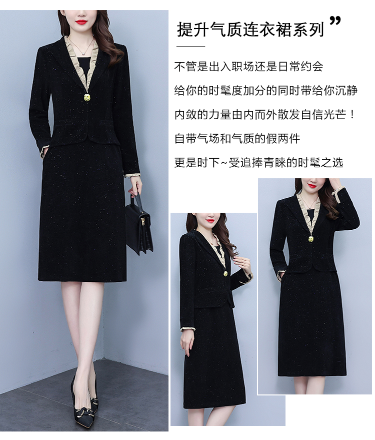 MY13805# 女裝貨源雪尼尔大码女装连衣裙时尚假两件套拼接中长裙女裝貨源服裝批發服裝批發