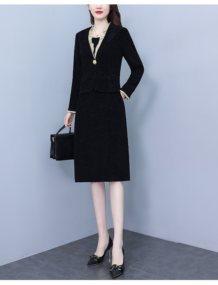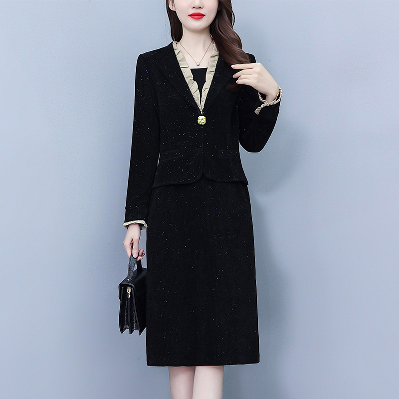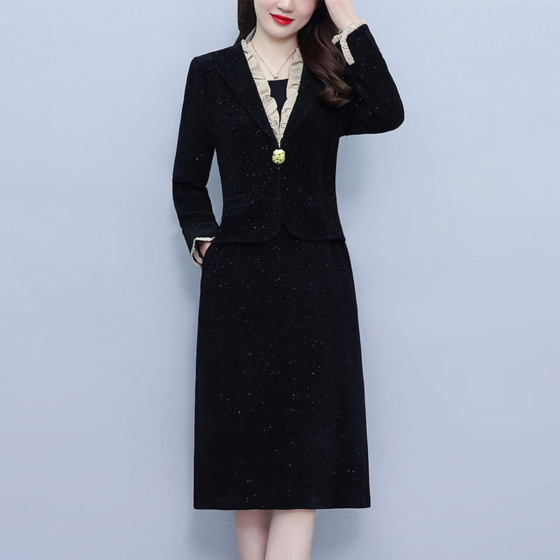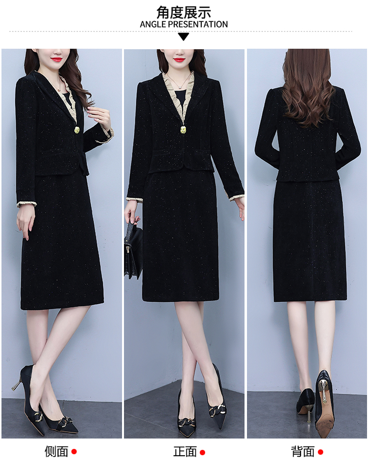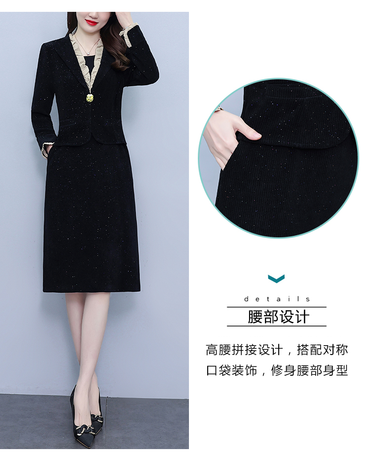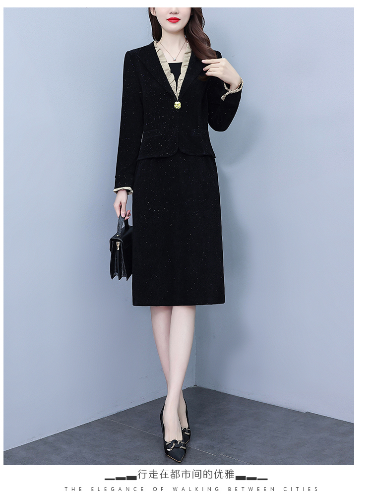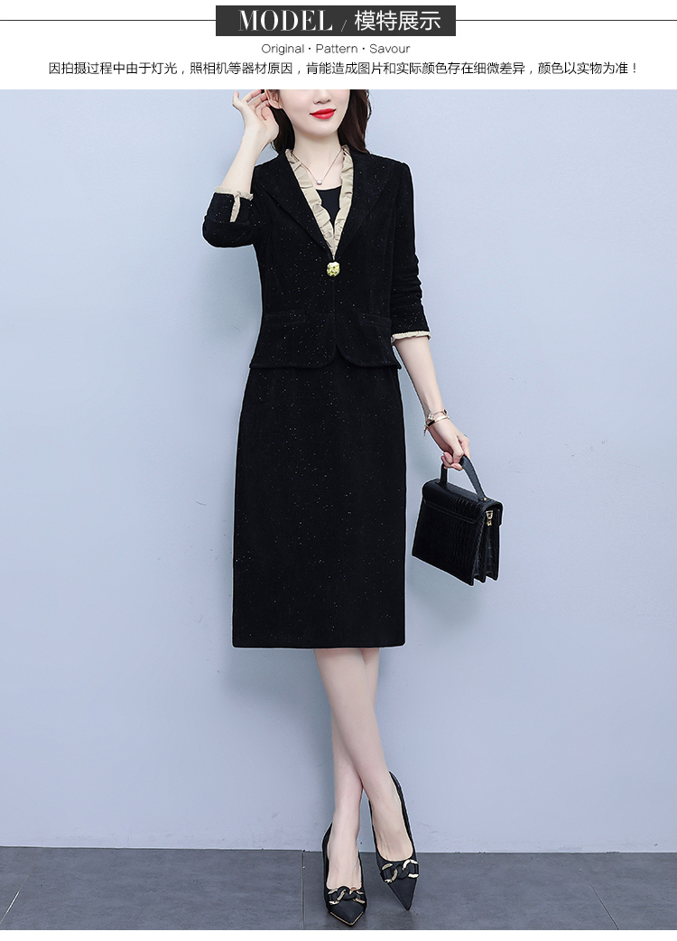 MY13805# 女裝貨源雪尼尔大码女装连衣裙时尚假两件套拼接中长裙女裝貨源服裝批發服裝批發