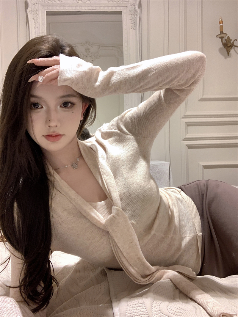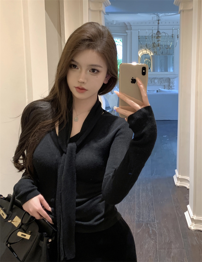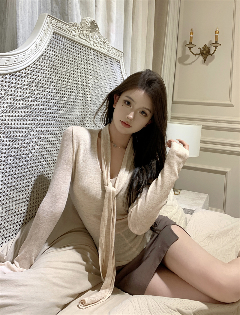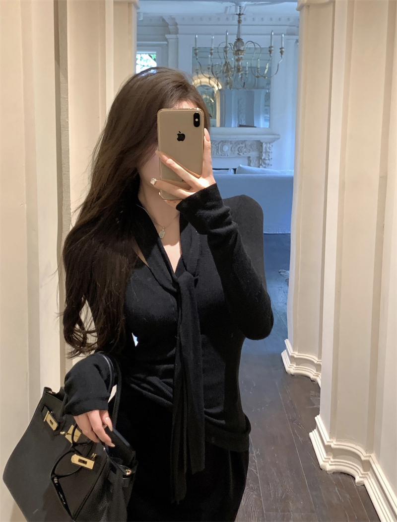 MY13818# 女裝貨源韩系氛围感V领针织衫女秋冬内搭修身显瘦温柔高级感上衣女裝貨源服裝批發服裝批發