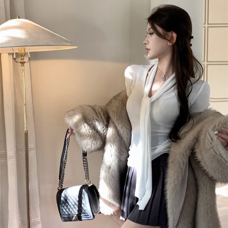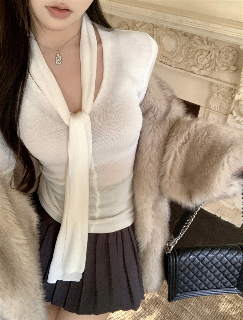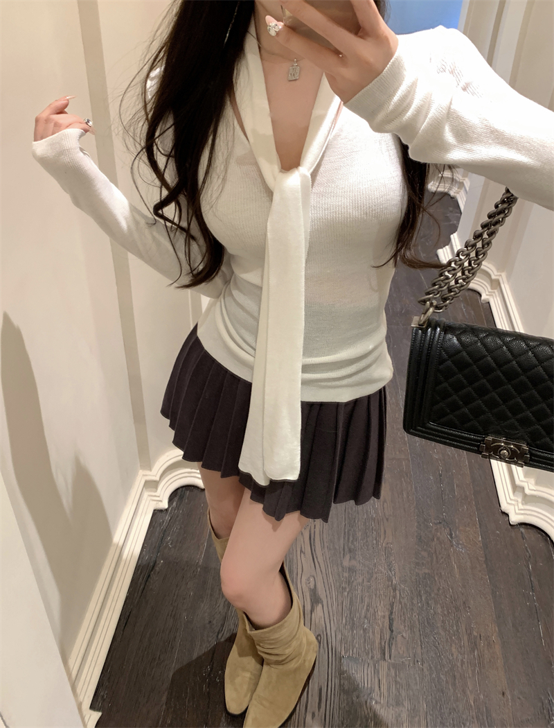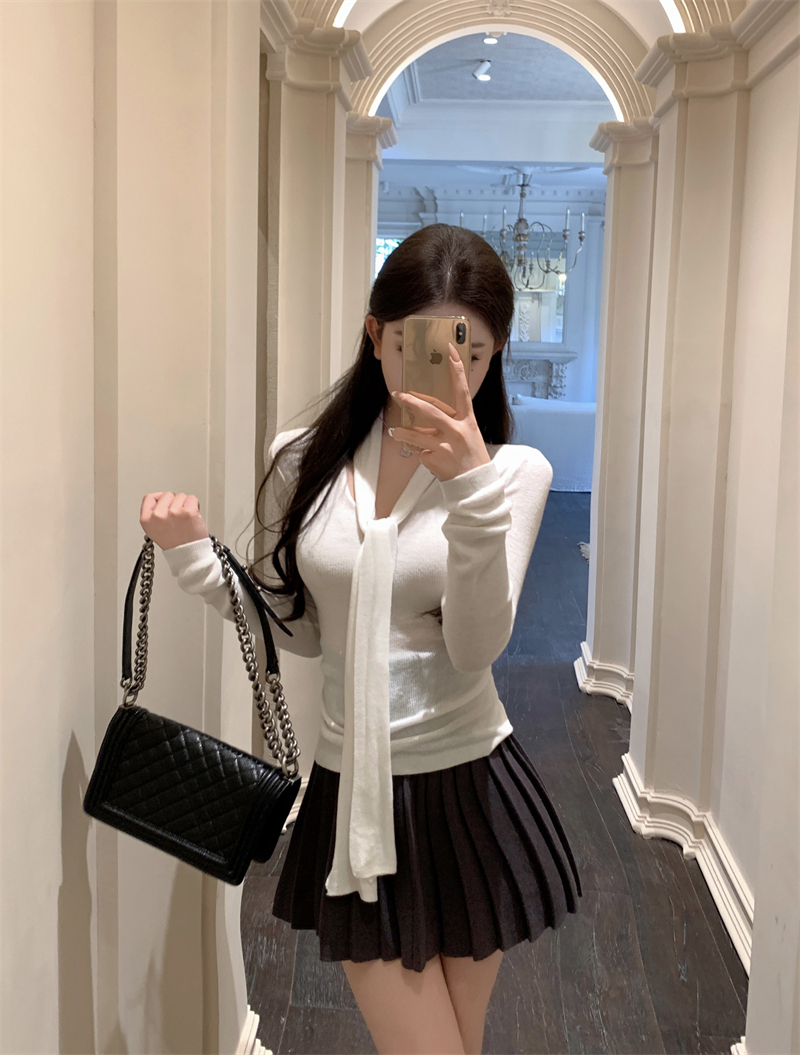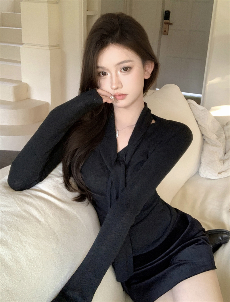 MY13818# 女裝貨源韩系氛围感V领针织衫女秋冬内搭修身显瘦温柔高级感上衣女裝貨源服裝批發服裝批發