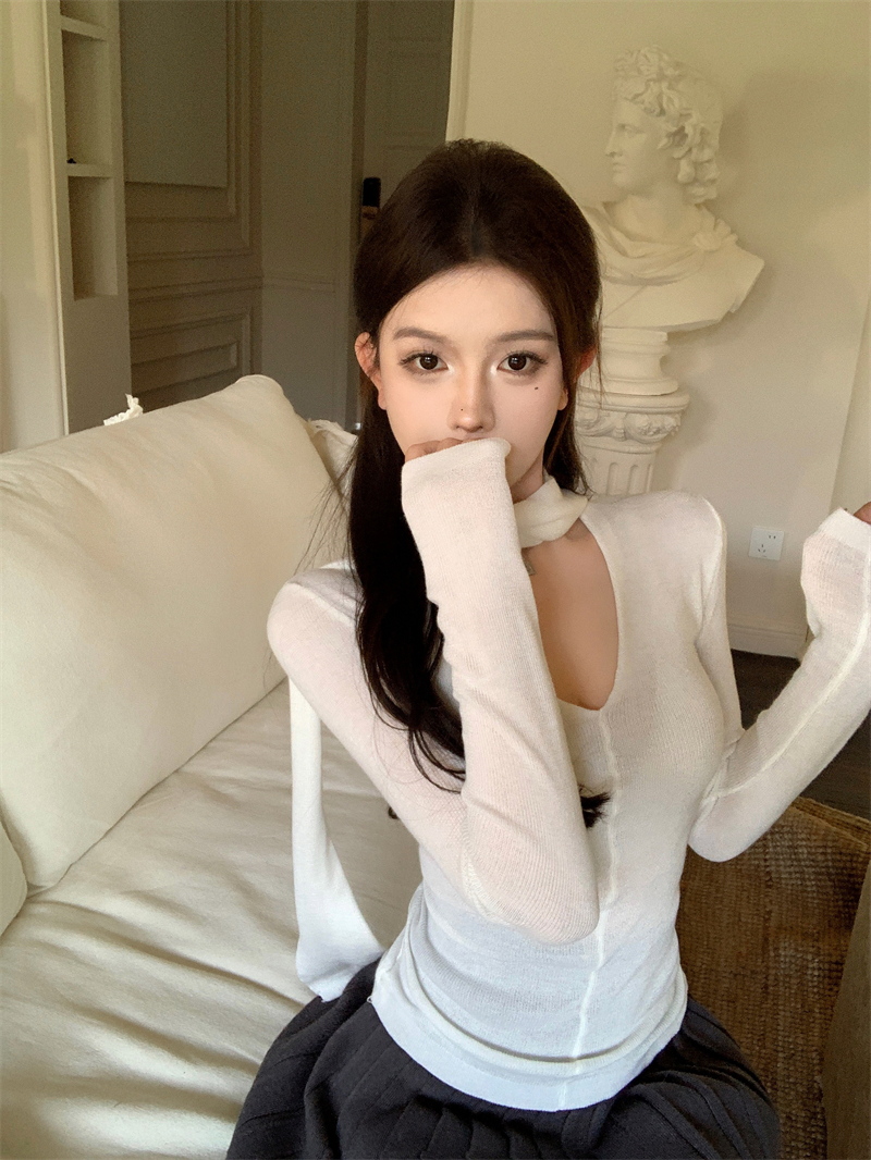 MY13844# 女裝貨源大码胖MM秋季新款甜辣妹设计感假两件镂空长袖T恤...
