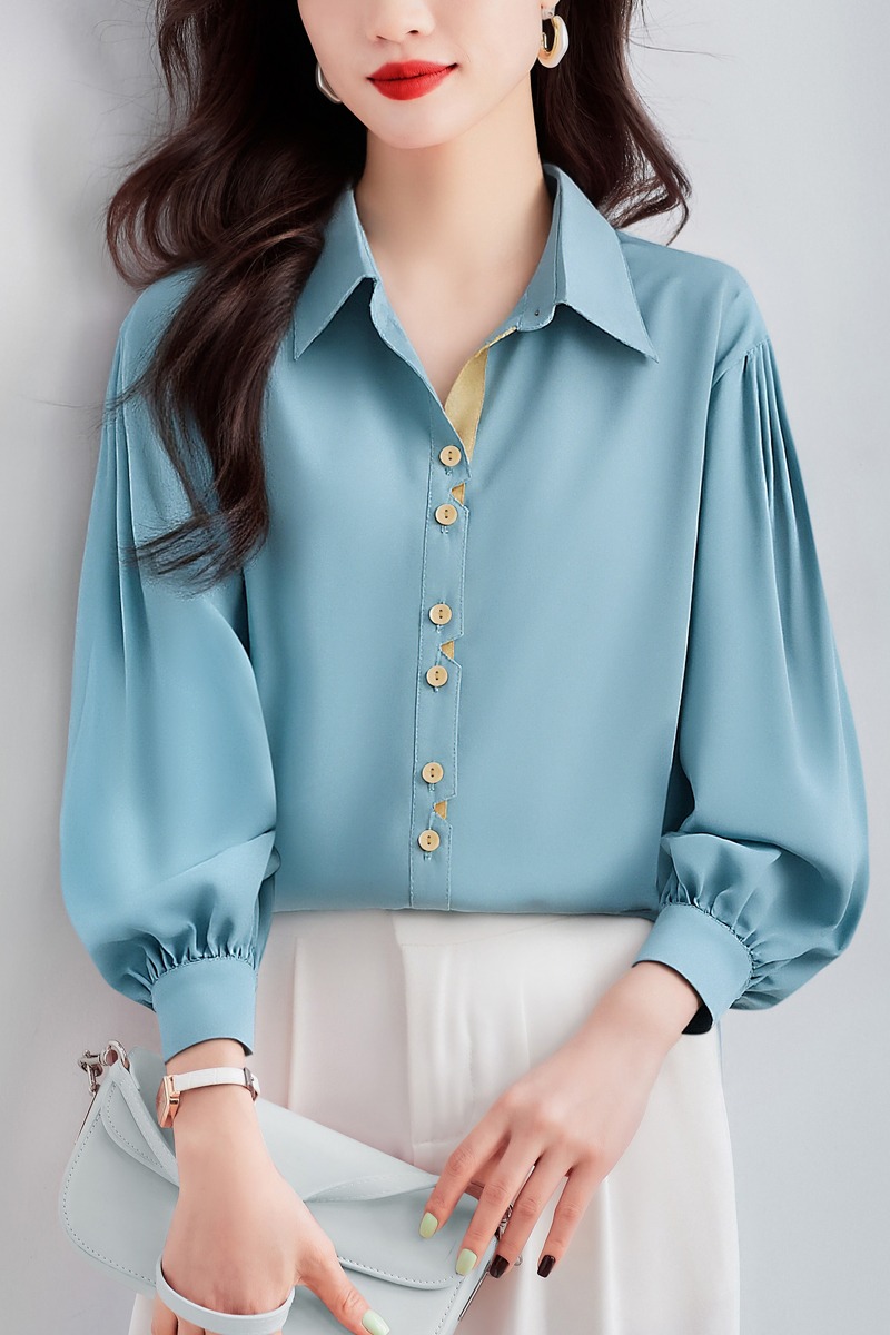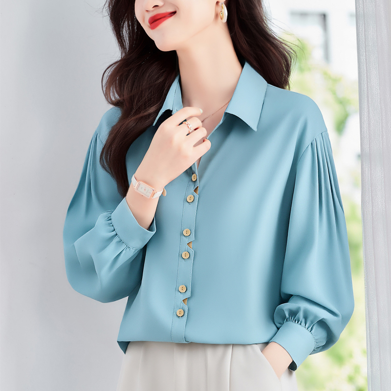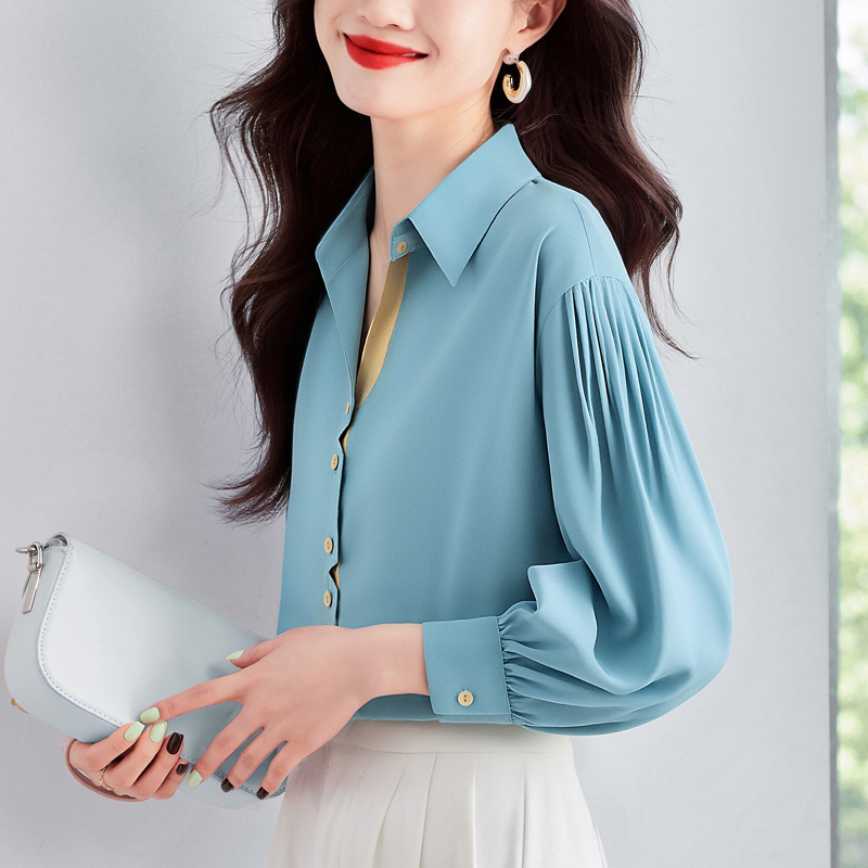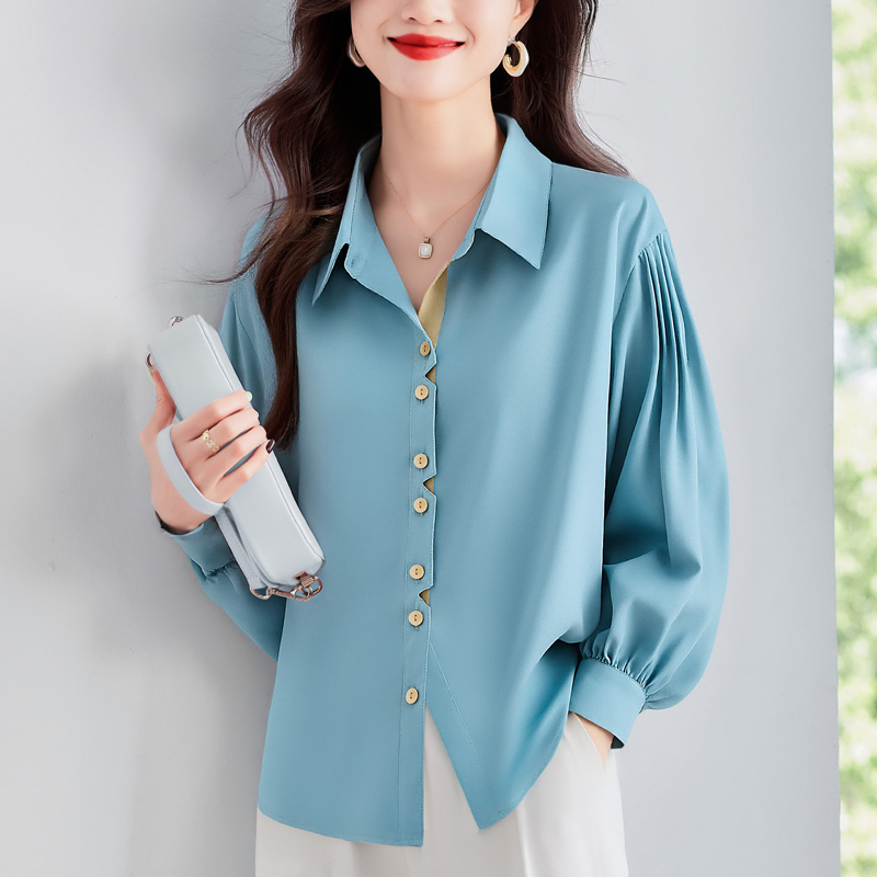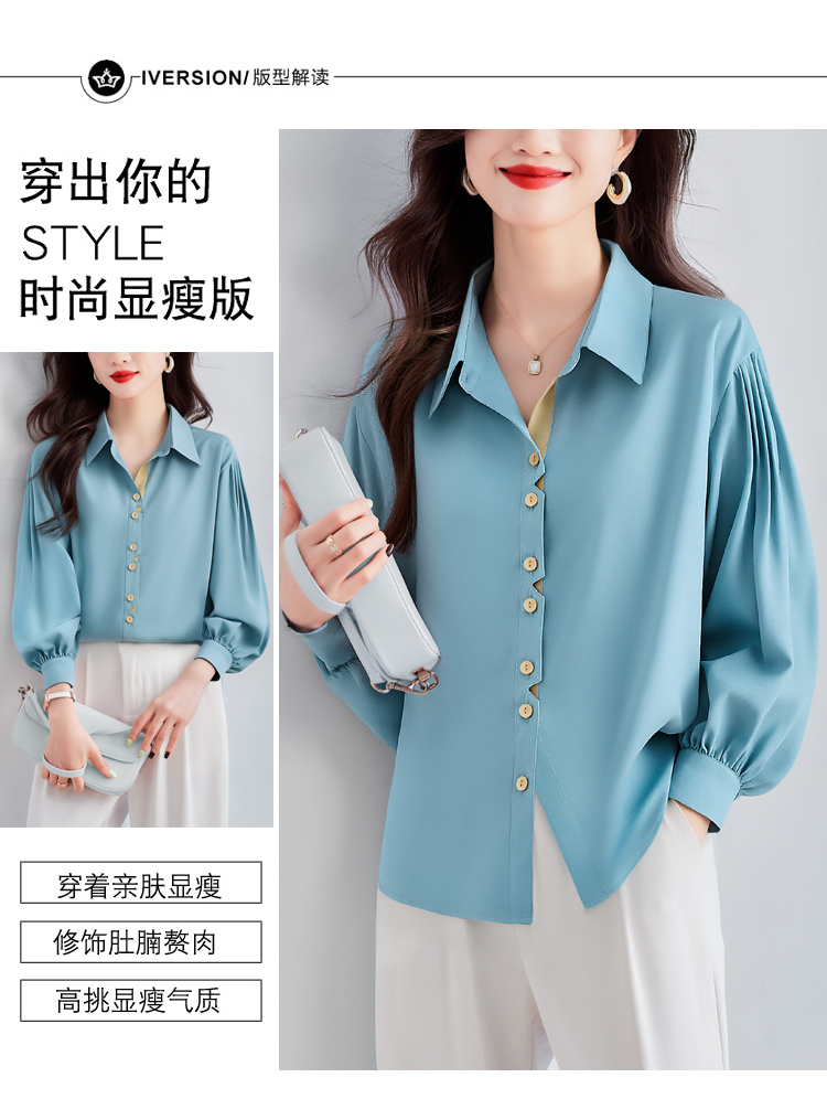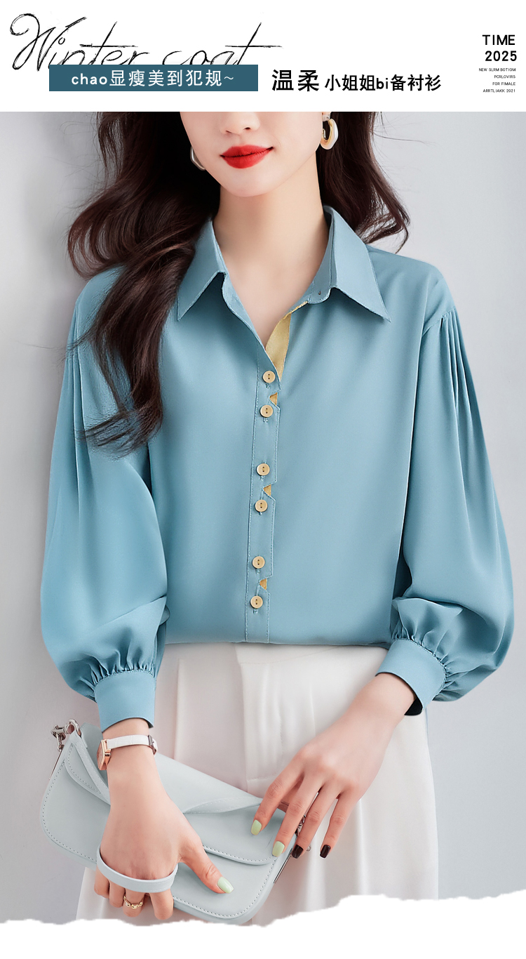 MY13861# 女裝貨源洋气休闲秋季新款女装翻领雪纺衫上衣开衫衬衫打底衬衣女裝貨源服裝批發服裝批發