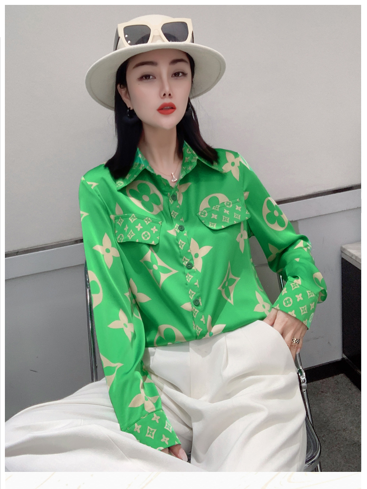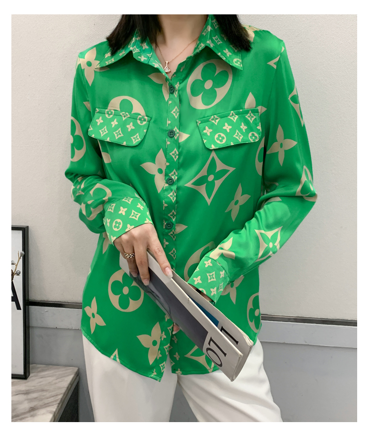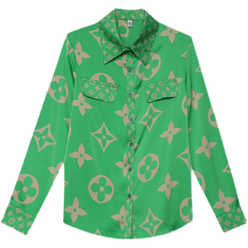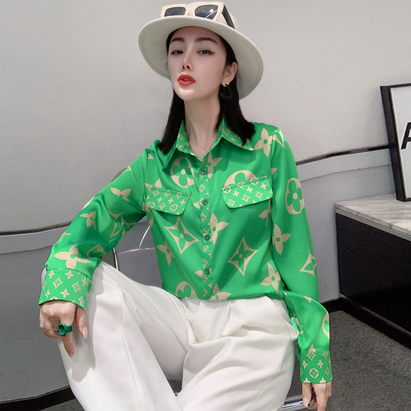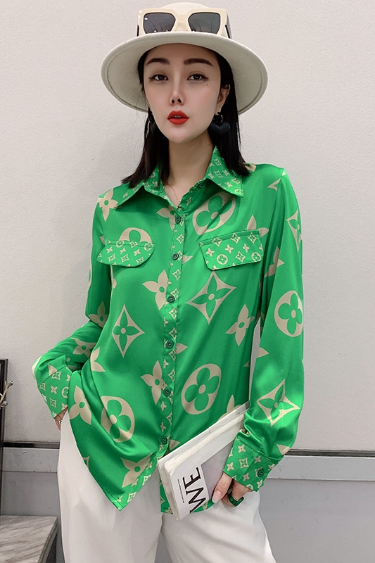 MY13882# 女裝貨源新款印花衬衫高品质时尚打底单穿单排扣长袖衬衣女女裝貨源服裝批發服裝批發