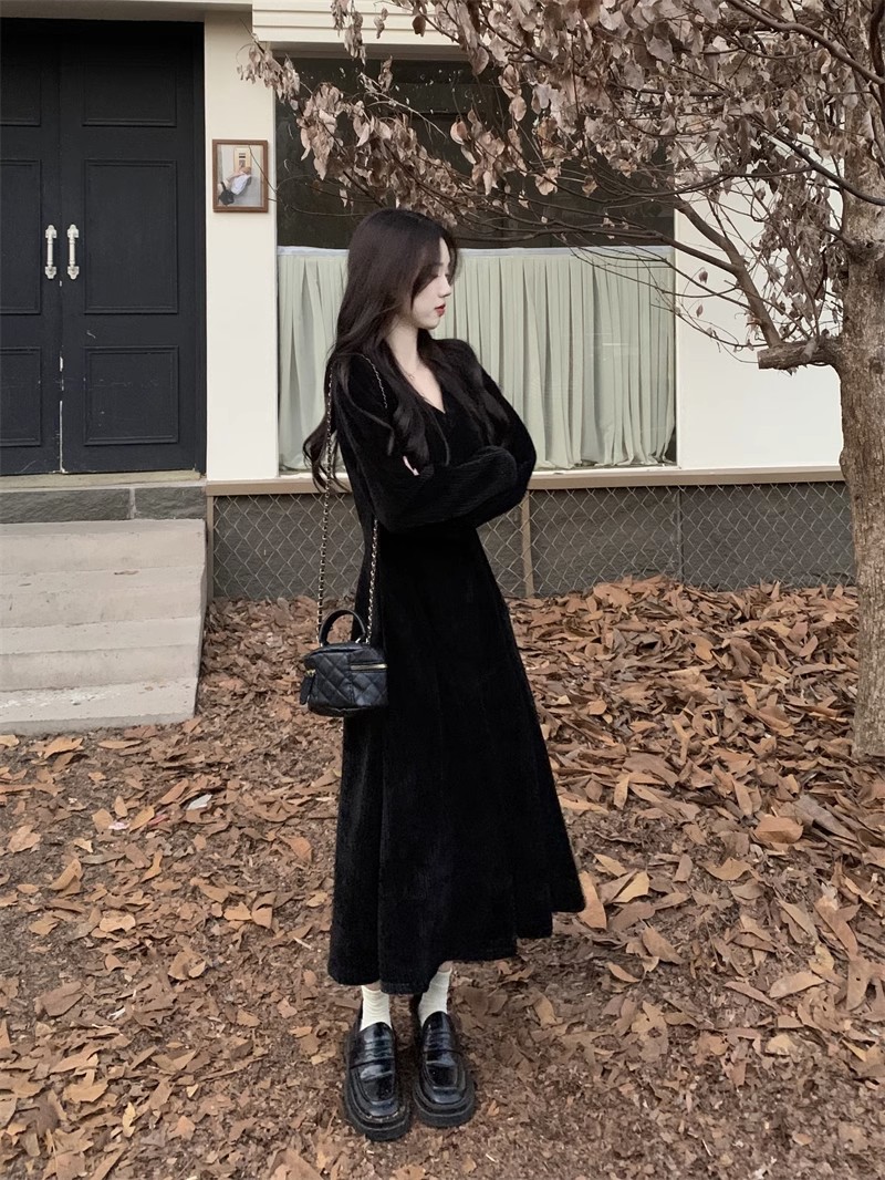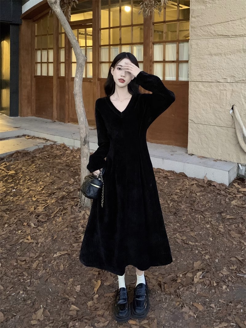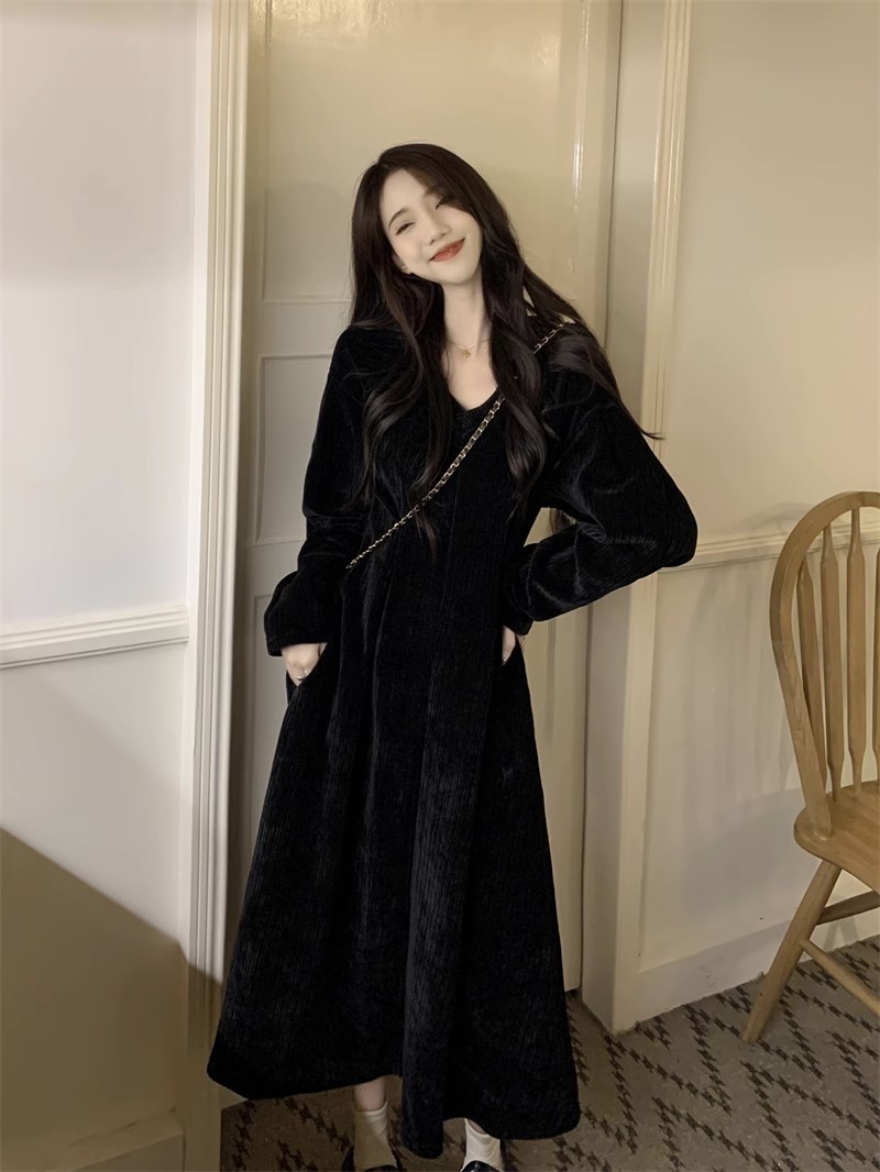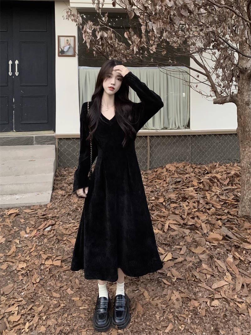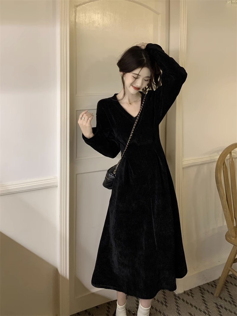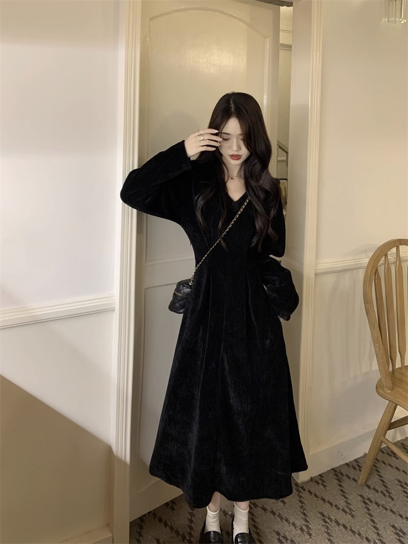 MY14005# 法式连衣裙女新款收腰显瘦复古气质女神范长裙女裝貨源服裝批發