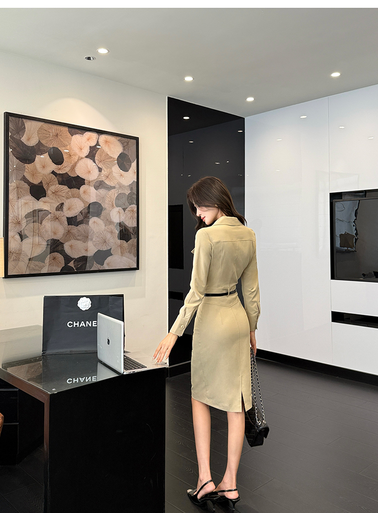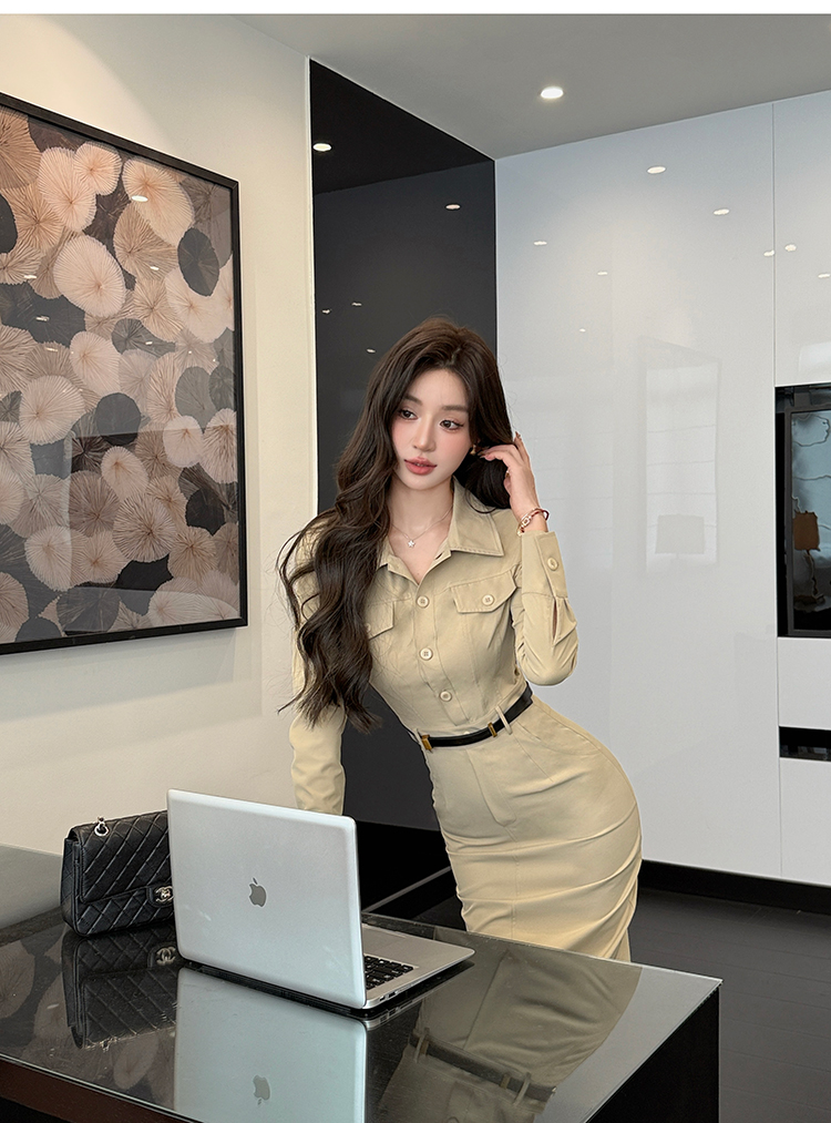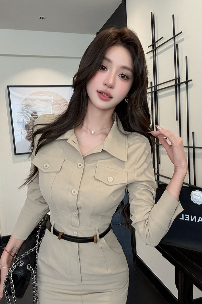 MY14047# 高干文姐姐 法式气质衬衣领优雅收腰显瘦连衣裙女裝貨源服裝批發