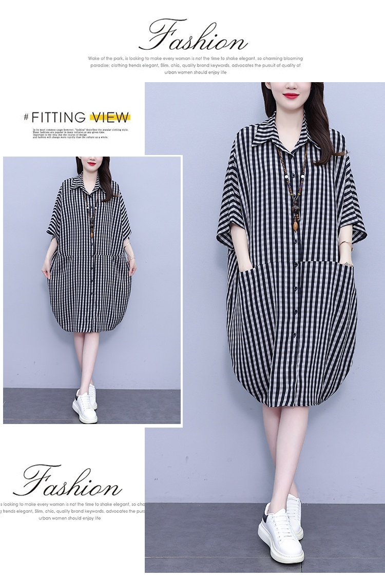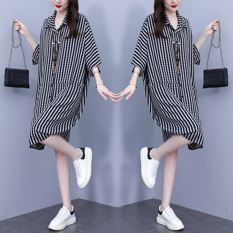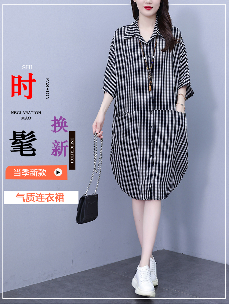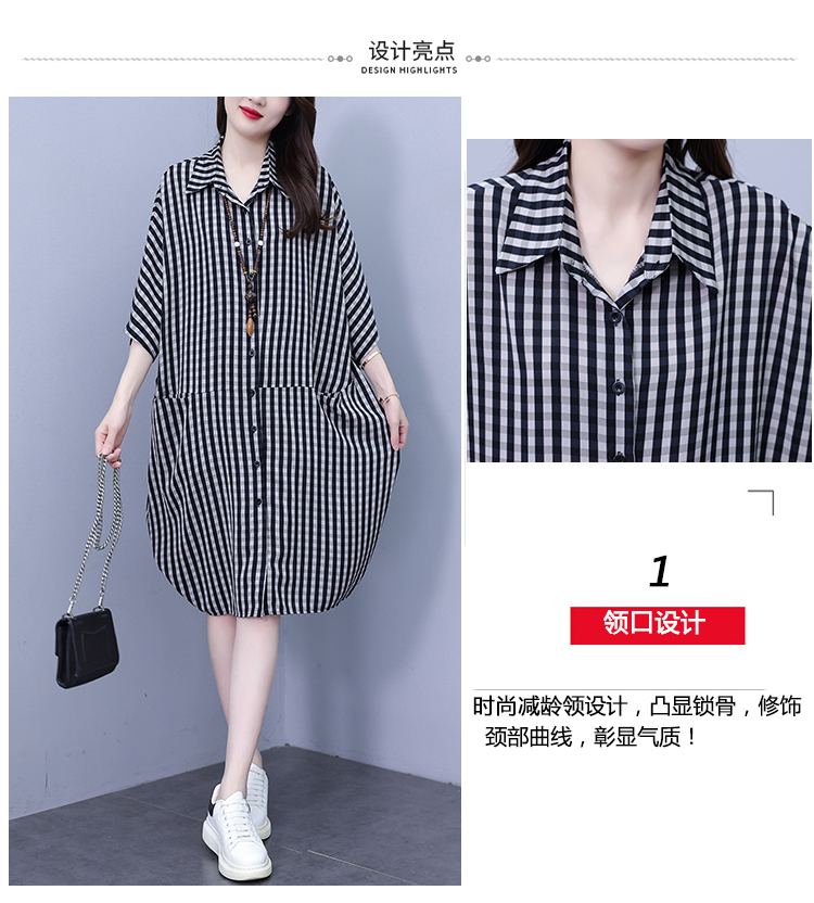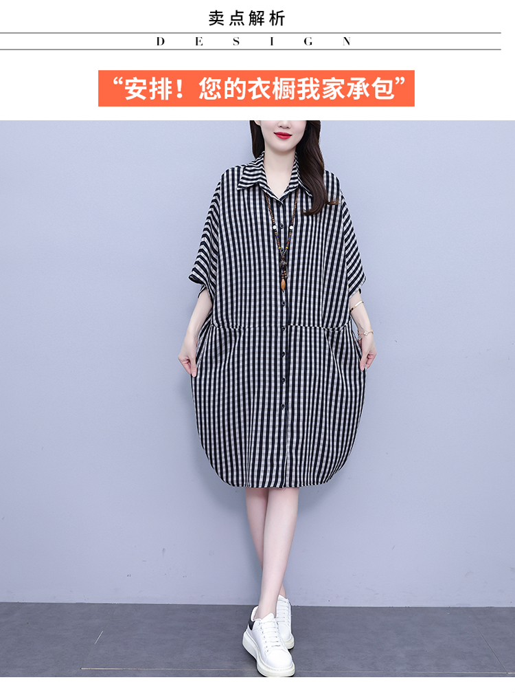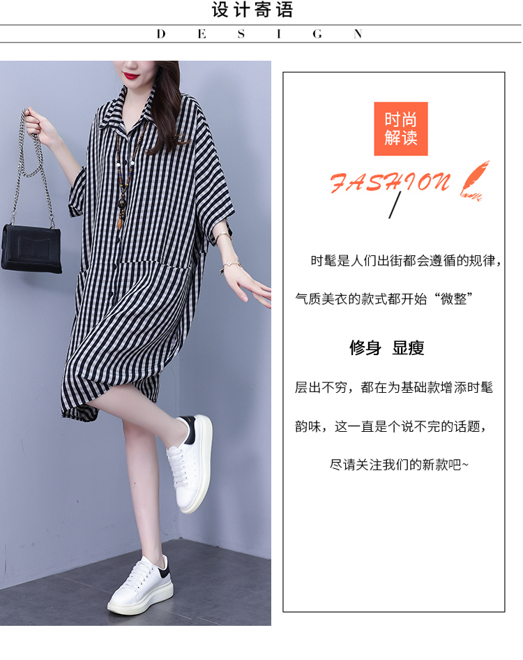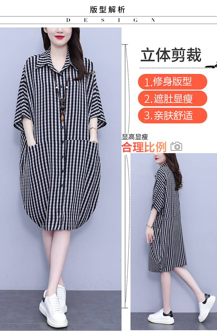MY14114#夏季新款韩版胖MM大码POLO领遮肉衬衫中长休闲宽松连衣裙